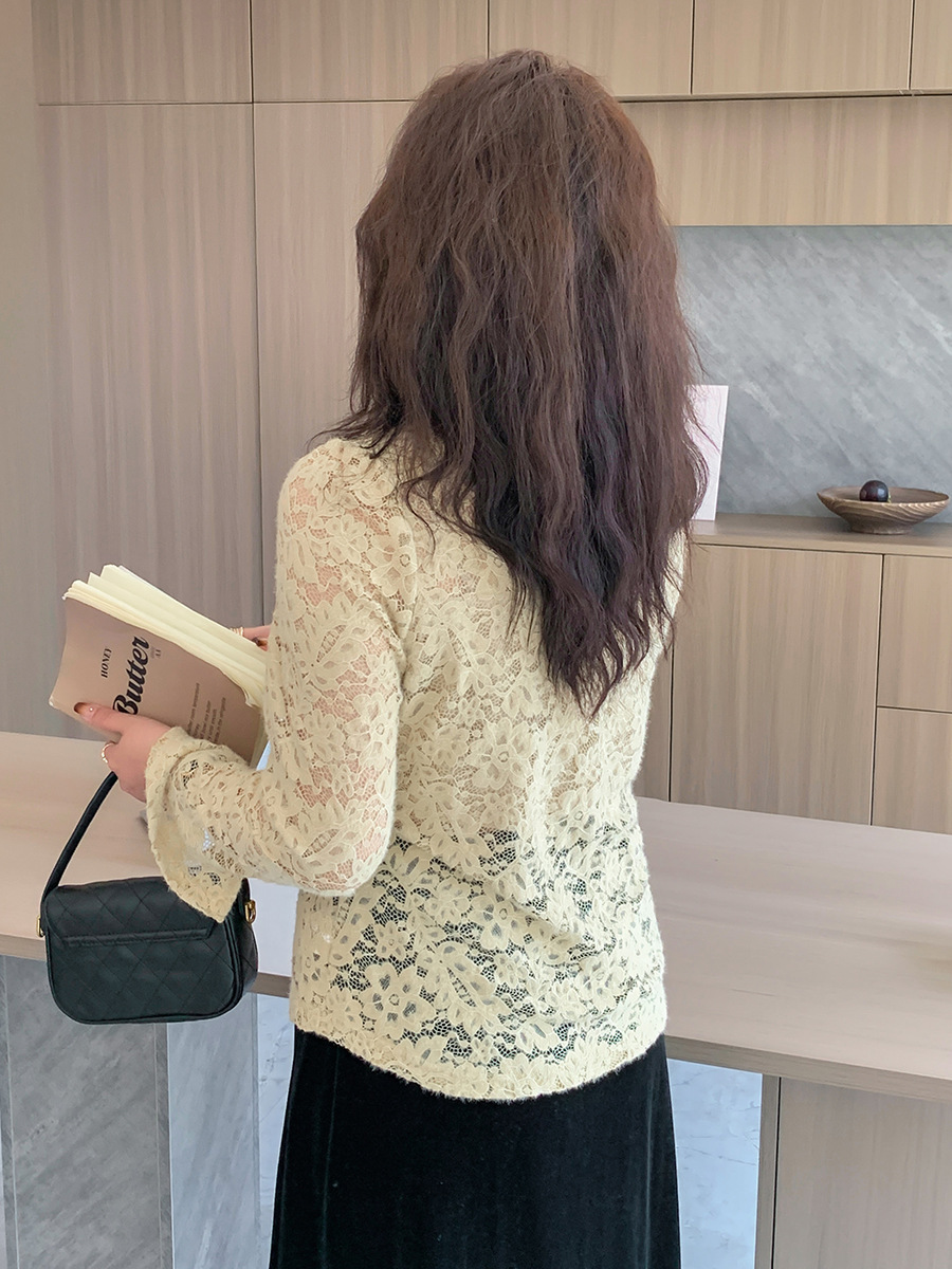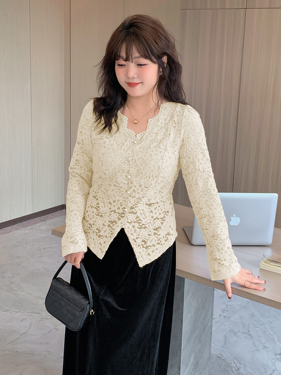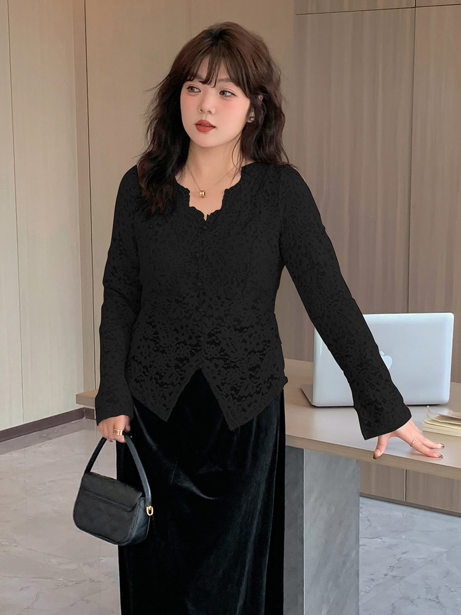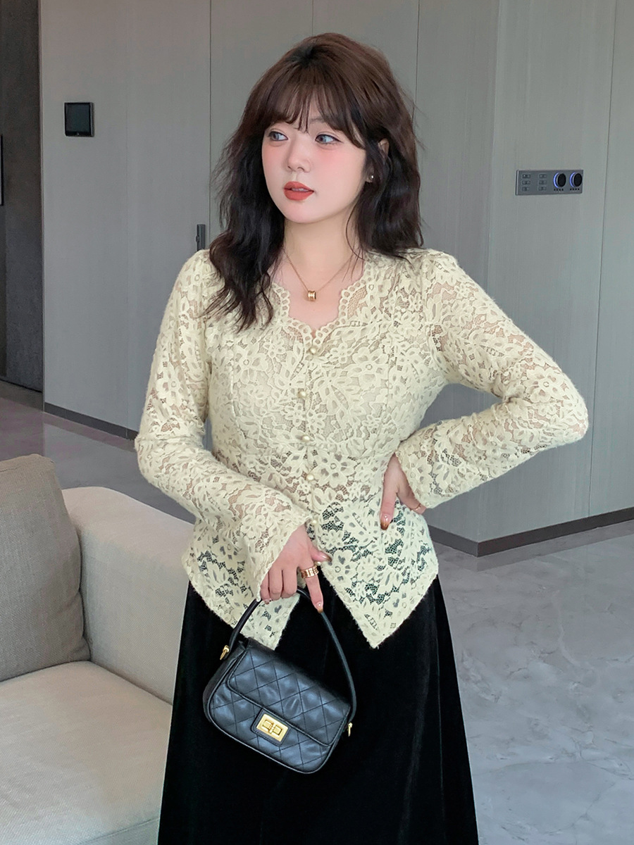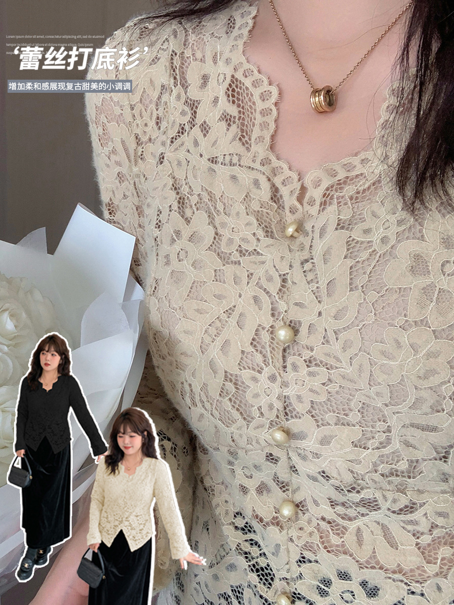 Женская одежда Inno больших размеров для полных девушек, милая кружевная блузка с V-образным вырезом, новая зимняя облегающая базовая рубашка 420948