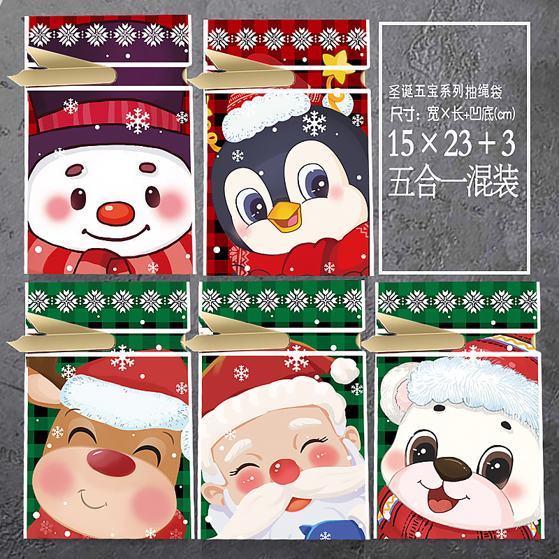 Рождественская сумка на шнурке пять в одном 15*23 [50 шт.]; Рождественская сумка-кролик пять в одном 14*23 [50 шт.]; Рождественский милый 5-в-1 15*23 [50 шт.]; Рождественская красная клетчатая ткань 3-в-1 15*23 [50 шт.]; Рождественская красная клетчатая ткань 3-в-1 14*23 [50 шт.]; Рождественский милый 4-в-1 7*10 [100 шт.]; Рождественская красная клетчатая ткань 3-в-1 7*10 [100 шт.]; Рождественский милый 5-в-1 14*23 [50 шт.]; Рождественская зеленая клетчатая ткань 3-в-1 15*23 [50 шт.]; Рождественский милый 5-в-1 12,5*27 [50 штук - включая проволоку]; Рождественская красная клетчатая ткань 3-в-1 12,5*27 [50 штук - включая проволоку]; Рождественская зеленая клетчатая ткань 3-в-1 12,5*27 [50 штук - включая проволоку]; Зеленый рождественский плед 3-в-1 14*23 (50 шт.)