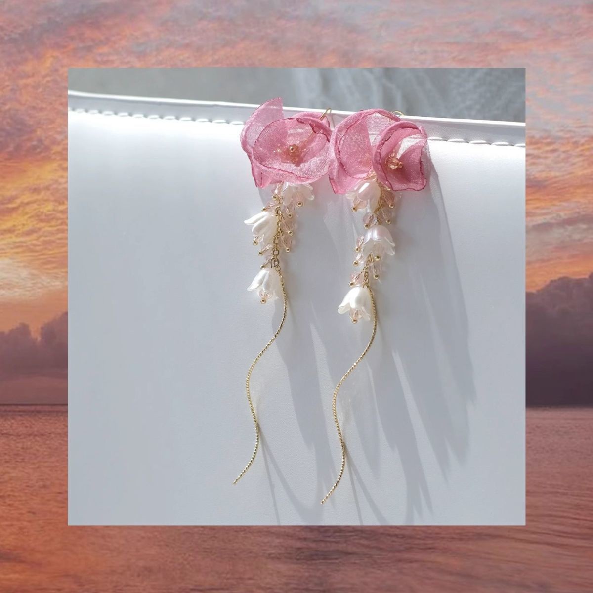 Крючки для ушей с розовым шелковым цветком; Зажим для ушей с розовым шелковым цветком