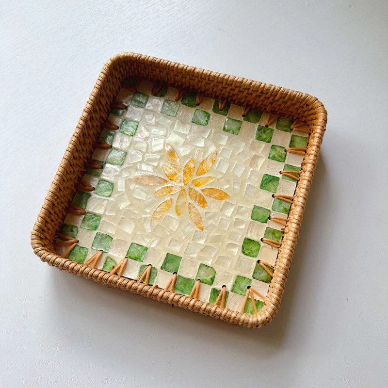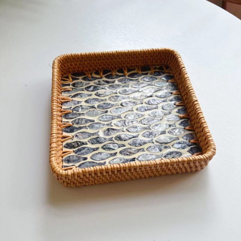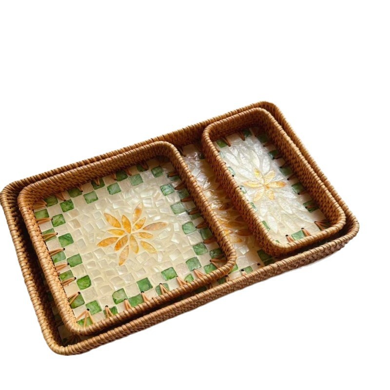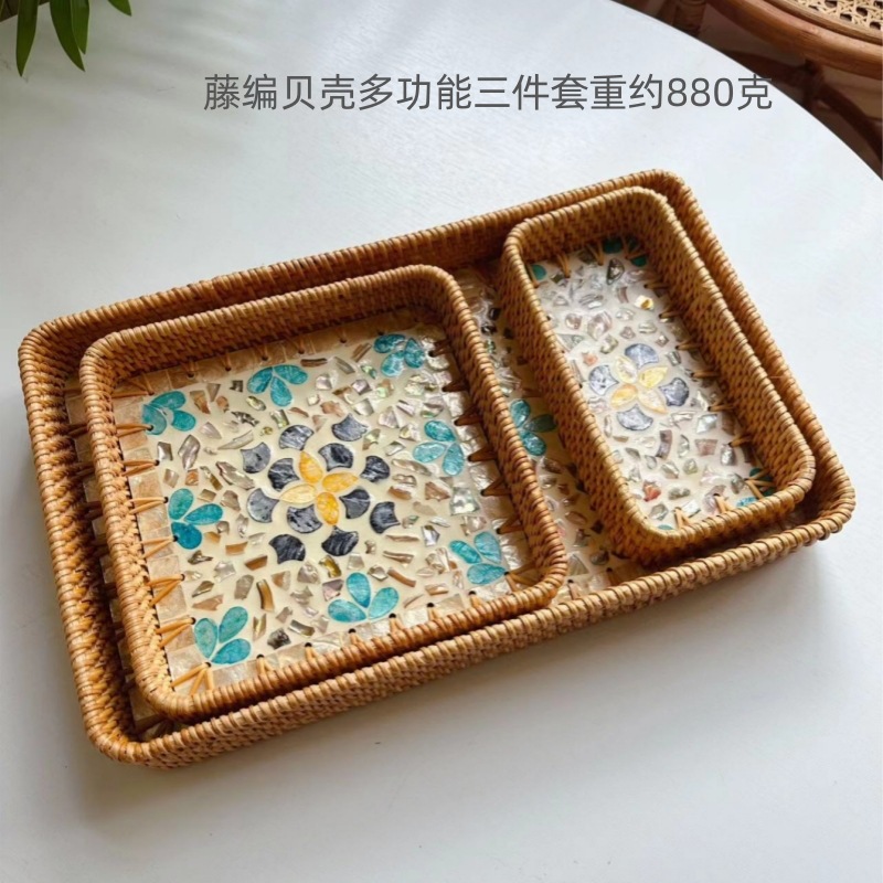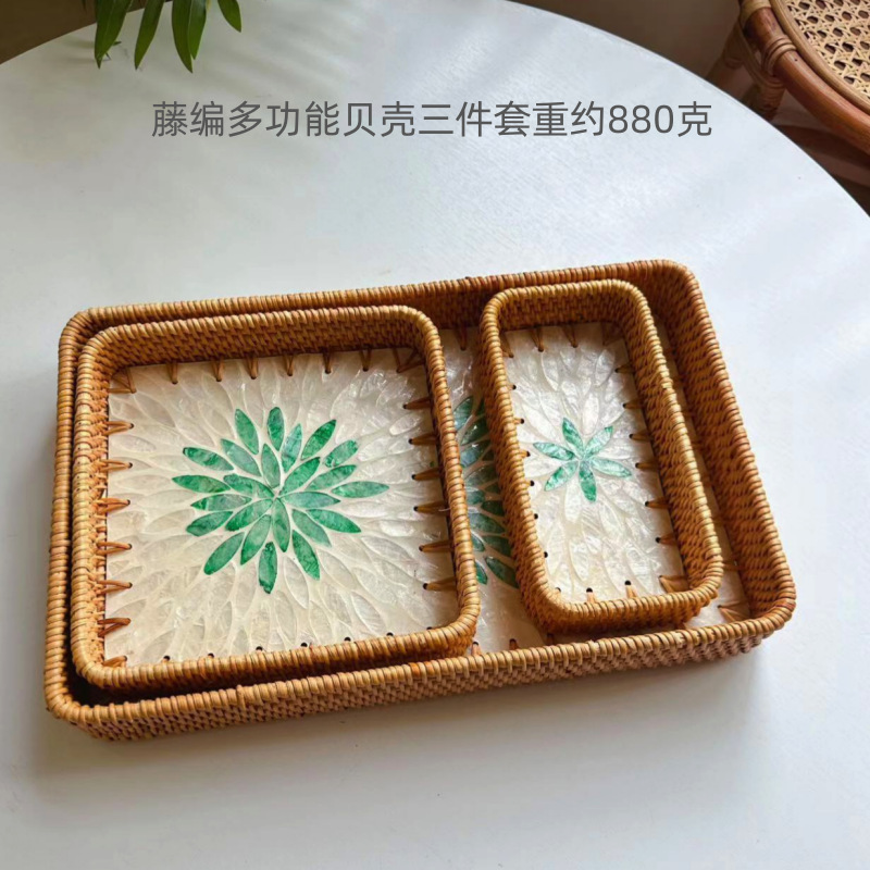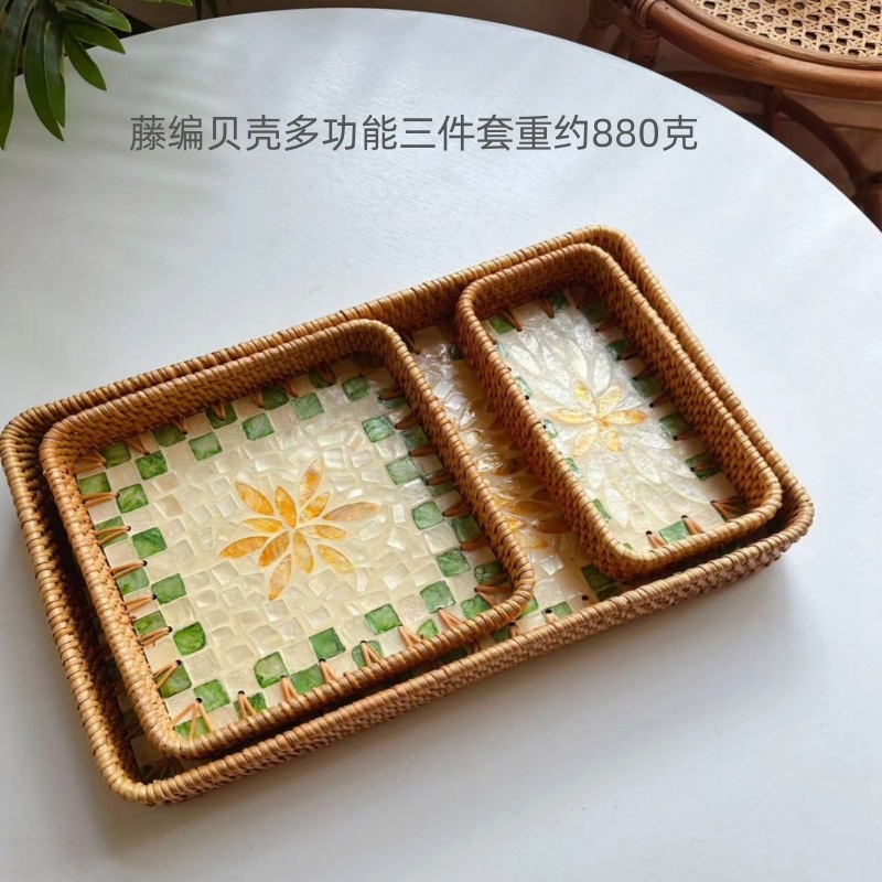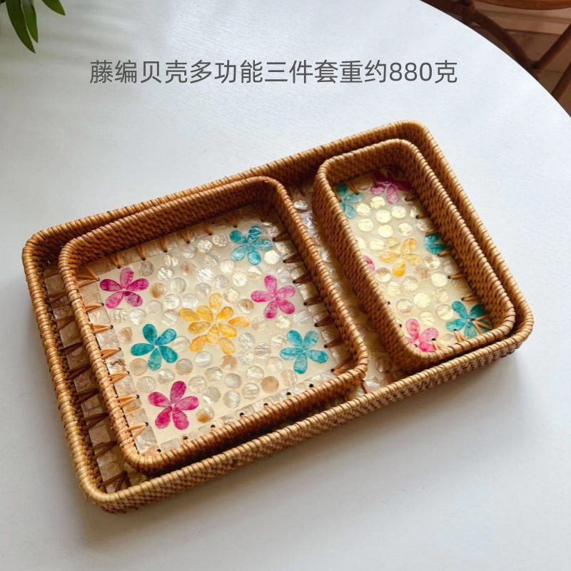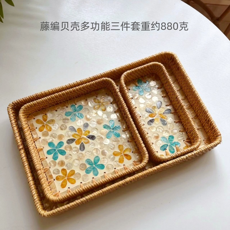 Корзина из ротанга Бытовая корзина с тусклой сумой Candy Shell Цвет Ресторан Высококачественный поднос Тарелка для фруктов из ротанга Тарелка для хранения Корзина для фруктов
