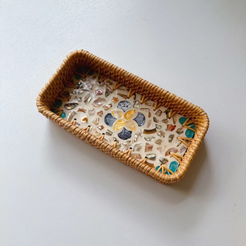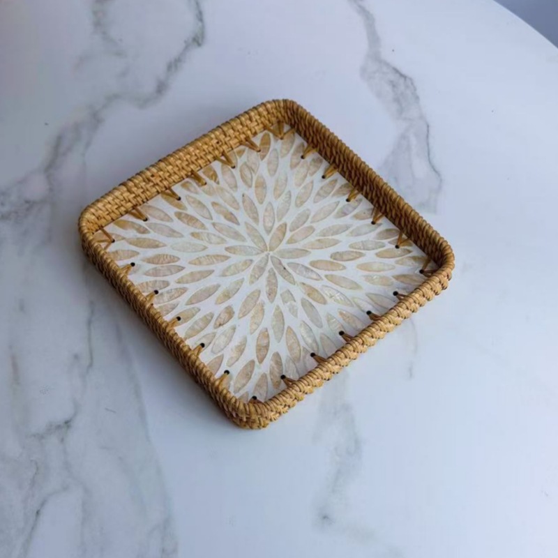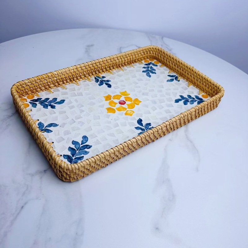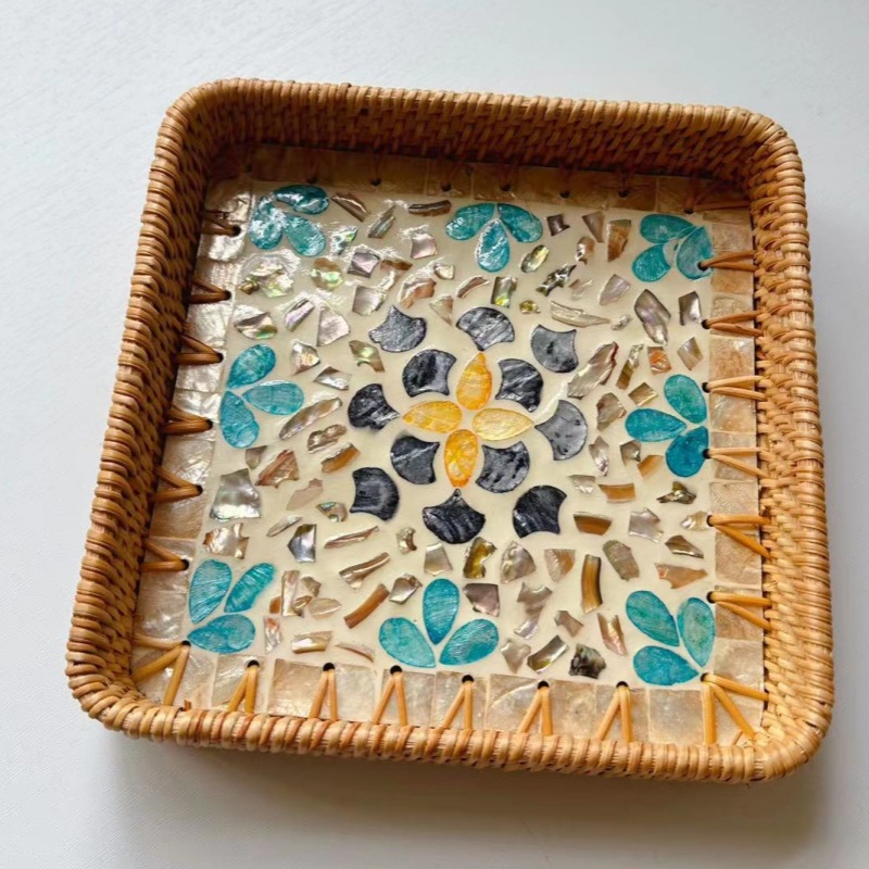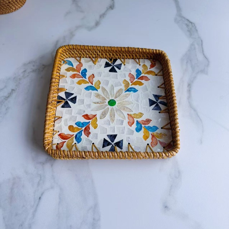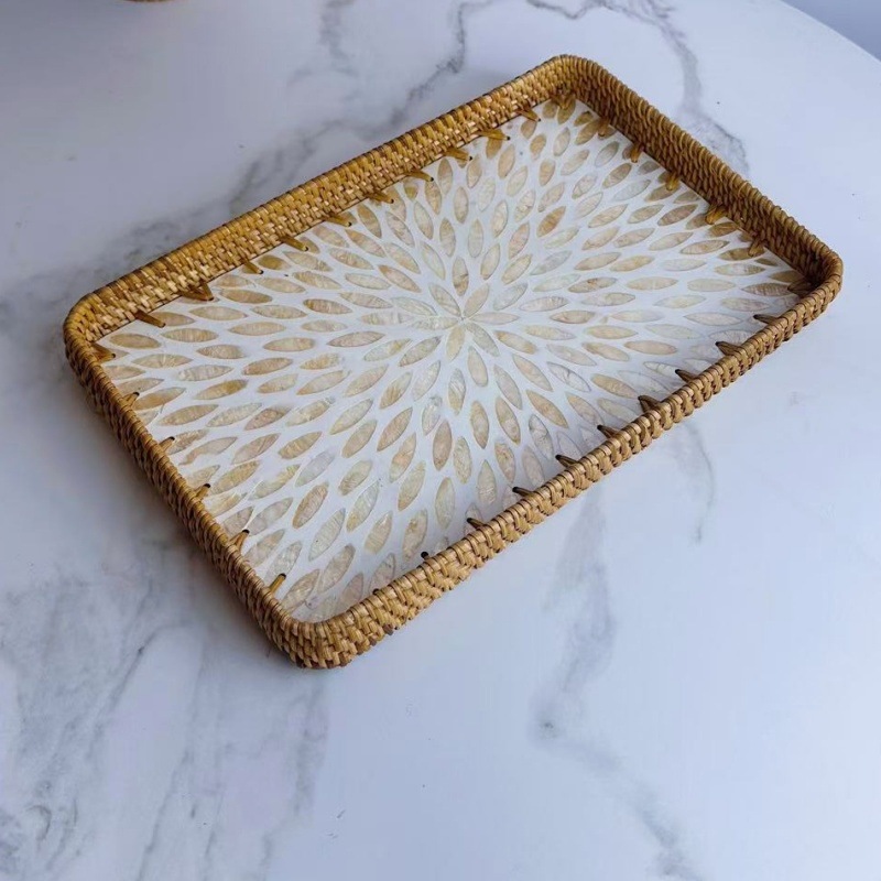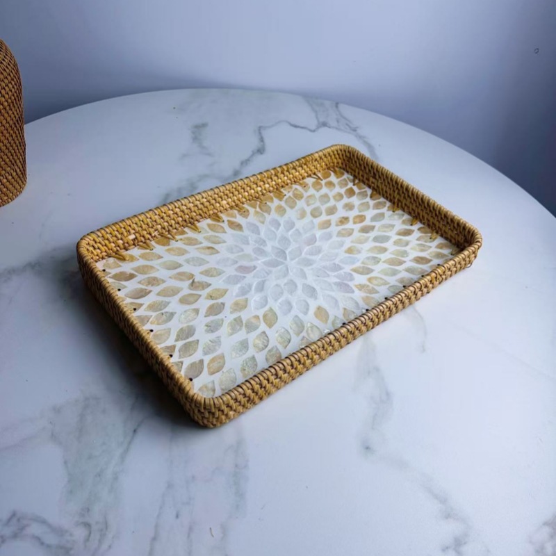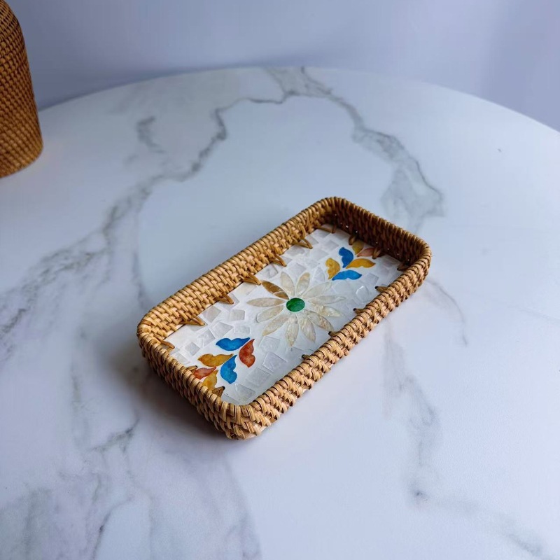 Корзина из ротанга Бытовая корзина с тусклой сумой Candy Shell Цвет Ресторан Высококачественный поднос Тарелка для фруктов из ротанга Тарелка для хранения Корзина для фруктов