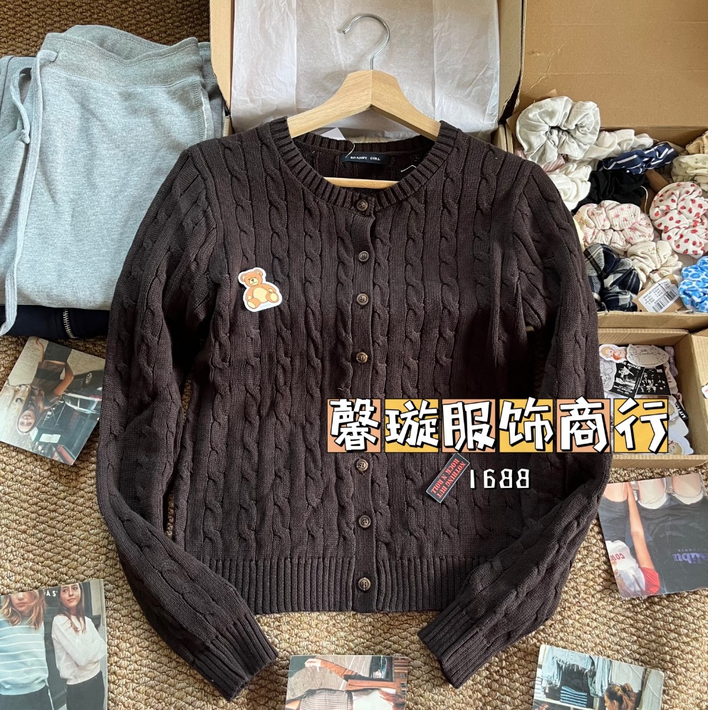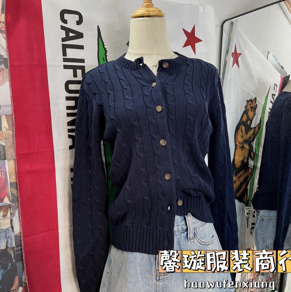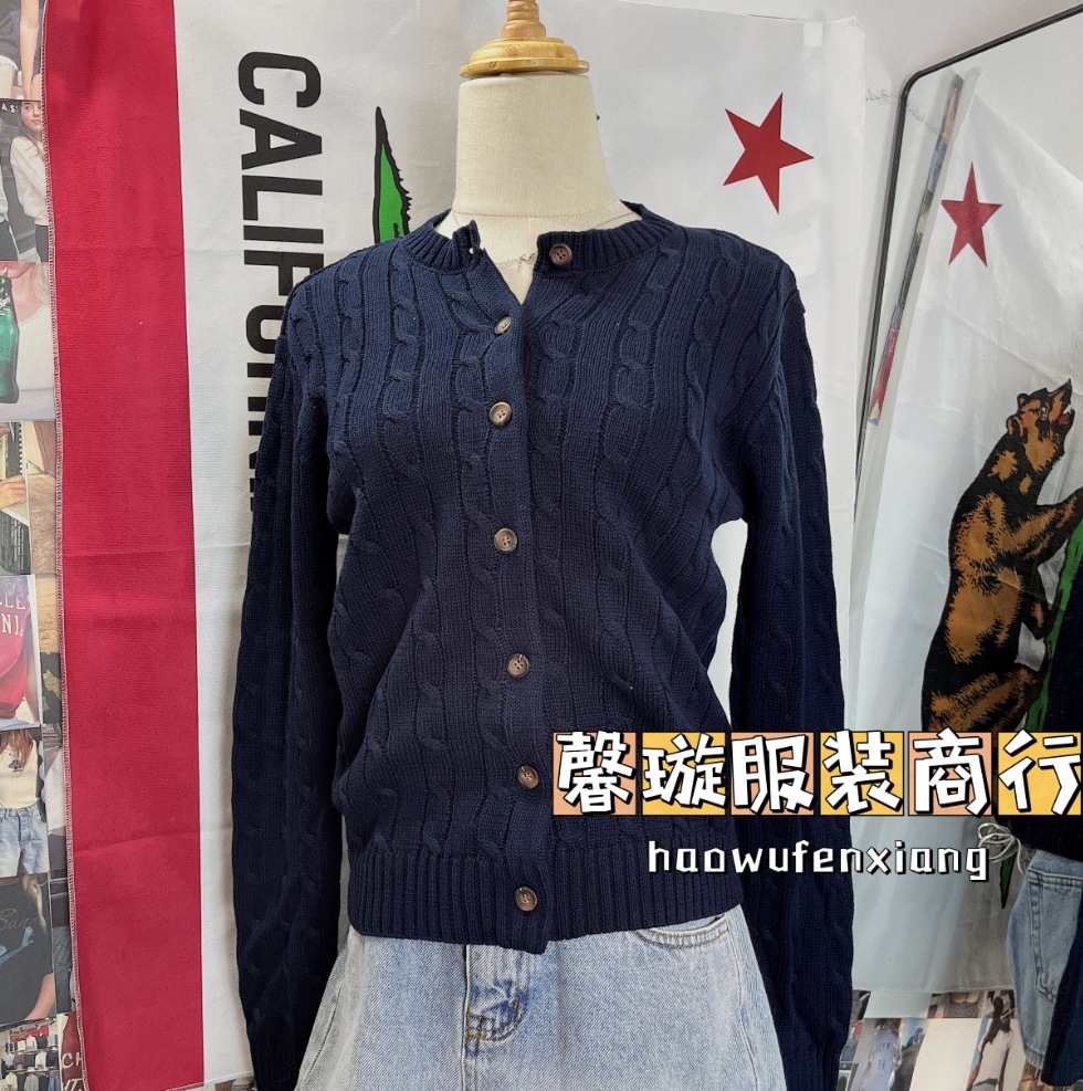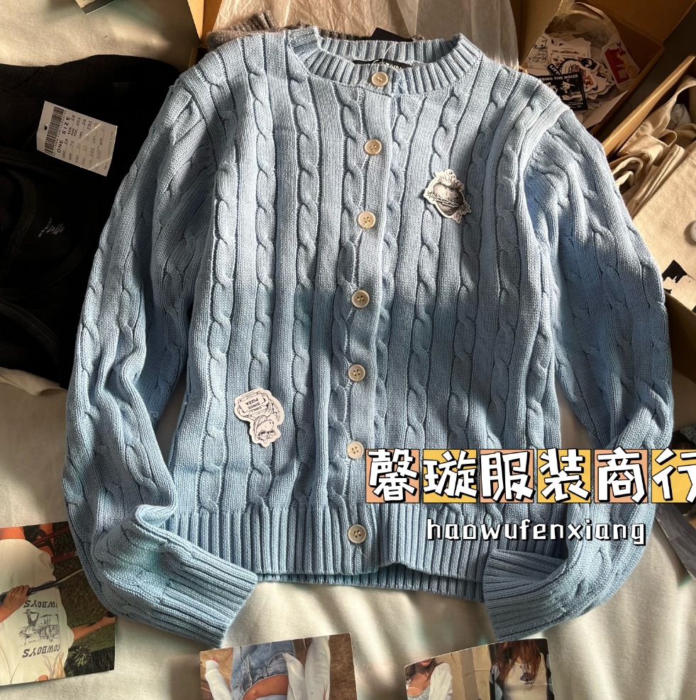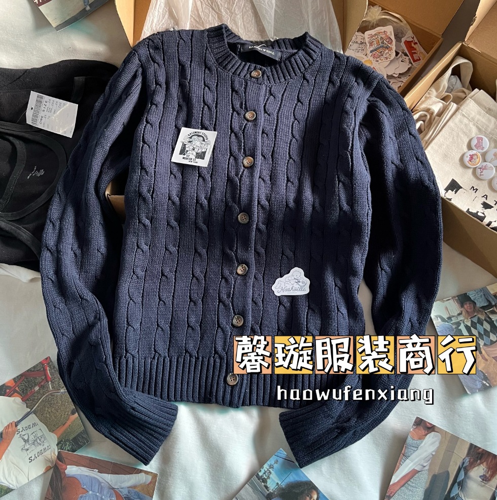 BM стиль американский стиль ретро синий твист вязаный кардиган свитер однобортный короткий топ пальто для женщин
