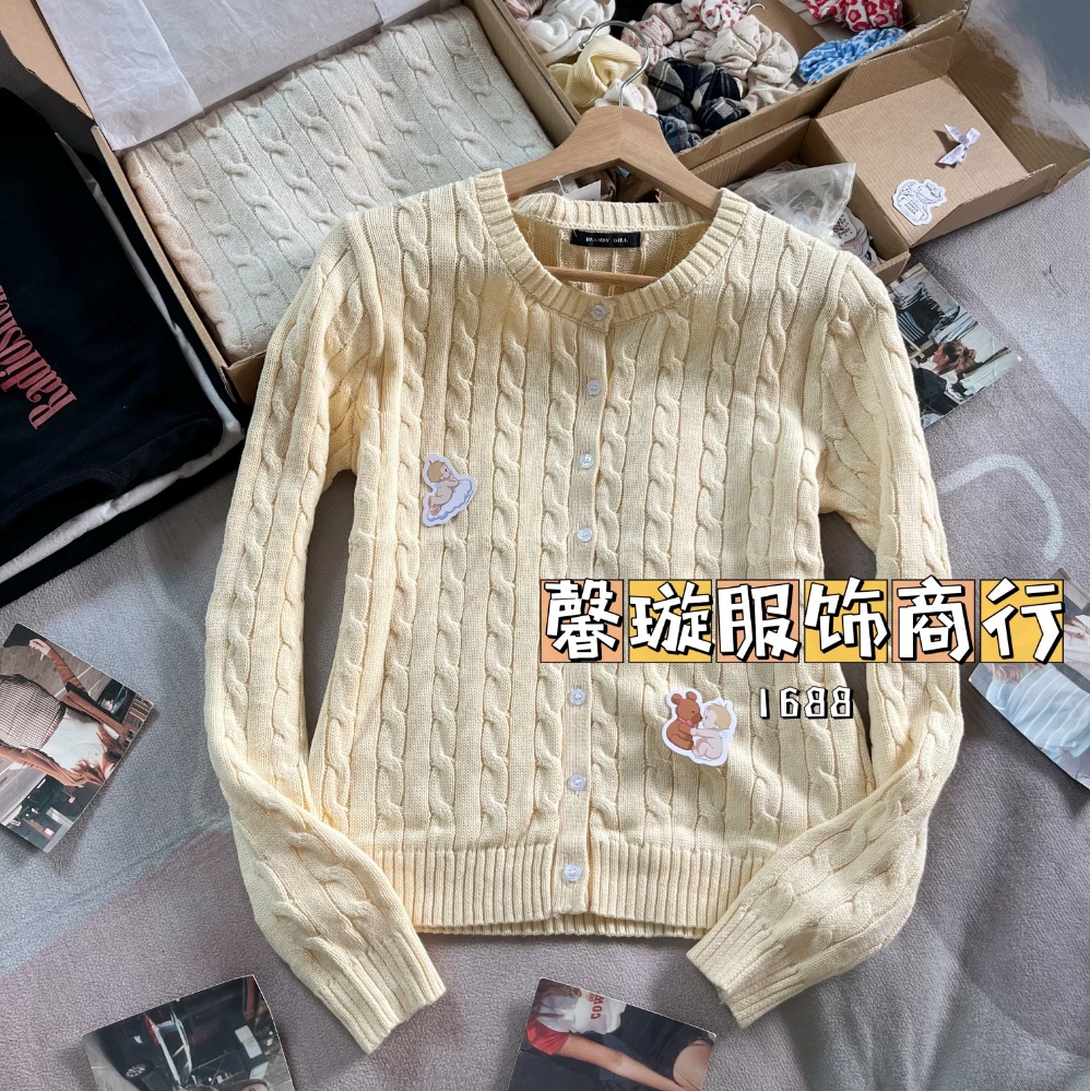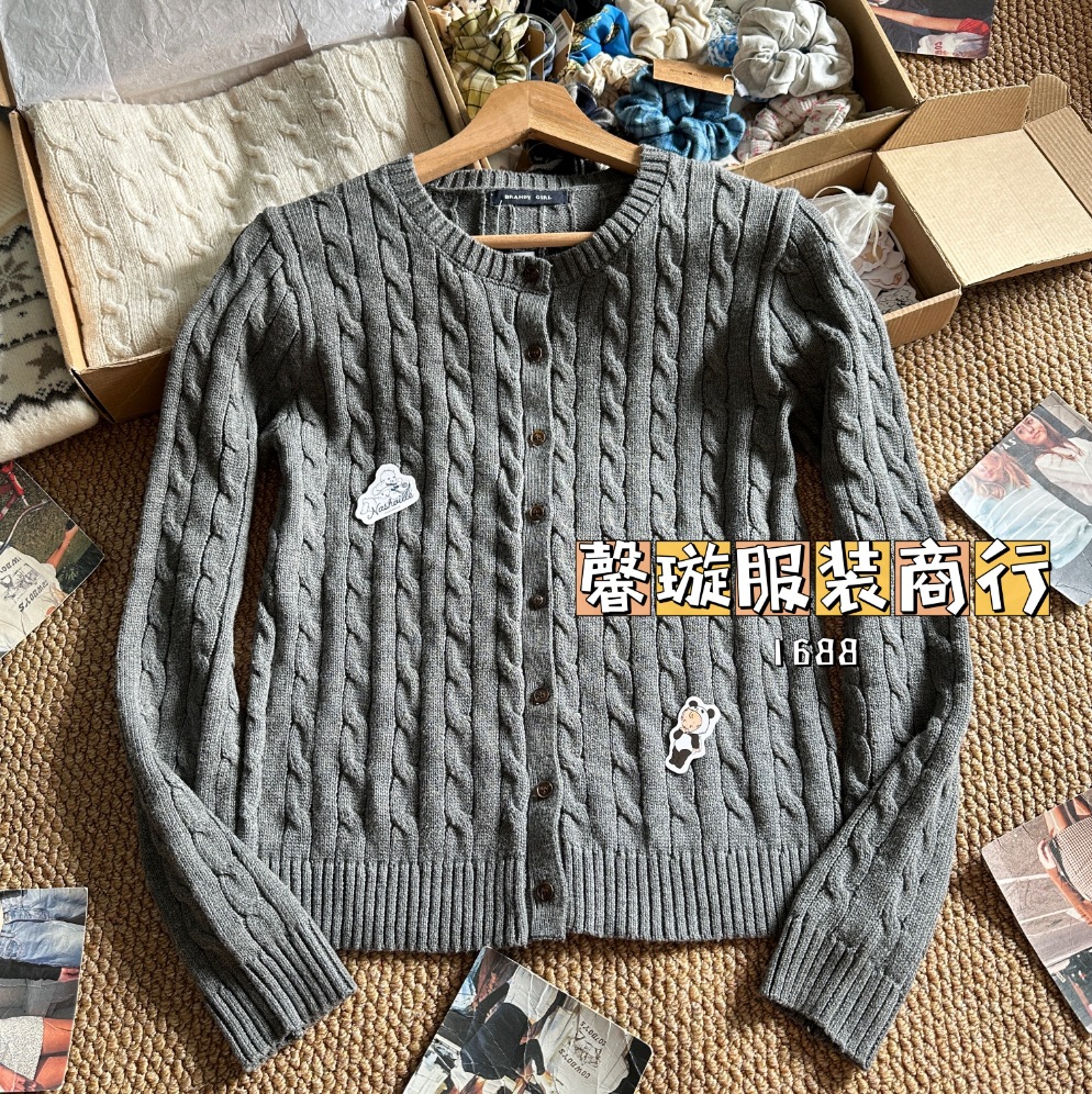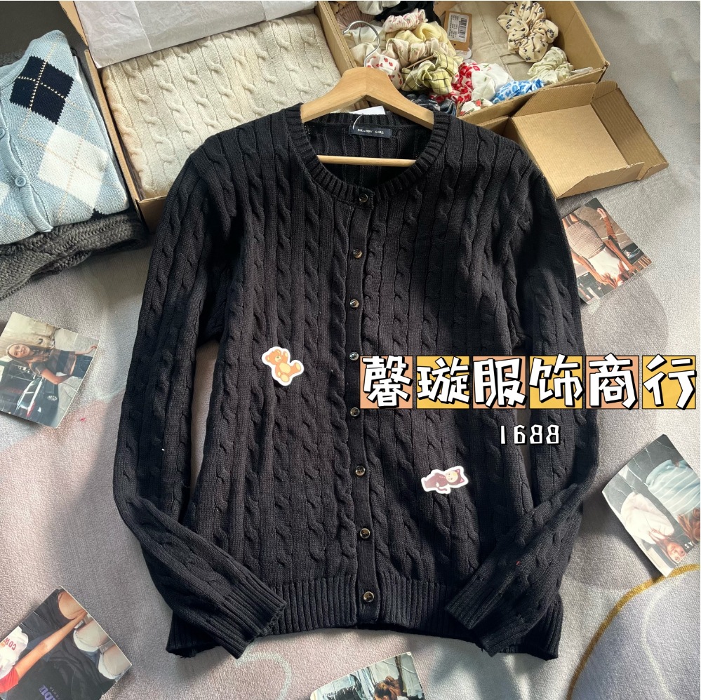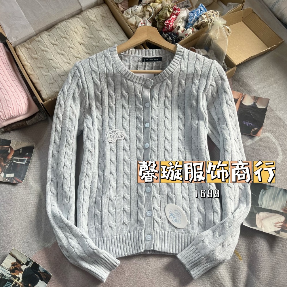 BM стиль американский стиль ретро синий твист вязаный кардиган свитер однобортный короткий топ пальто для женщин