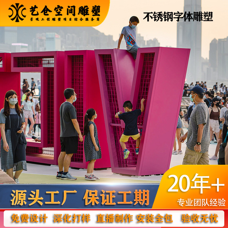 Большой Открытый из нержавеющей стали шрифт скульптура дух крепость торговый центр вывеска пейзаж стекловолокна скульптура