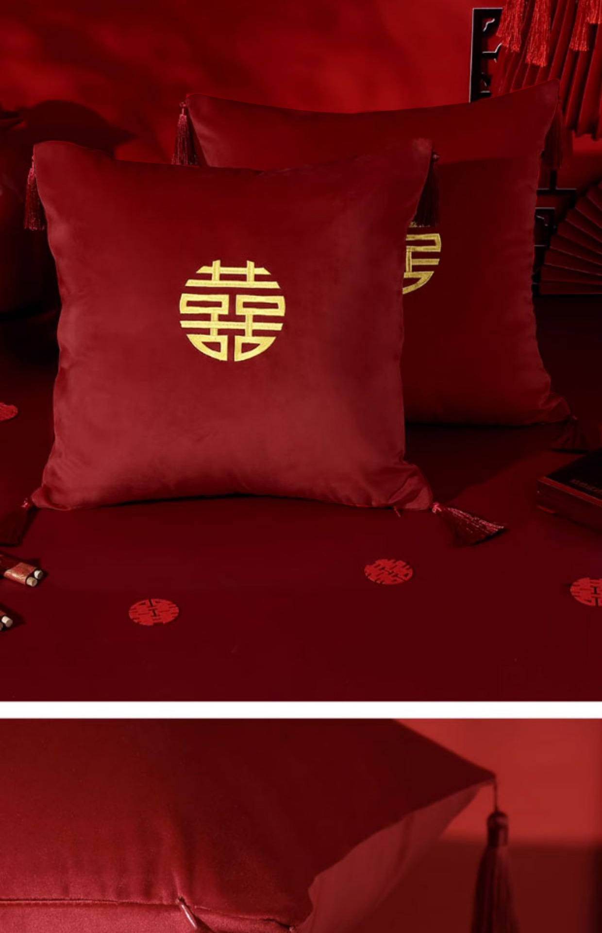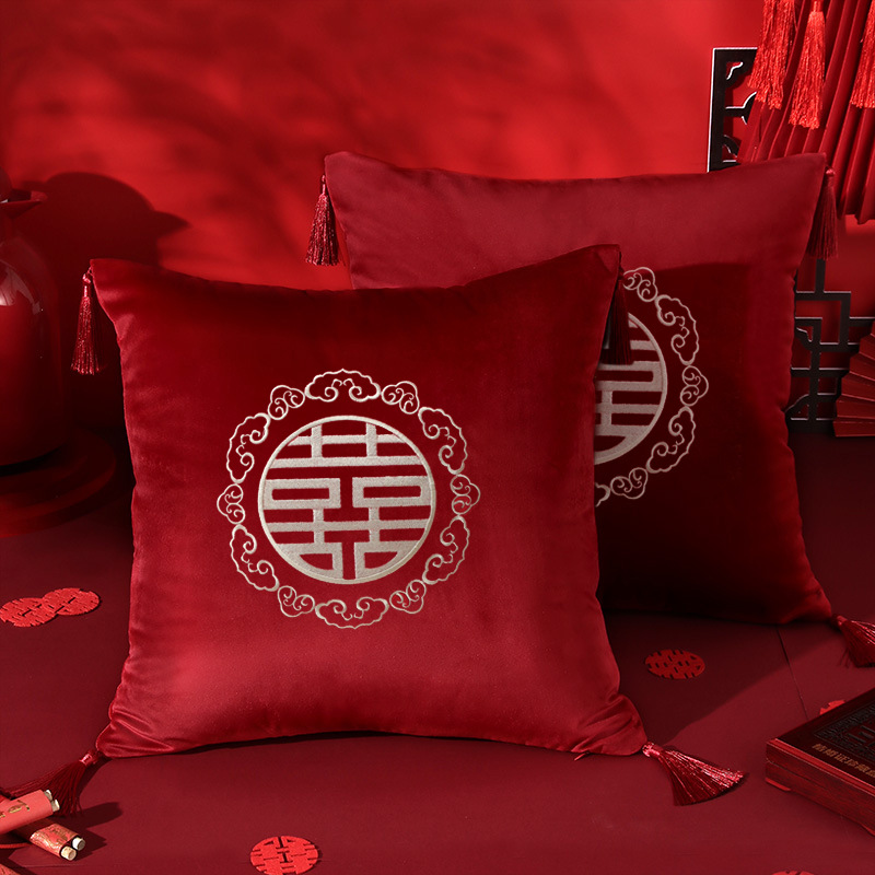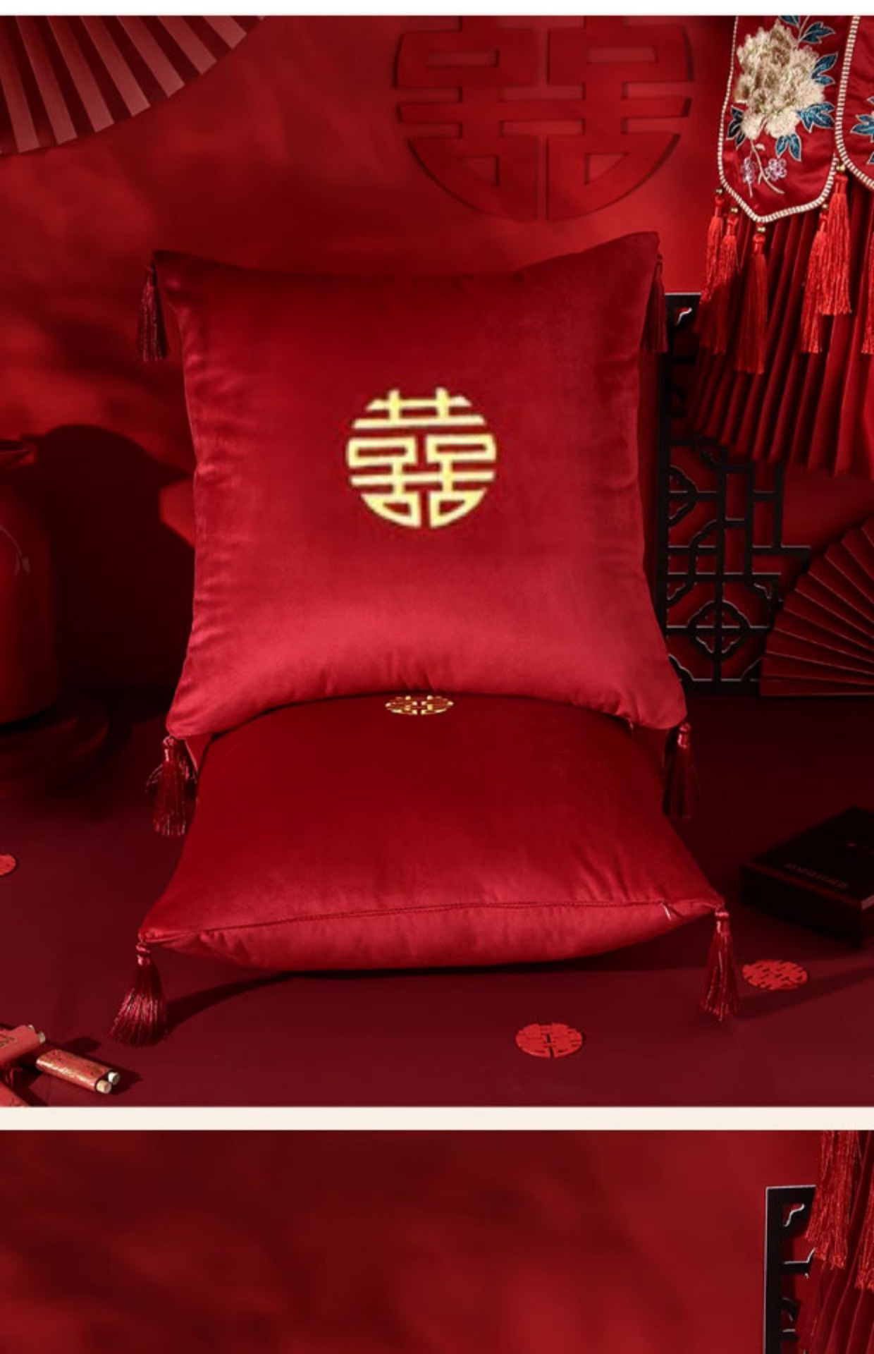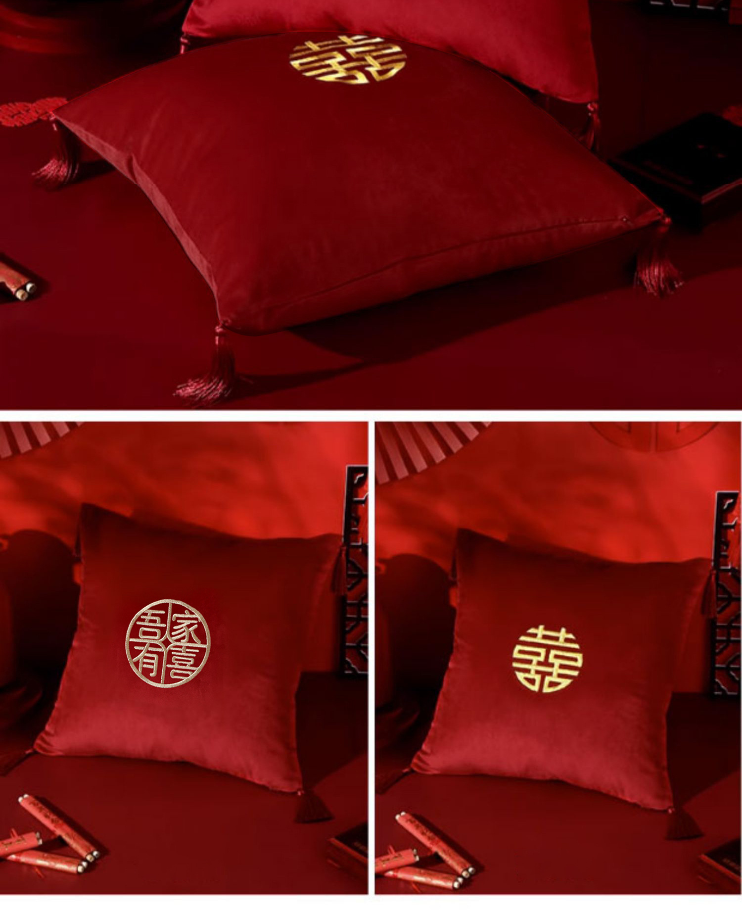 Красное Счастливое Слово Свадебная Подушка Пара Свадебная Подушка Для Свадебной Комнаты Новобрачные Украшение Кровати Диван Подушка
