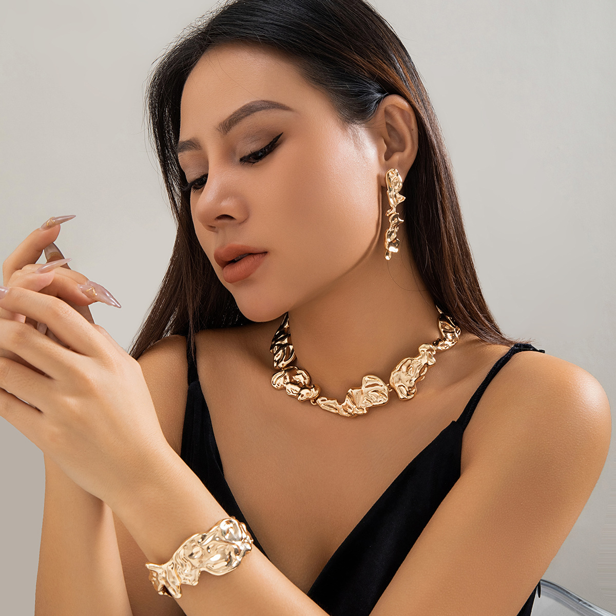 Европейские и американские трансграничные ювелирные изделия, модное жидкое складное нерегулярное колье с воротником, нишевое металлическое ожерелье из лавы, женское