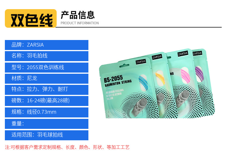 ZARSIA Rainbow Высокоэластичная леска для бадминтона Эластичная устойчивая тренировочная линия Персонализированная двухцветная ракетка для бадминтона Простой пакет