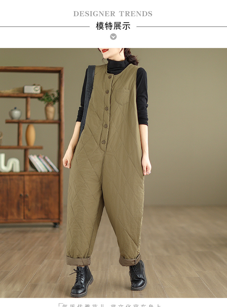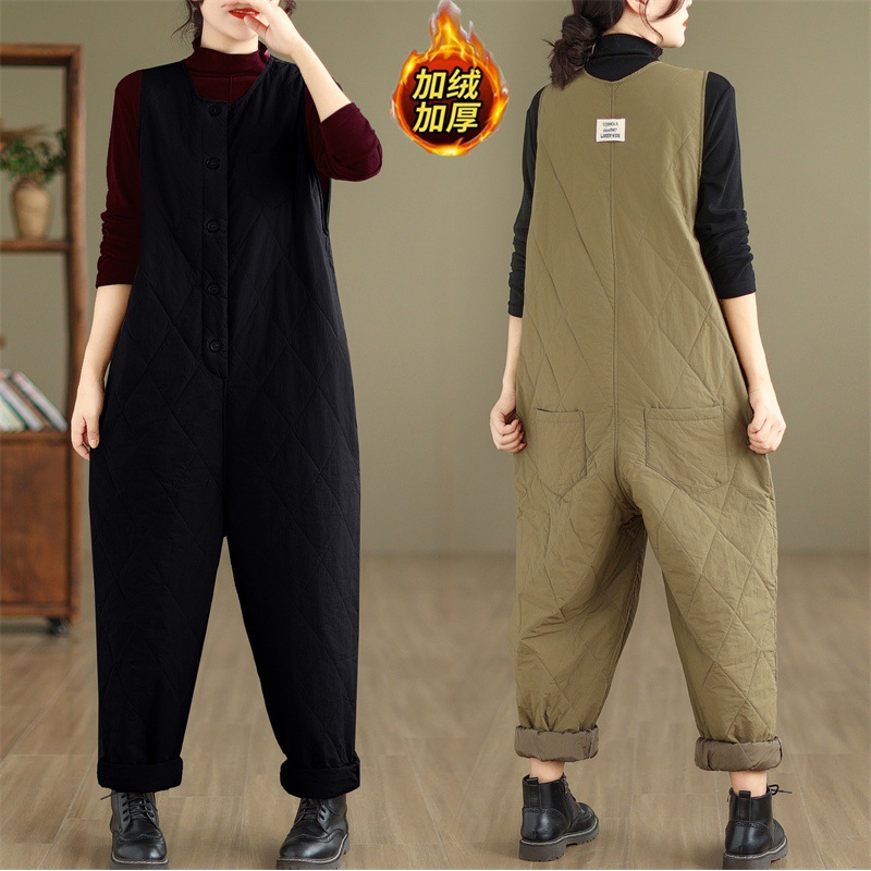 3369 # Зимний новый стильный стеганый хлопковый комбинезон большого размера, теплые брюки-шаровары