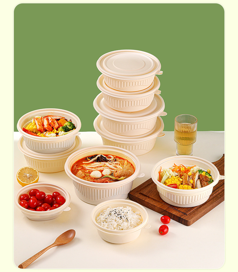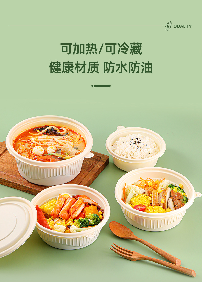 Биоразлагаемый одноразовый Ланч-бокс кукурузный крахмал круглая упаковочная коробка на вынос Экологически чистая коробка для фаст-фуда суп разделение лапши Круглая Чаша