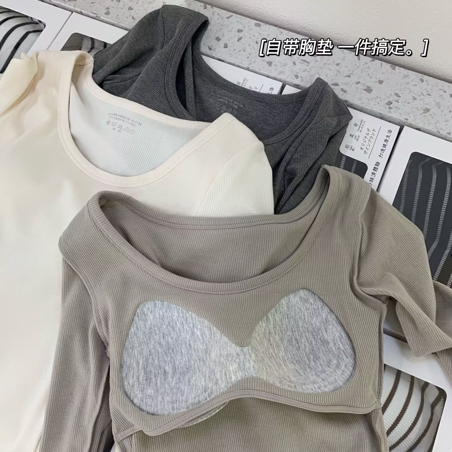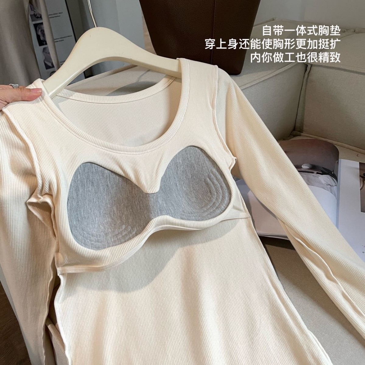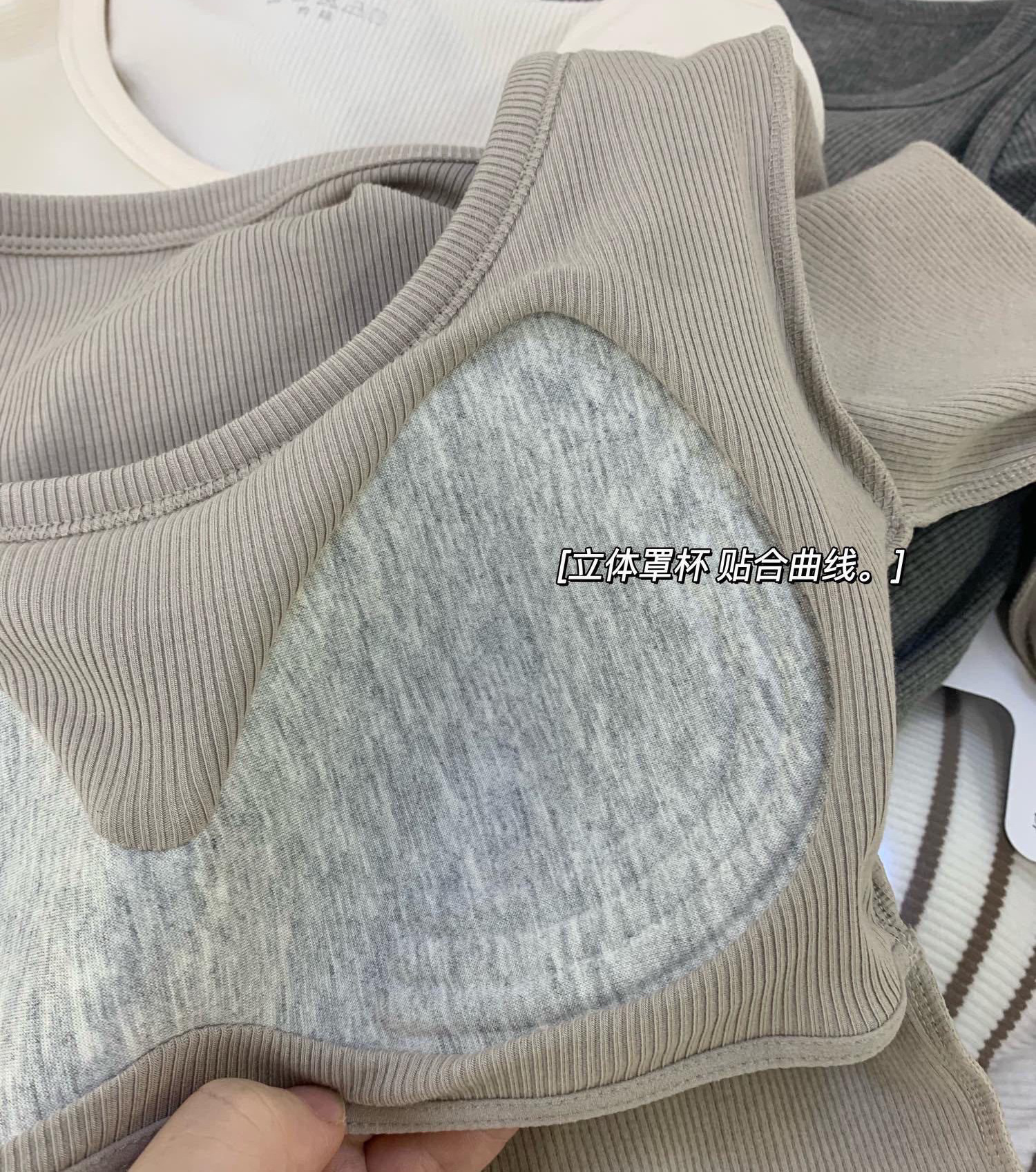 自带固定一体杯,不用再另外穿Bra了
