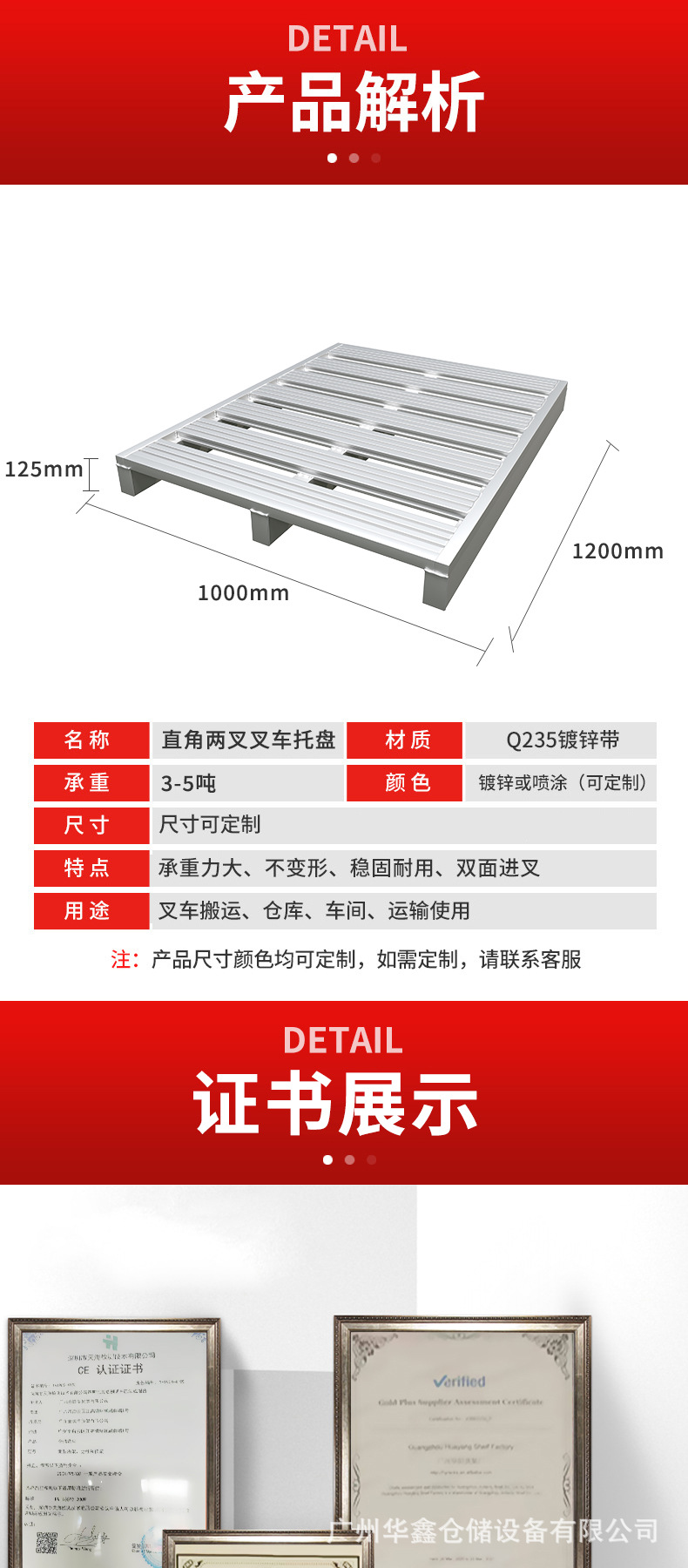 Chuanzi оцинкованный вилочный погрузчик Железный поддон логистический склад оборот стальной металлический пол карта доска влагостойкая опорная пластина