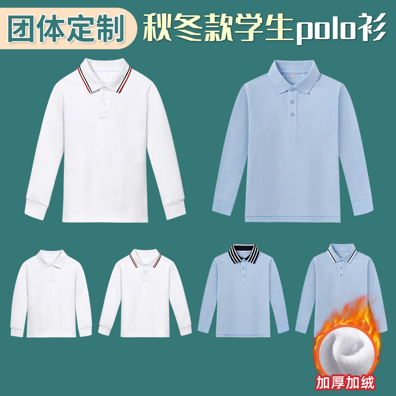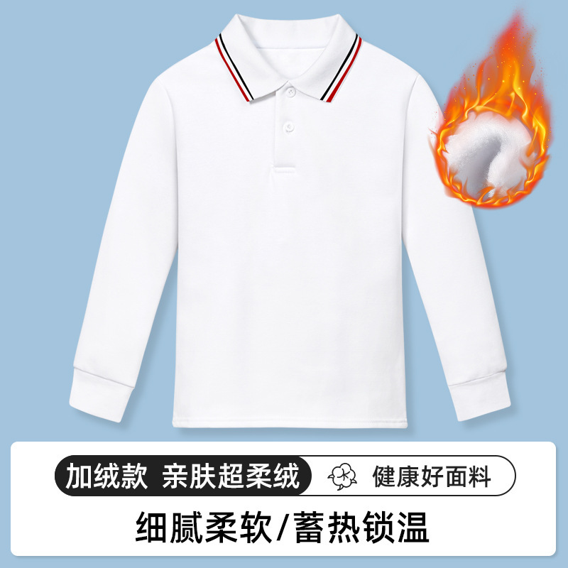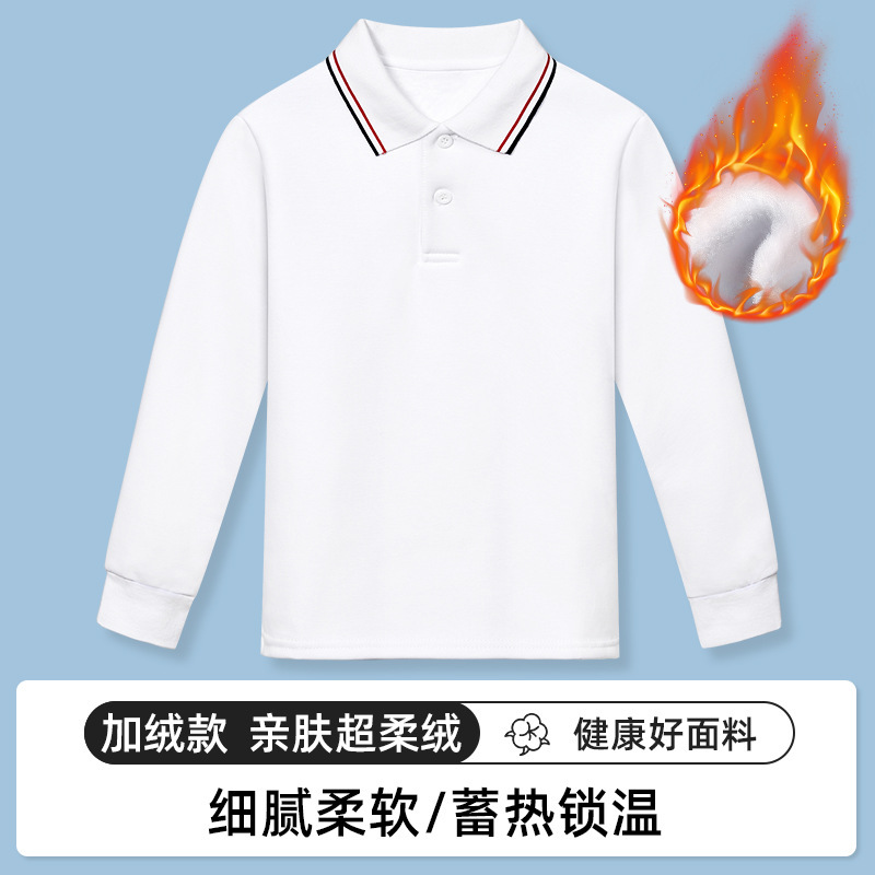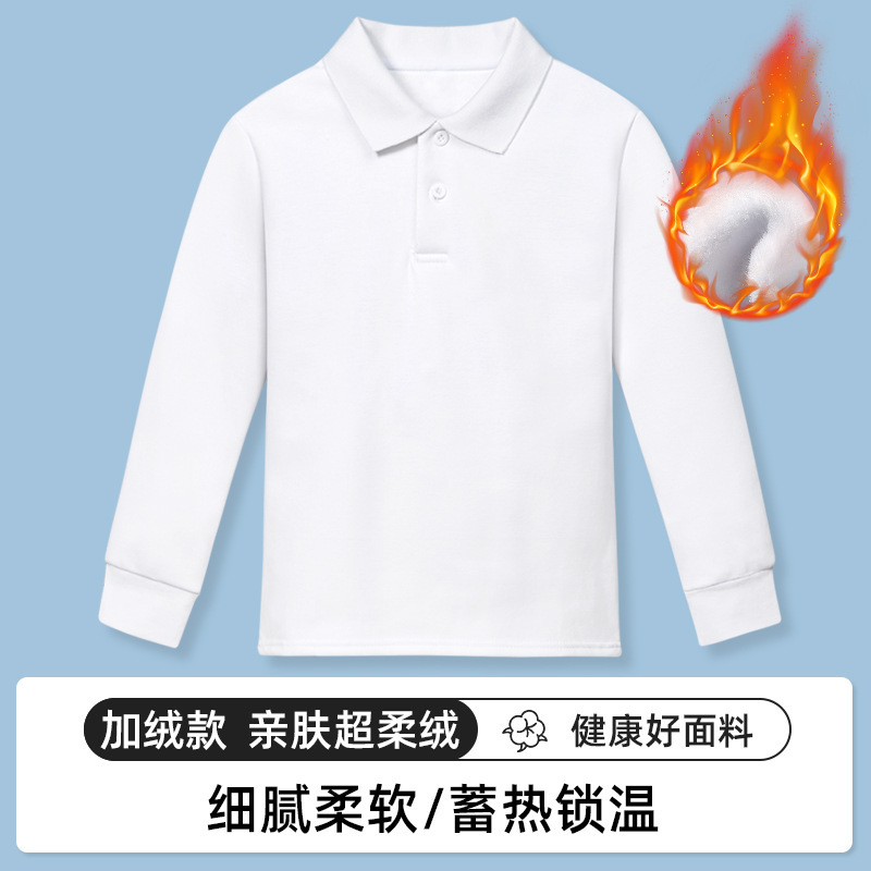 Студенческая рубашка-поло для мальчиков и девочек, осенне-зимняя утолщенная чисто белая футболка на флисовой подкладке, школьная форма из чистого хлопка с лацканами и длинным рукавом