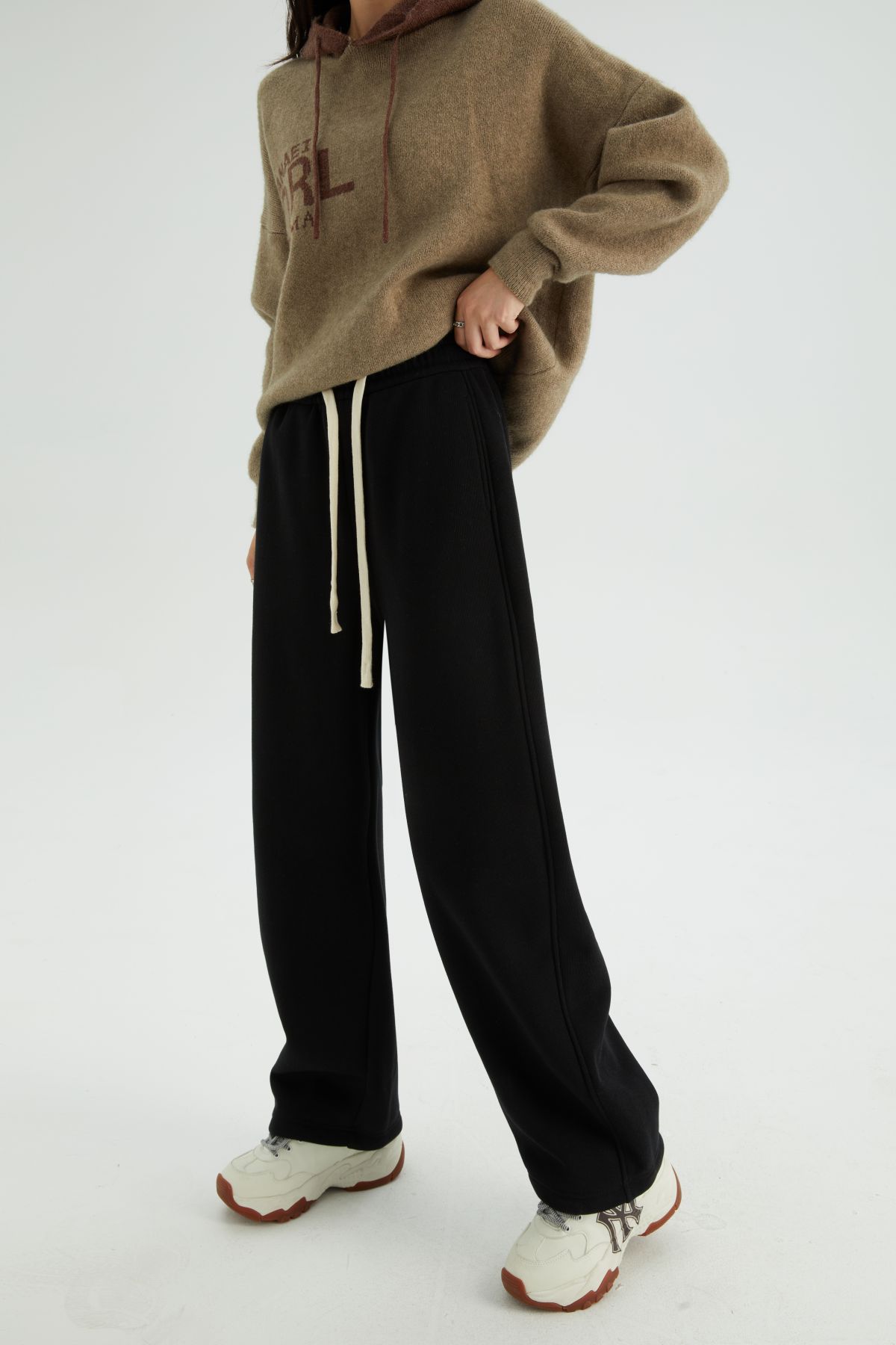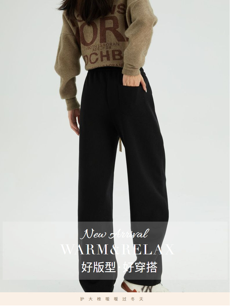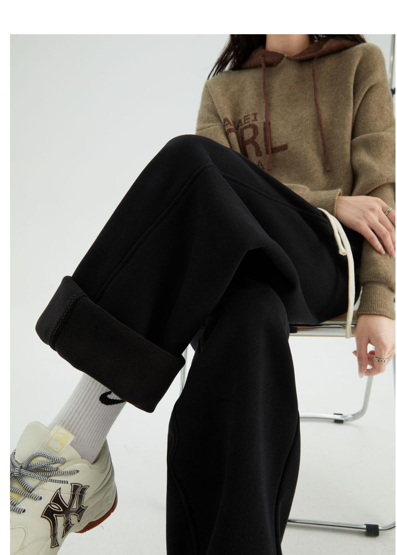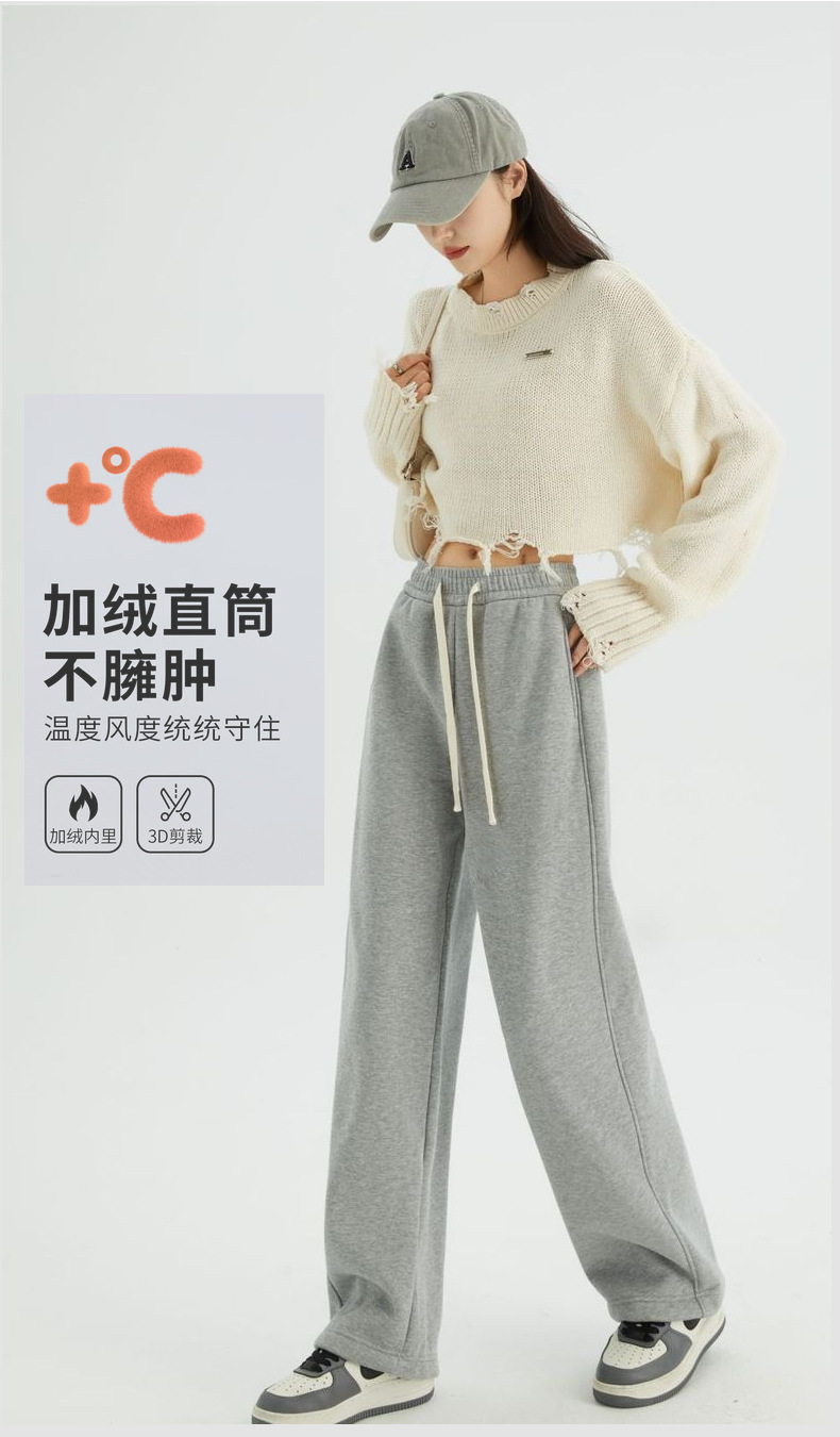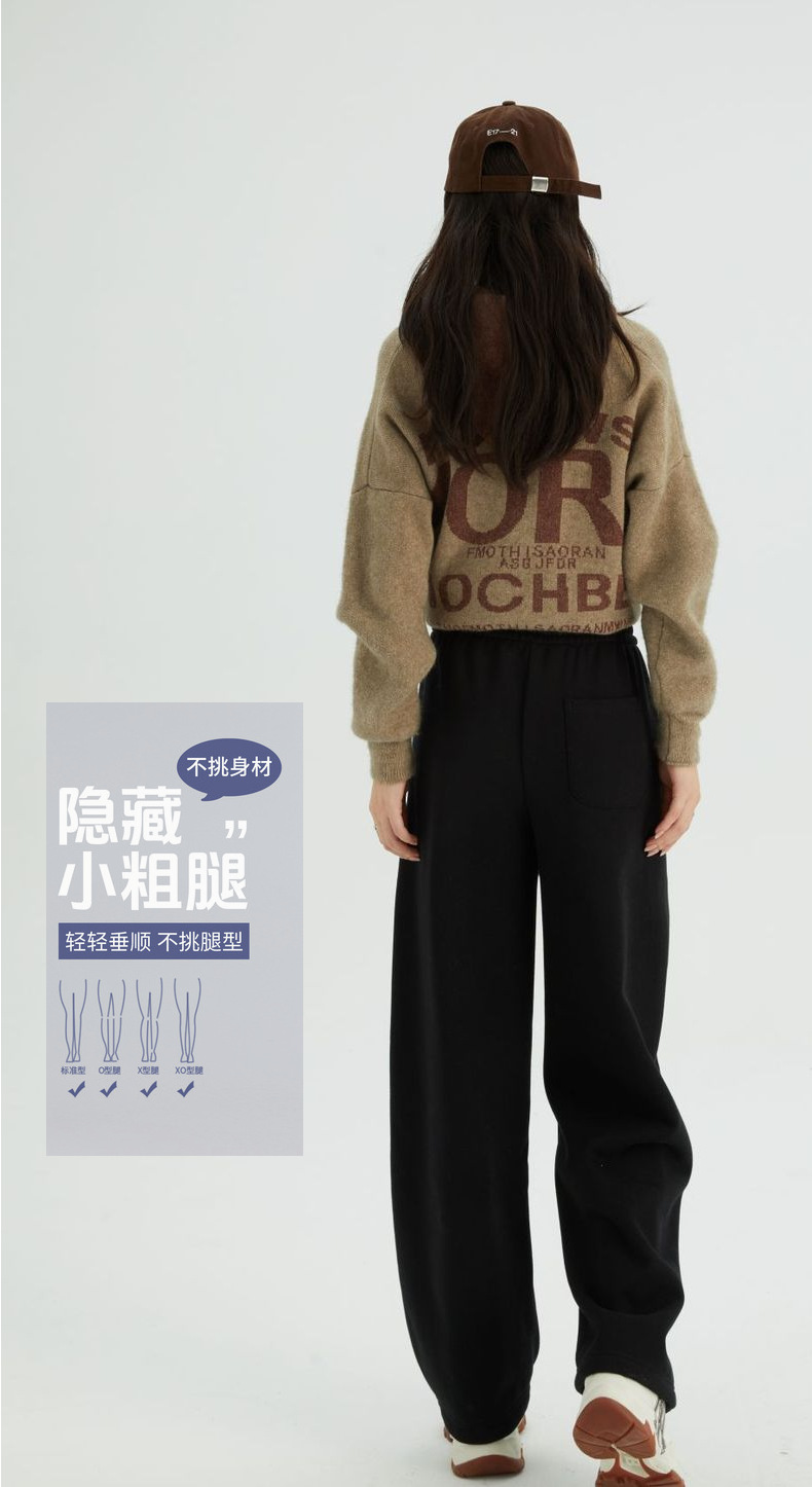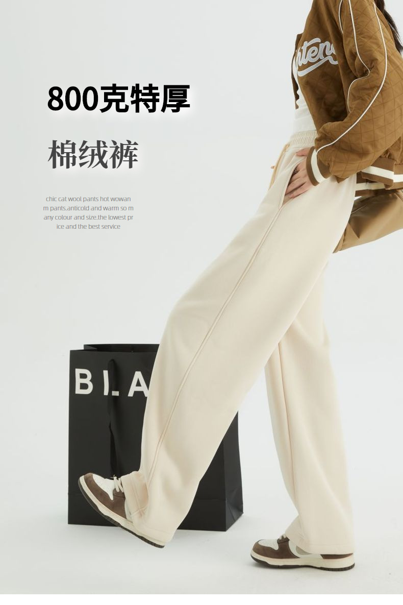 【Широкие брюки из имитации кашемира 700 г】Зимние женские теплые свободные спортивные штаны из хлопка, прямые, с высокой талией, стройнящие фигуру