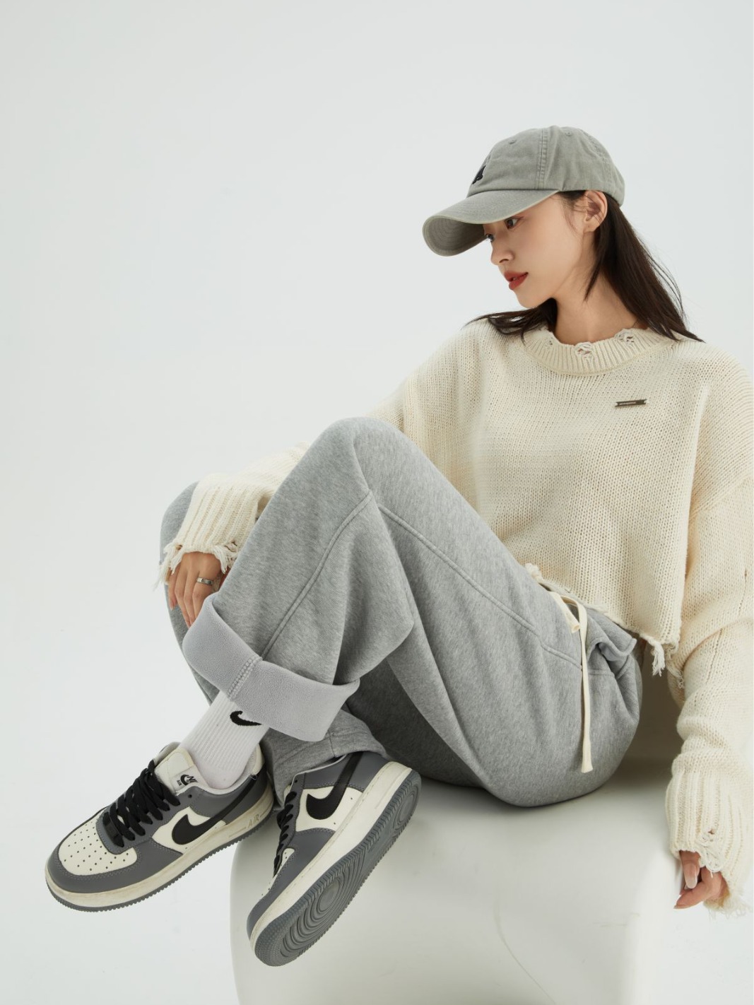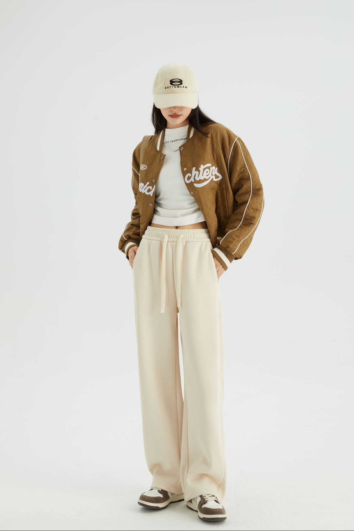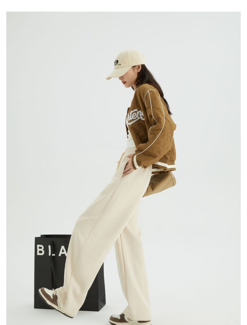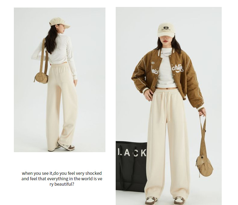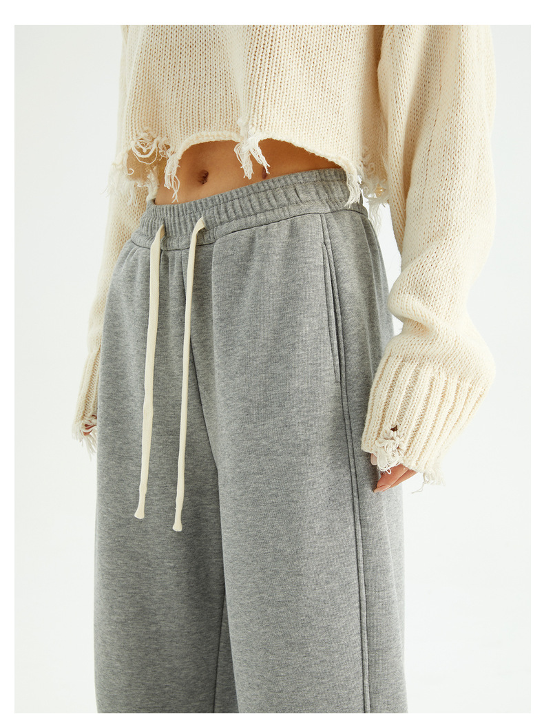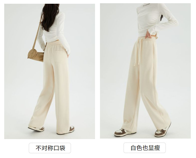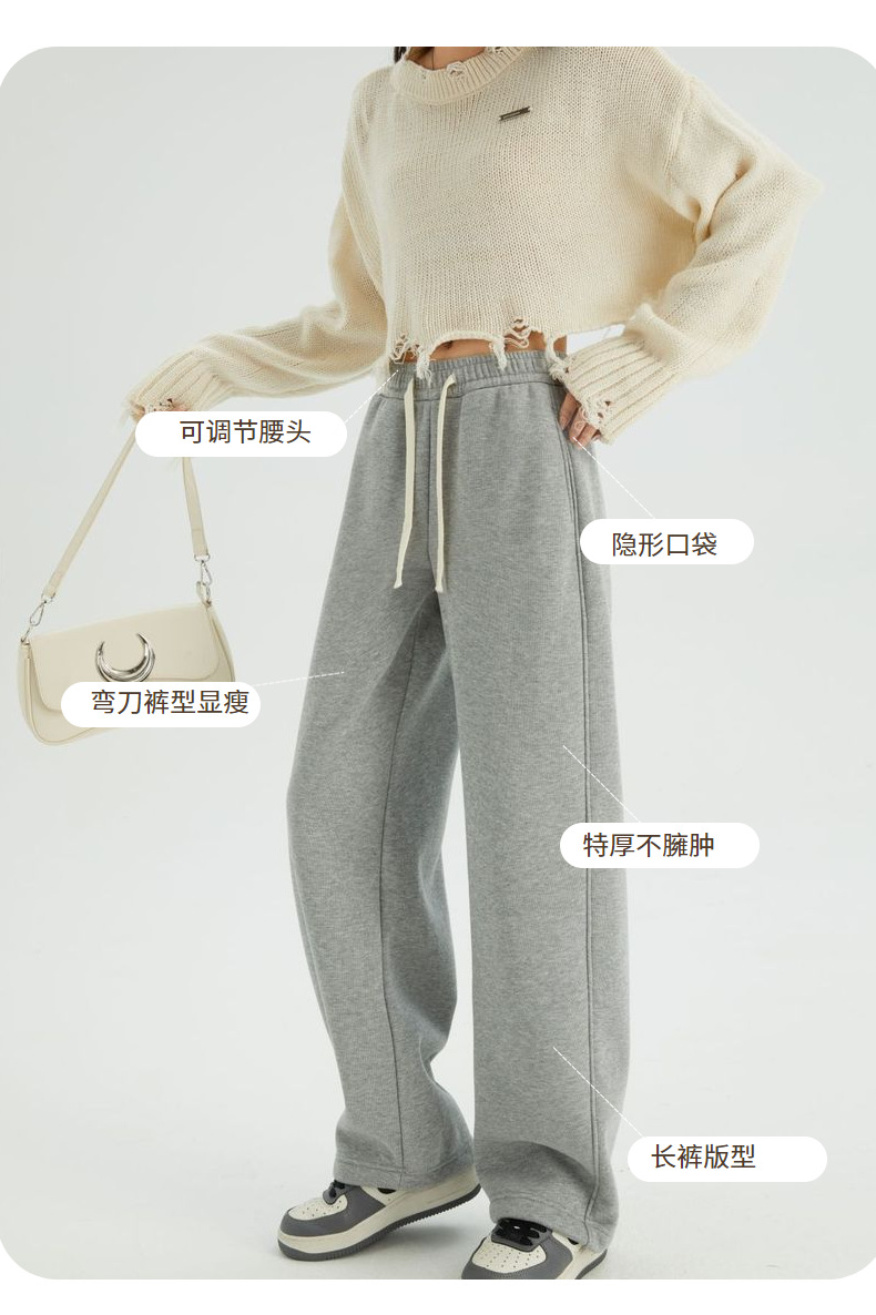 【Широкие брюки из имитации кашемира 700 г】Зимние женские теплые свободные спортивные штаны из хлопка, прямые, с высокой талией, стройнящие фигуру