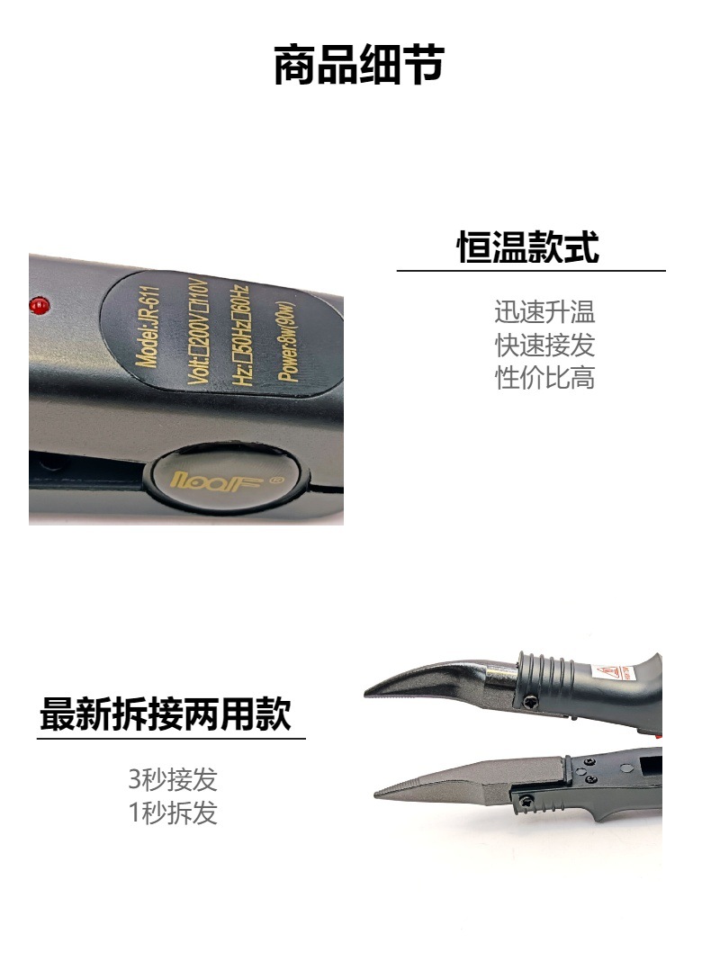 7.D头可接可拆,前端尖嘴钳设计,热融拆发,1秒可拆卸。