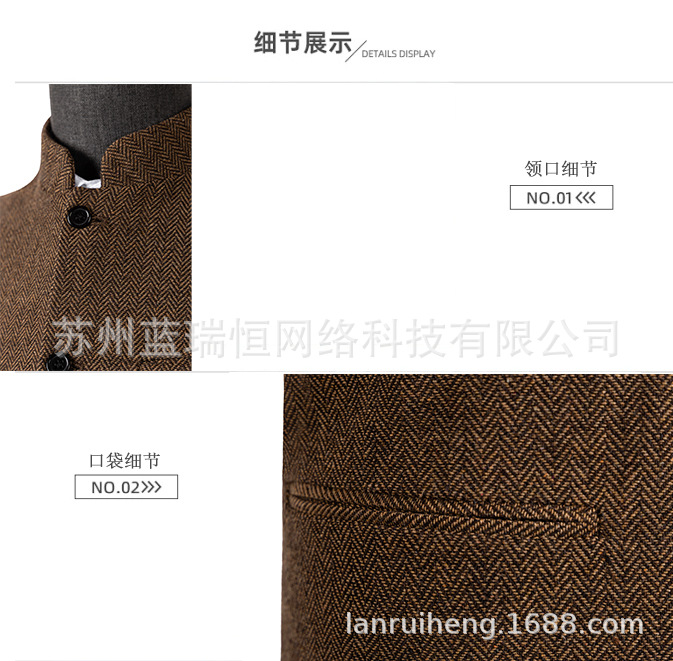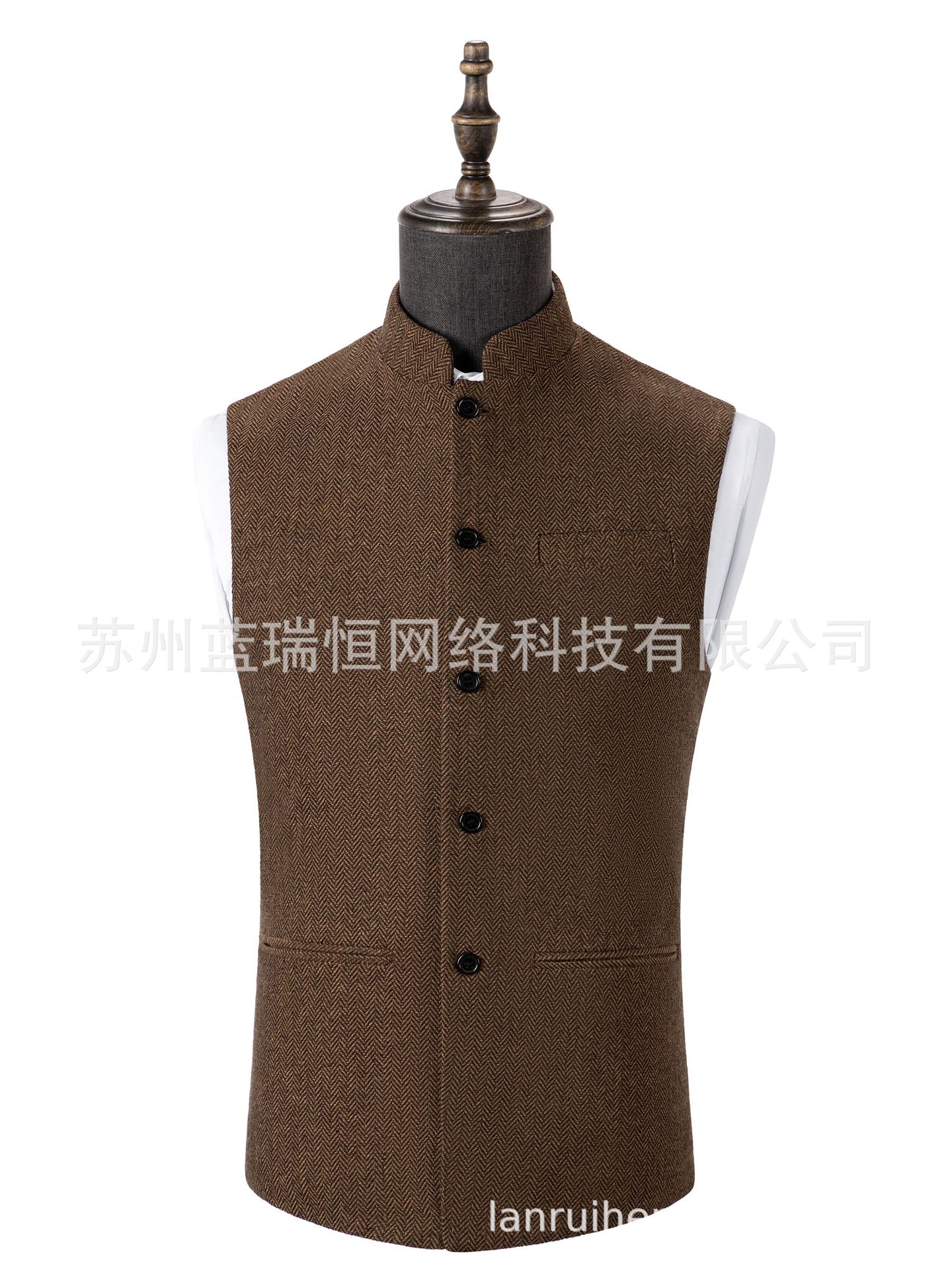 Трансграничный предпочтительный мужской жилет, воротник-стойка, жилет в стиле Чжуншань, жилет с узором «елочка», прямая продажа с фабрики, готовый жилет