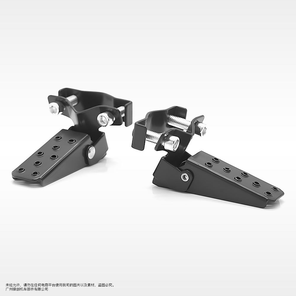适用电动车摩托车 铁制复古风防滑脚钉脚踏板90度折叠 管夹式安装