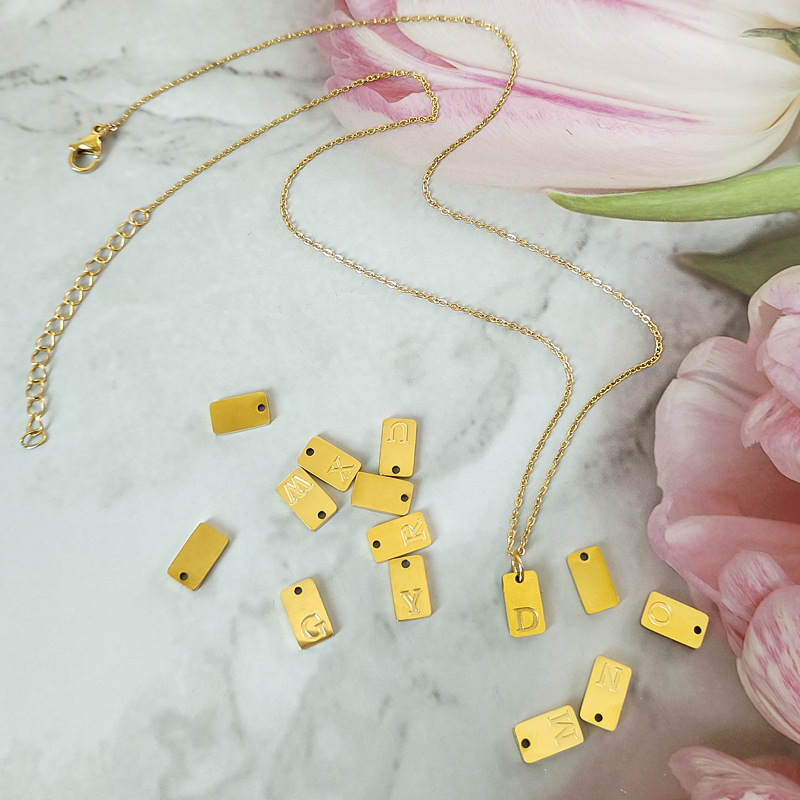 Золотые буквы квадратный кулон ожерелье (набор); Квадратный кулон с золотыми буквами