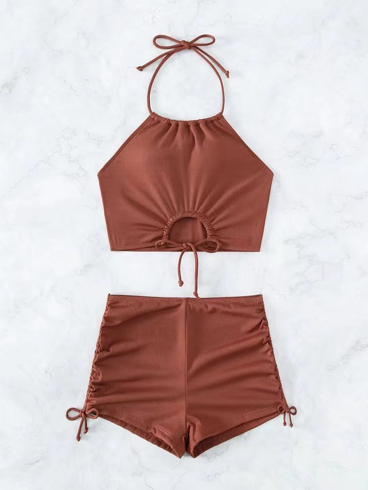 Европейский и американский купальник женский горячий источник консервативный бикини внешняя торговля сплошной цвет Хулудао купальник bikini сексуальный купальник с открытой спиной