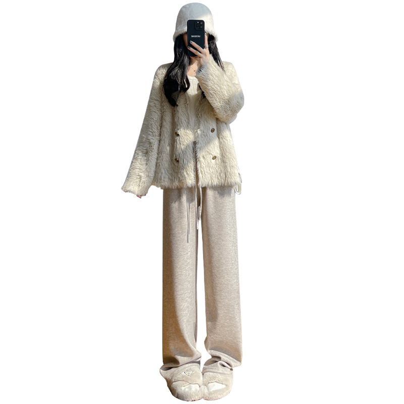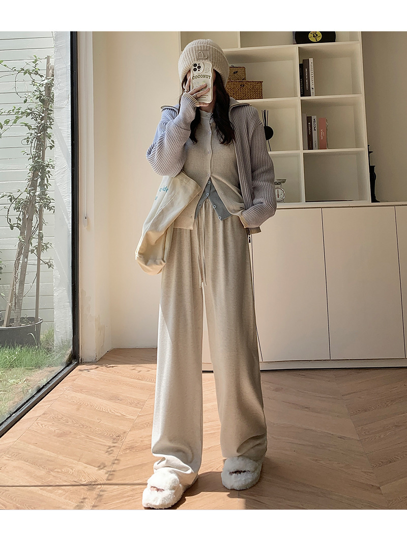 Брюки с клейким рисом на флисовой подкладке в японском стиле, женские осенне-зимние прямые Узкие повседневные брюки для мытья полов с высокой талией, мягкие трикотажные широкие брюки с высокой талией
