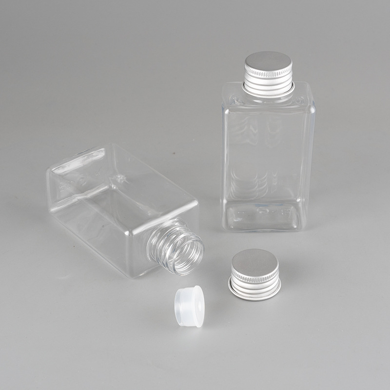 Прозрачная плоская Квадратная бутылка + алюминиевая крышка