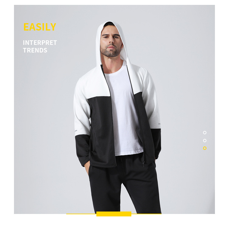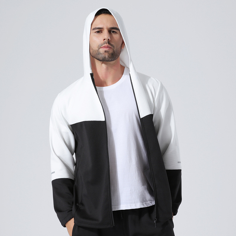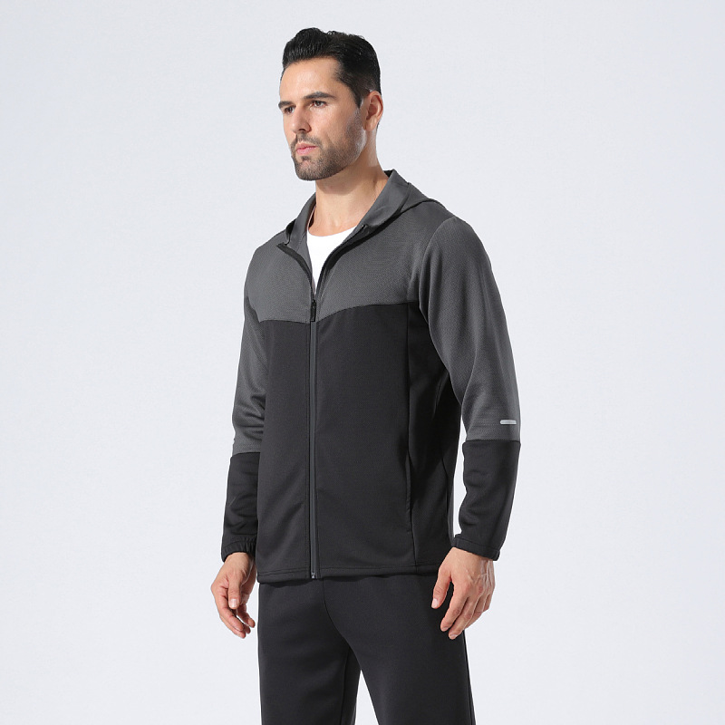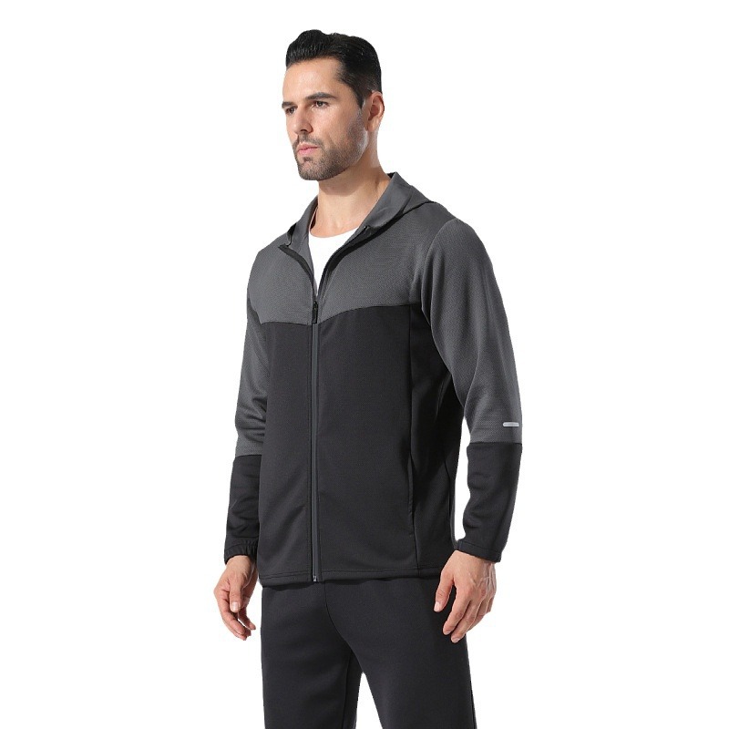 Мужская фитнес-куртка, осенне-зимняя высокоэластичная облегающая куртка, быстросохнущая спортивная куртка с капюшоном для бега и тренировок, универсальная.