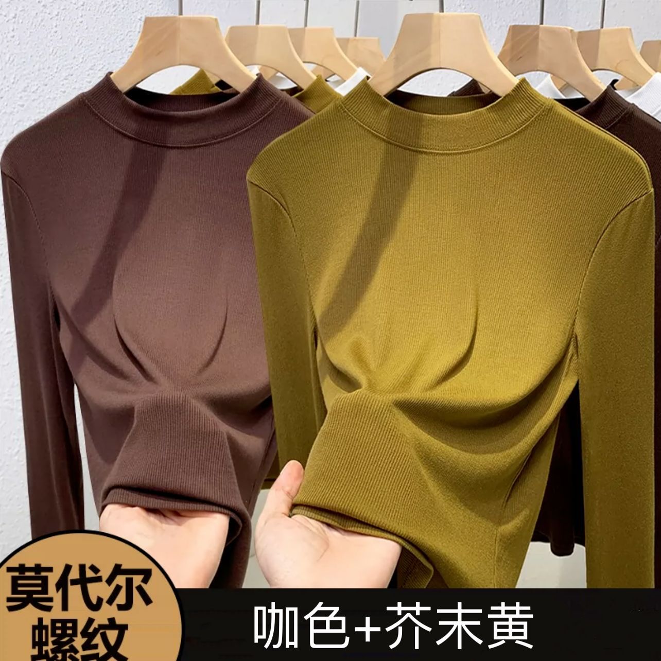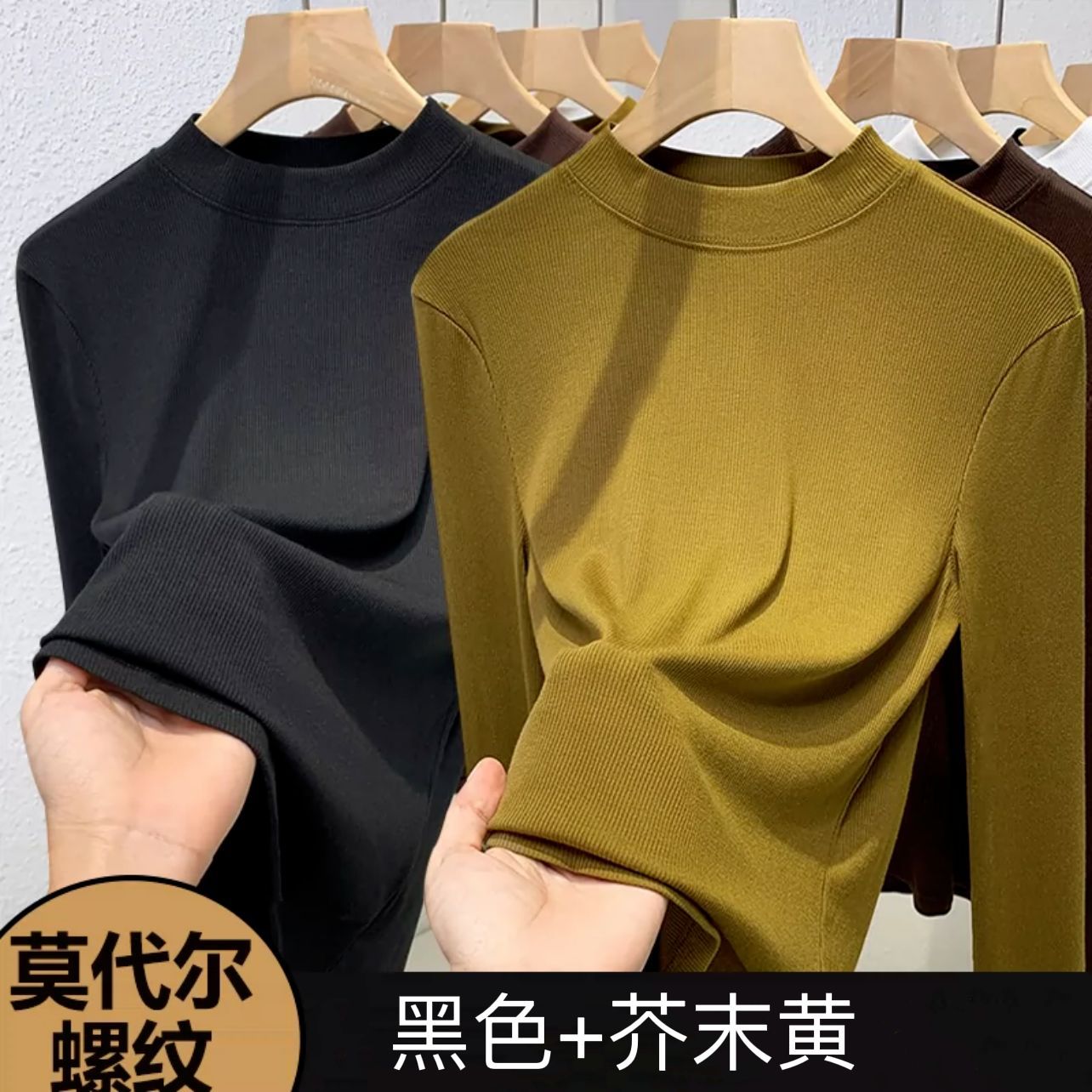 Встряхивая нижняя рубашка 2024 женская осенняя и зимняя корейская версия тонкой футболки с длинными рукавами