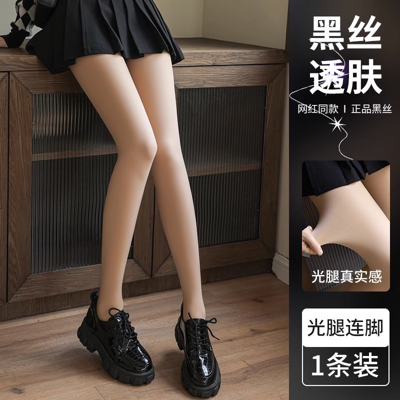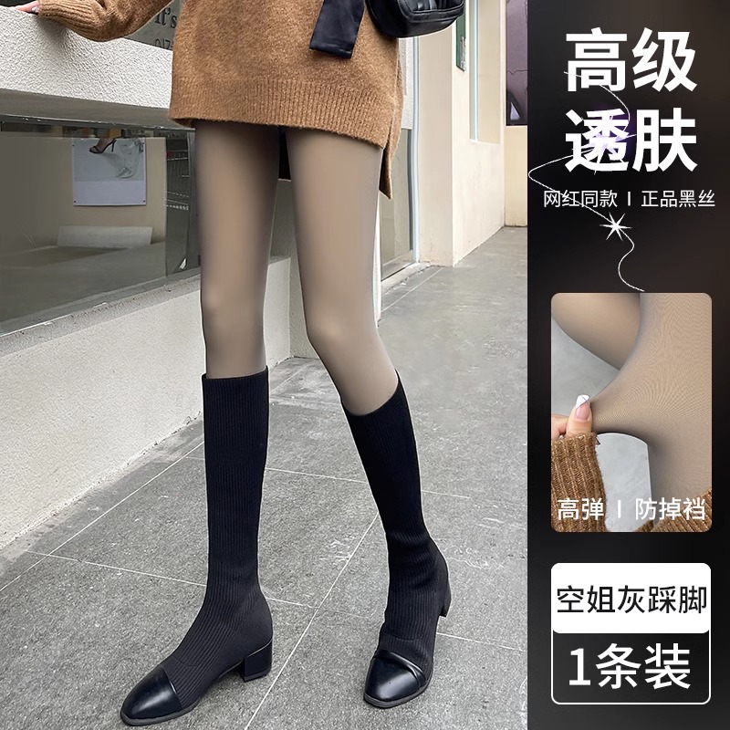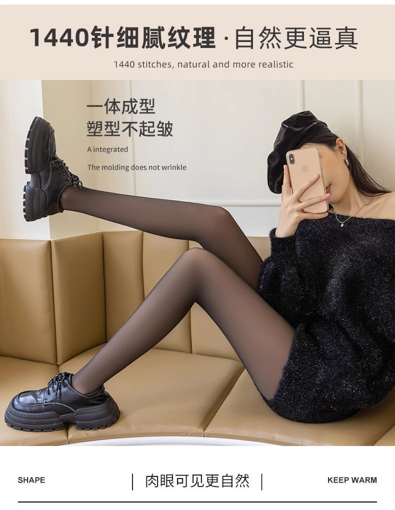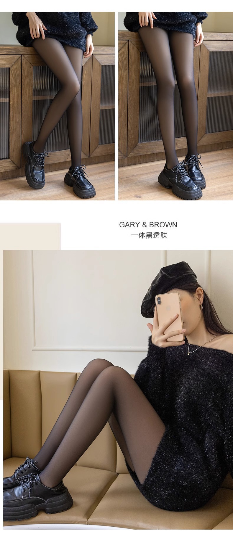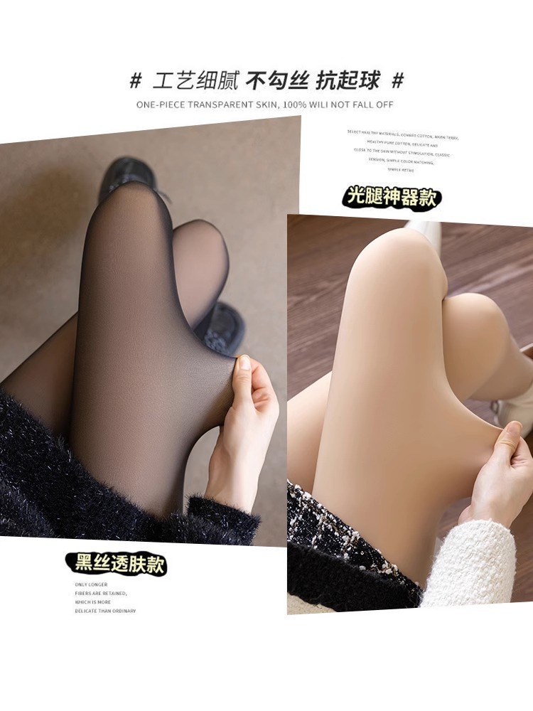 Черные шелковые чулки Легкие штанины Артефакт Сексуальные женские весенне-осенне-зимние леггинсы с обнаженными ощущениями Колготки из искусственная плоть на флисовой подкладке Утолщенная плоть