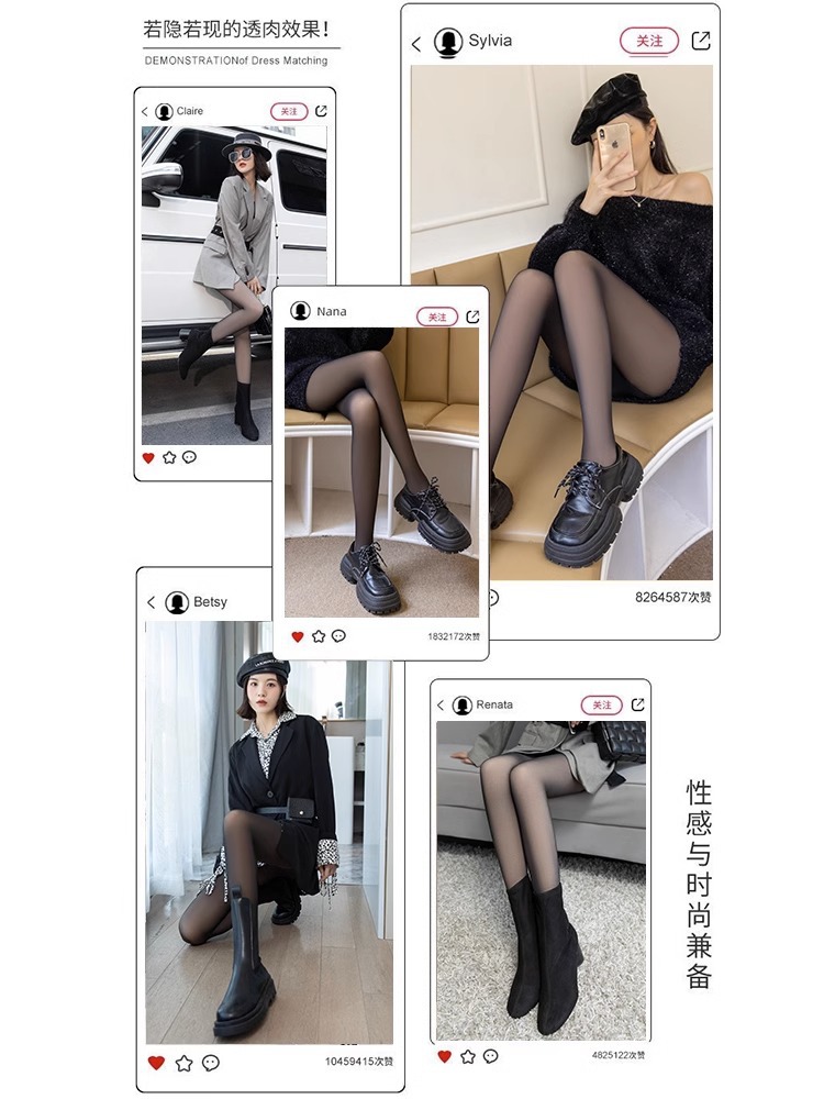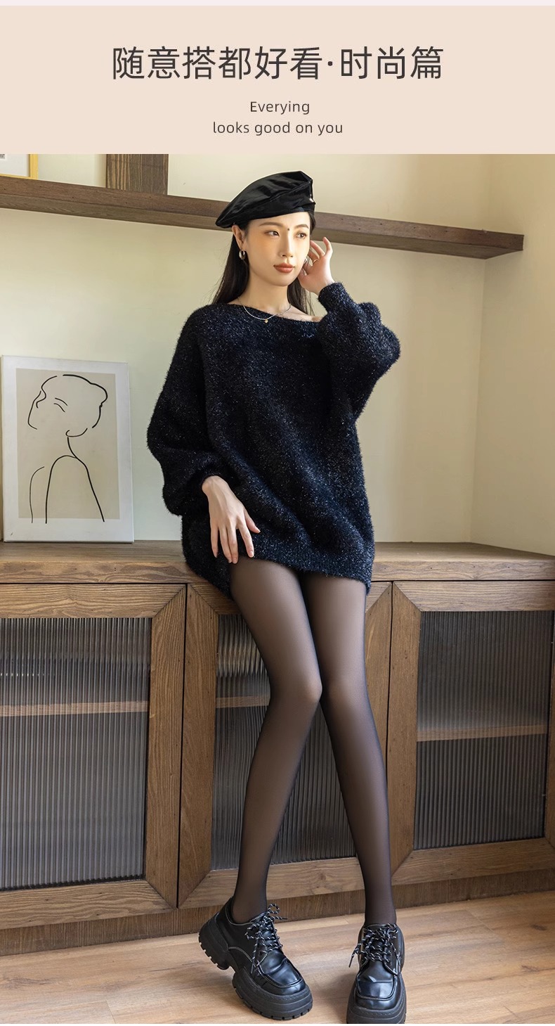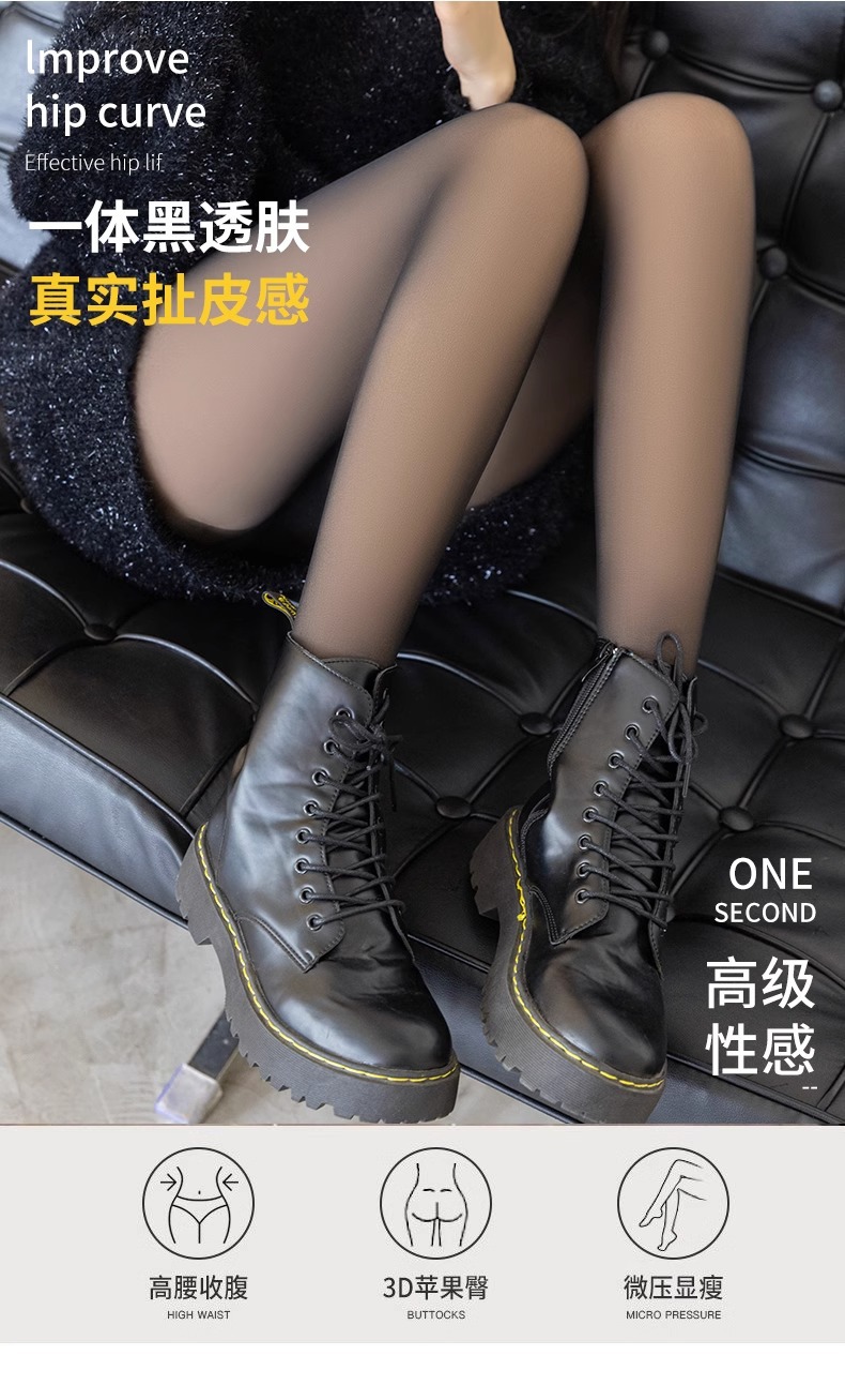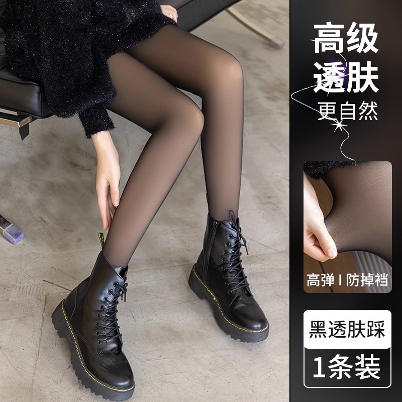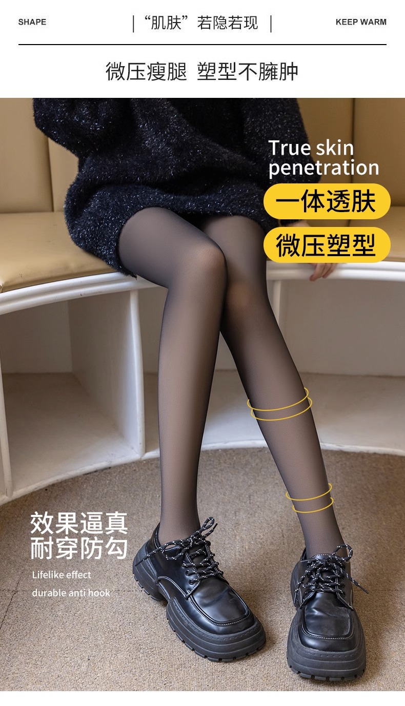 Черные шелковые чулки Легкие штанины Артефакт Сексуальные женские весенне-осенне-зимние леггинсы с обнаженными ощущениями Колготки из искусственная плоть на флисовой подкладке Утолщенная плоть