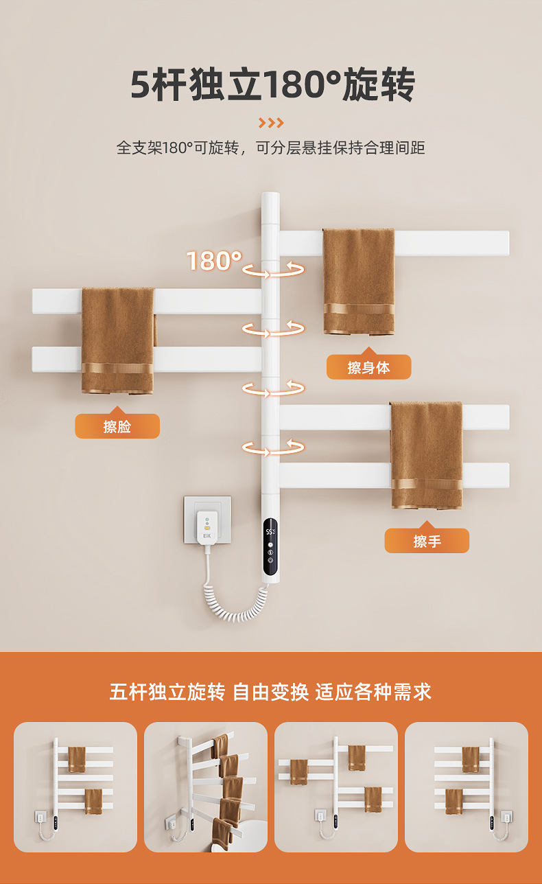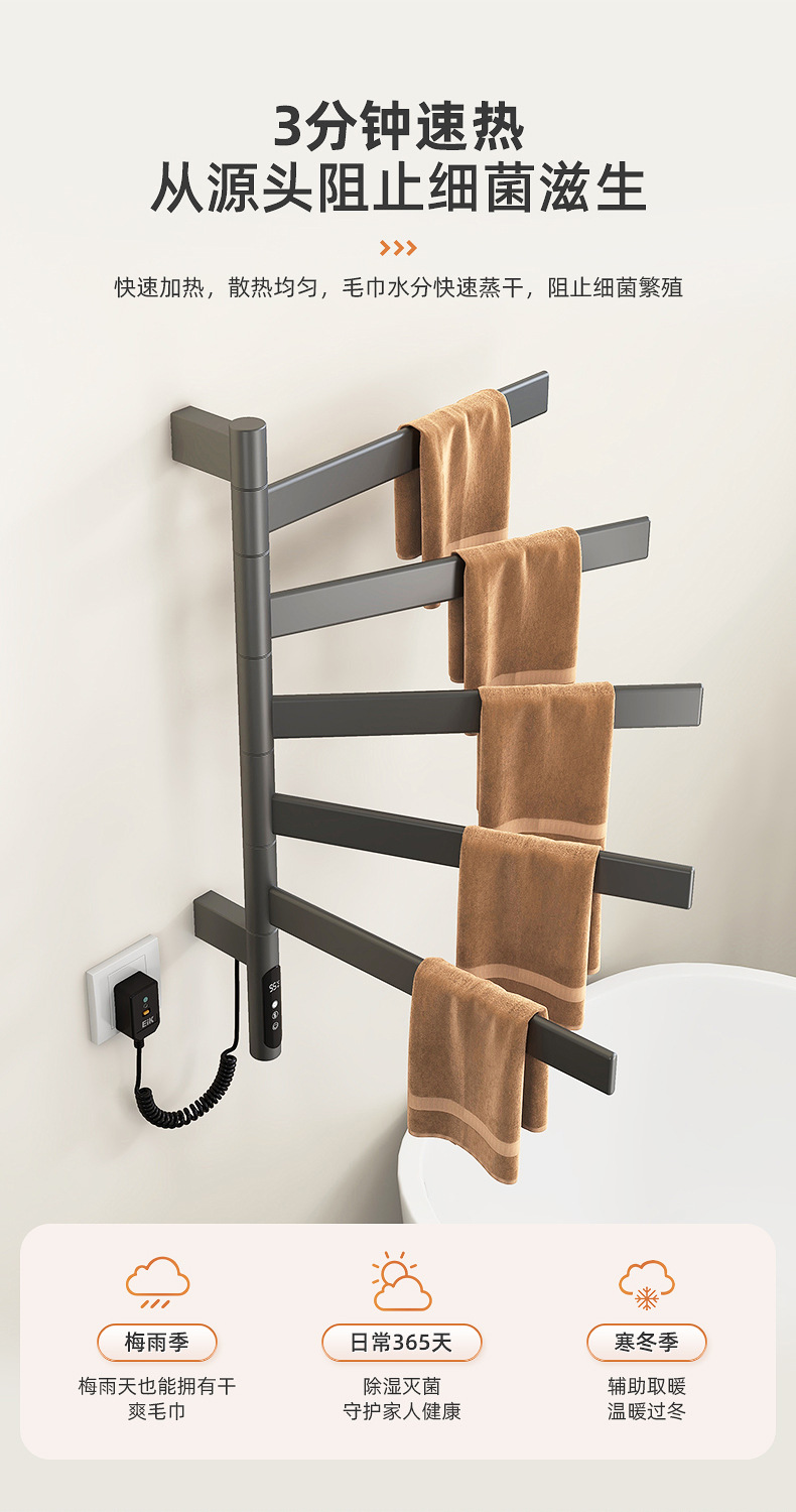 Вращающееся электрическое отопление полотенцесушитель бытовая ванная комната туалет интеллектуальная постоянная температура электрическое отопление скрытое полотенцесушитель полка
