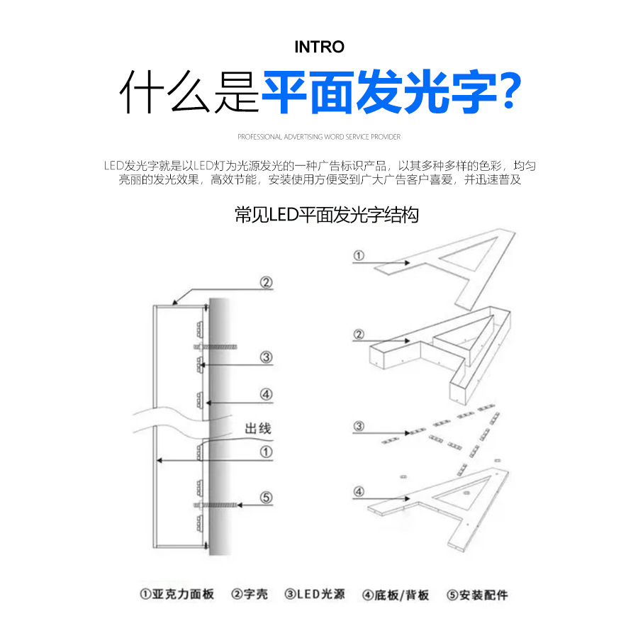 Световые буквы для внутреннего и наружного использования, рекламные щиты, акриловые светодиодные буквы, водонепроницаемые, плоские, прямые поставки с фабрики