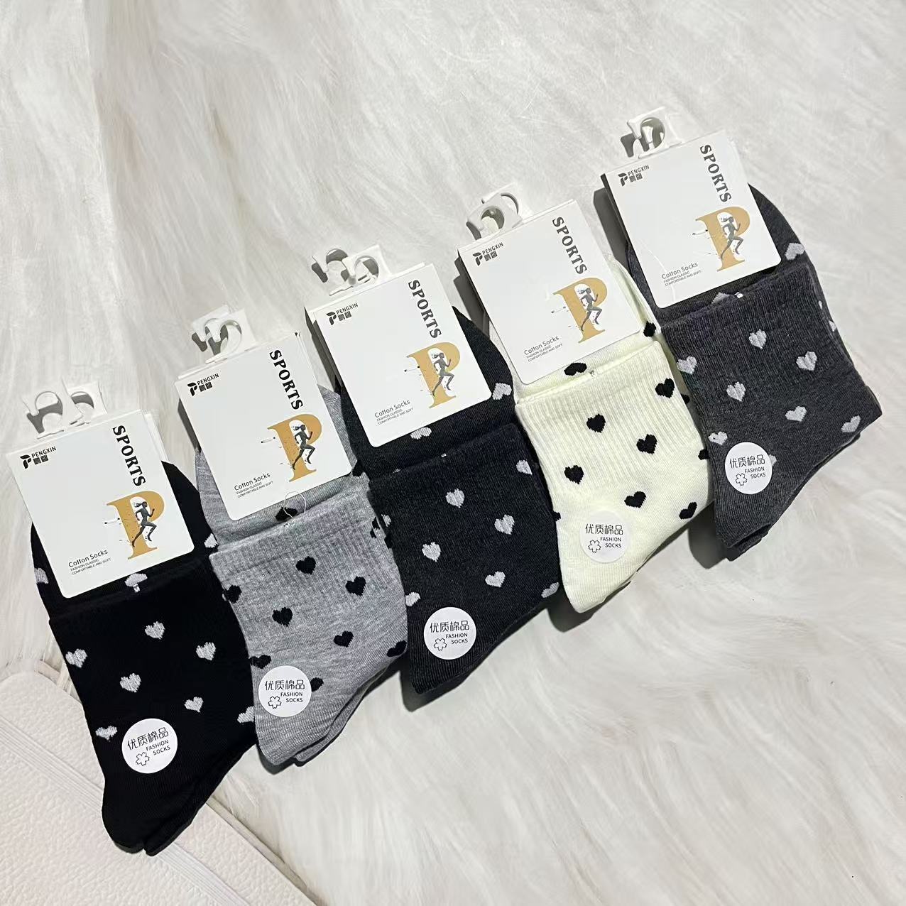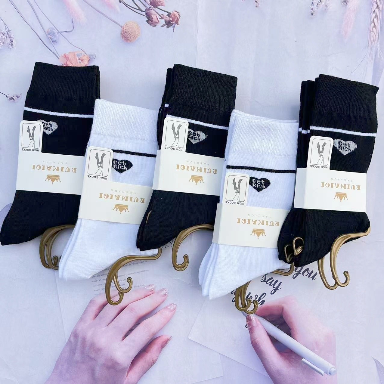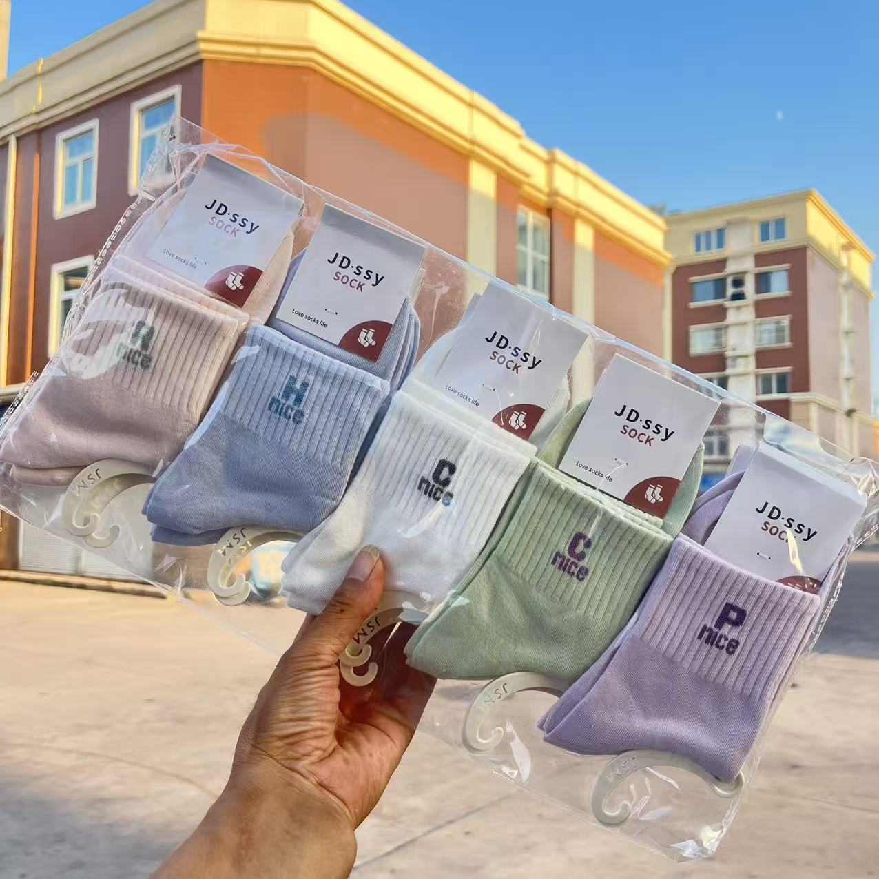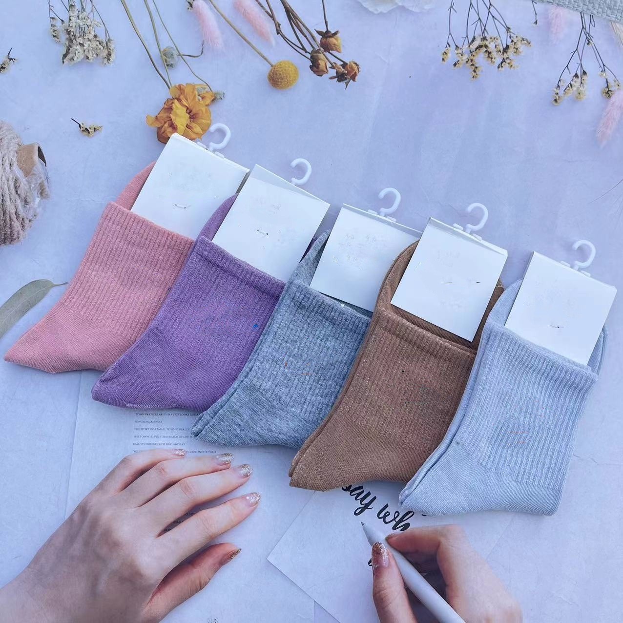 Набор в новом стиле для бега, женские носки из чесаного хлопка со средней талией, Спортивные Повседневные хлопковые носки в студенческом стиле для осени и зимы