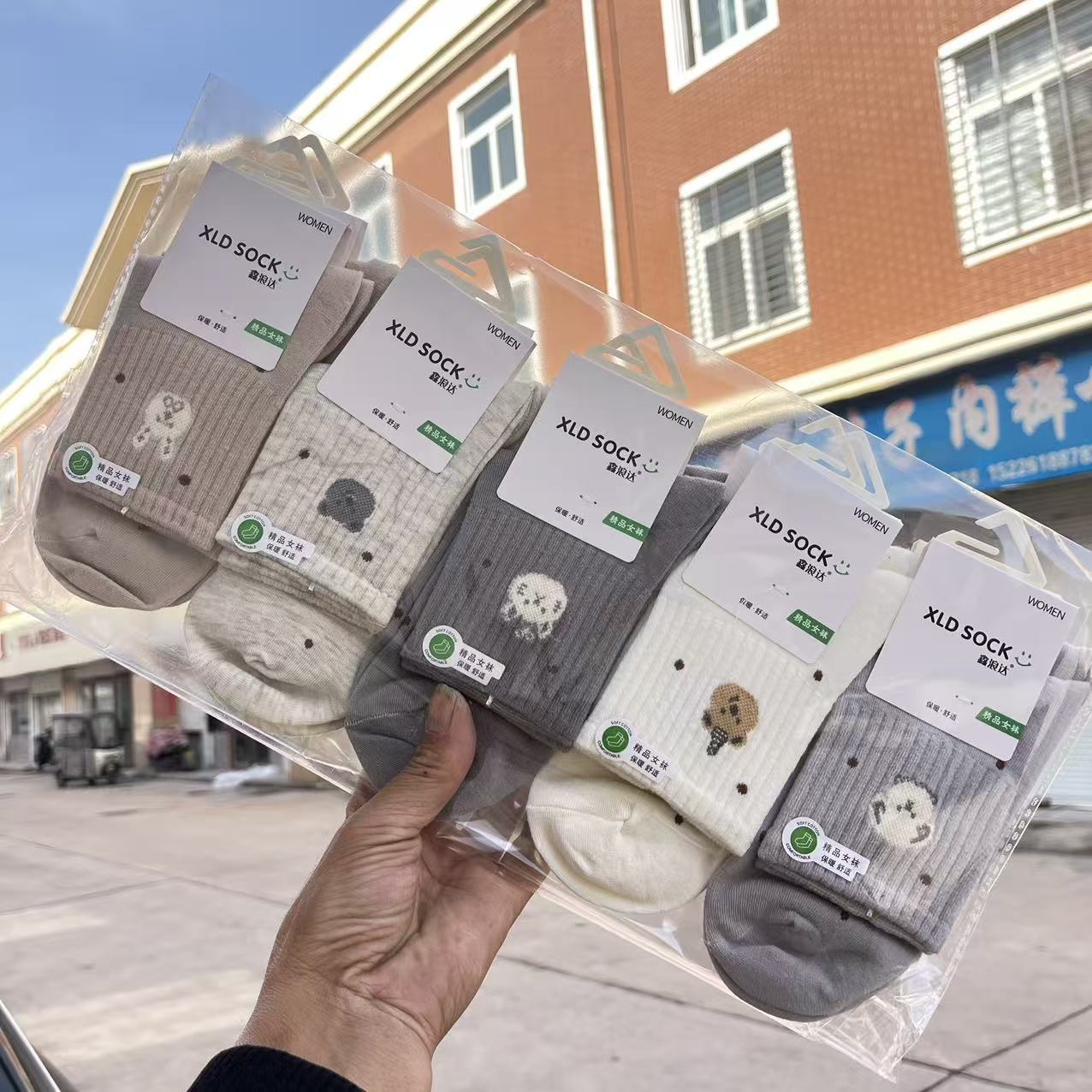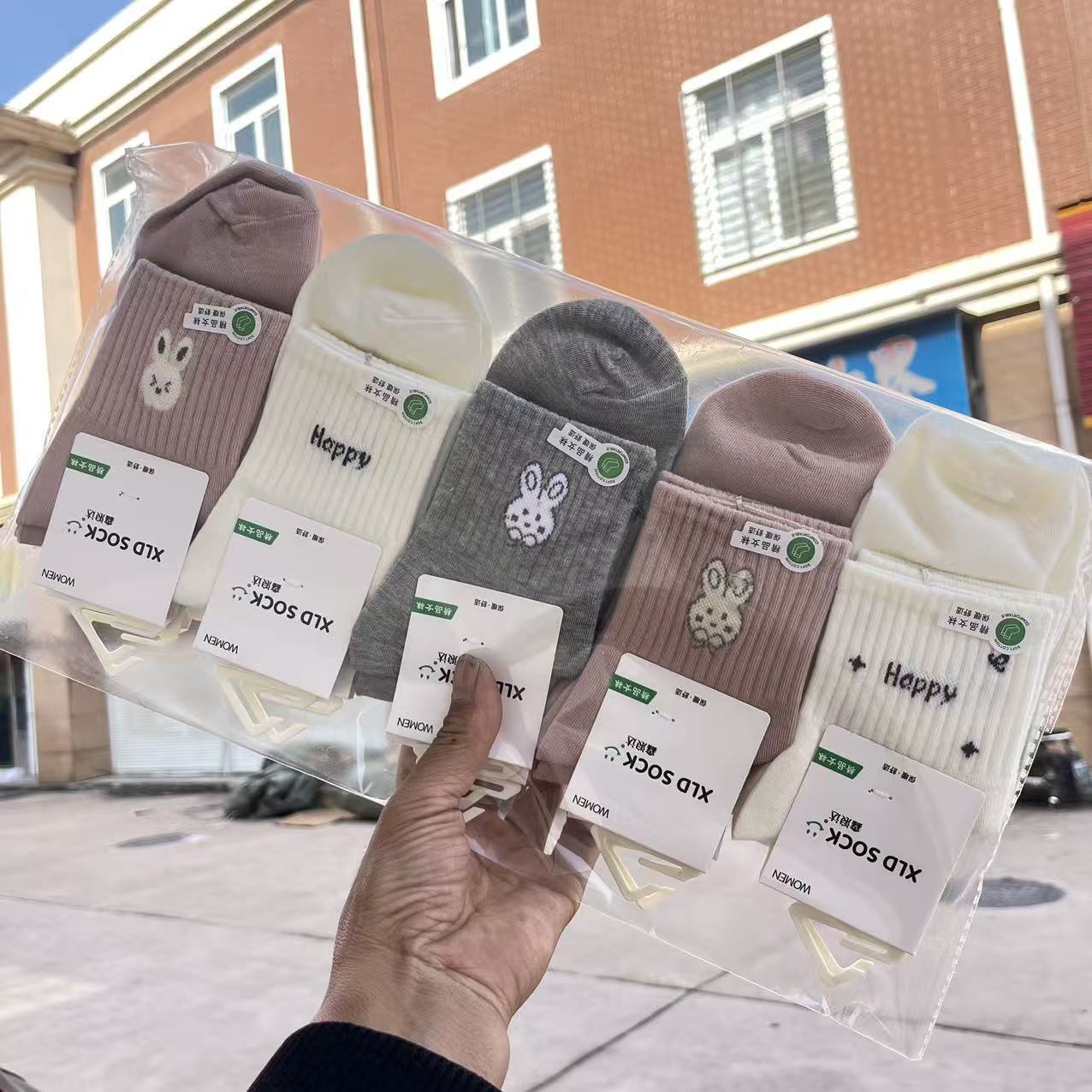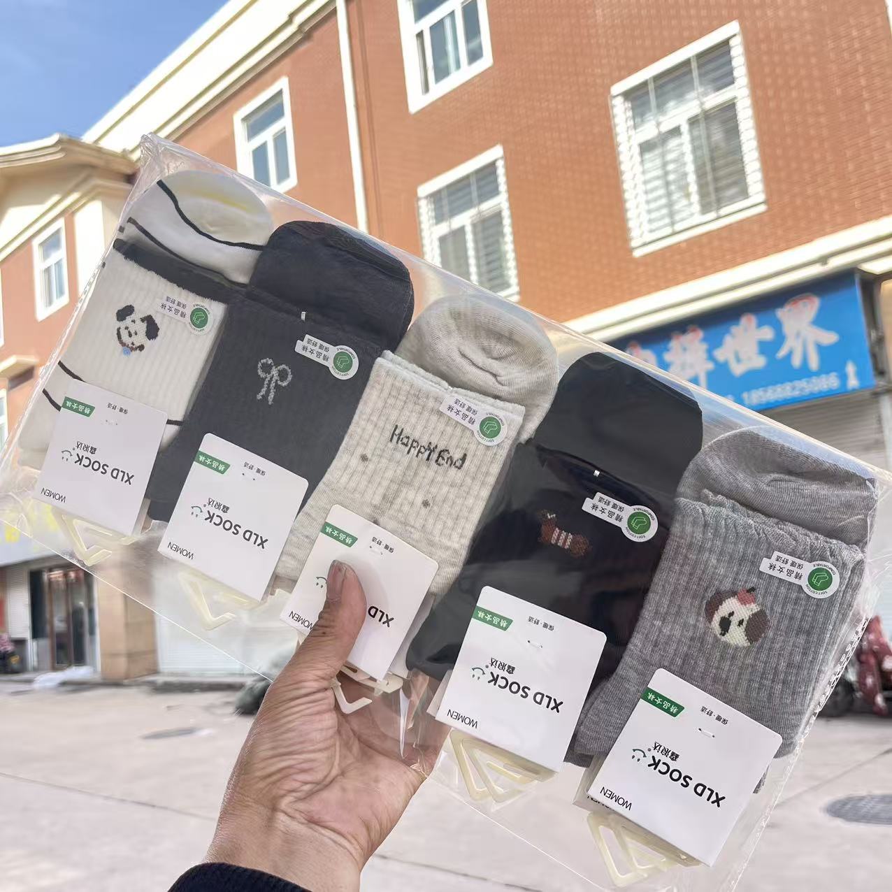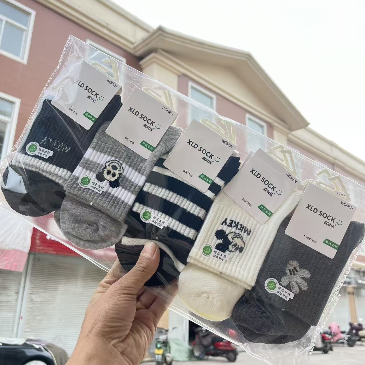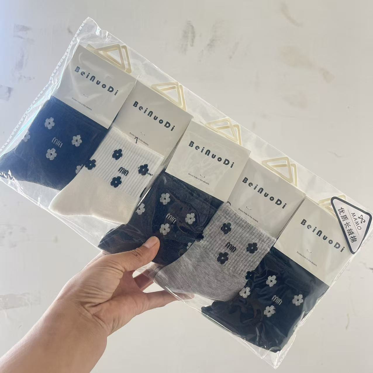 Набор в новом стиле для бега, женские носки из чесаного хлопка со средней талией, Спортивные Повседневные хлопковые носки в студенческом стиле для осени и зимы