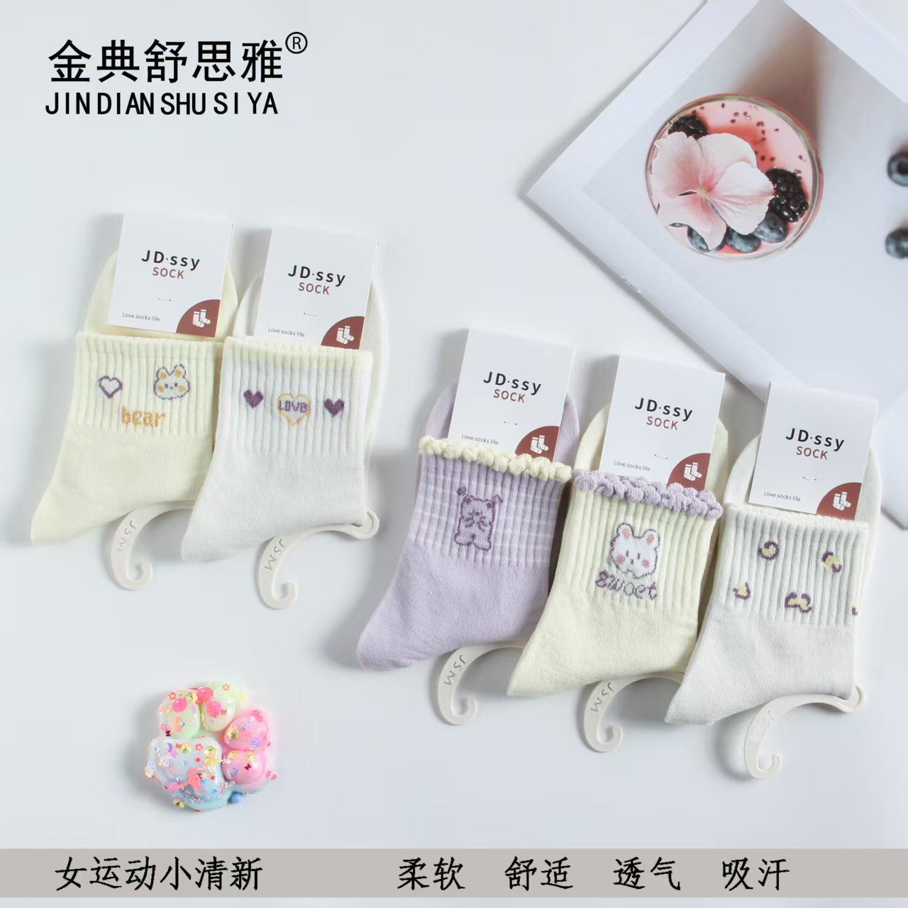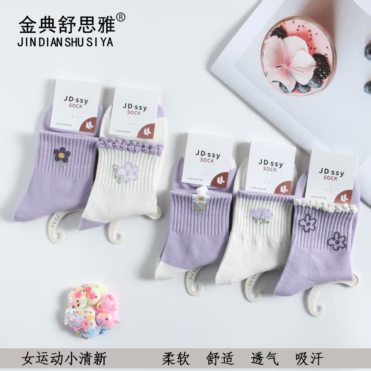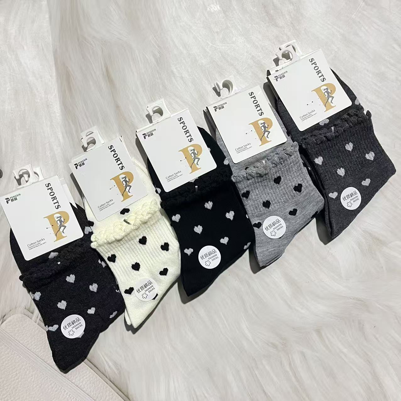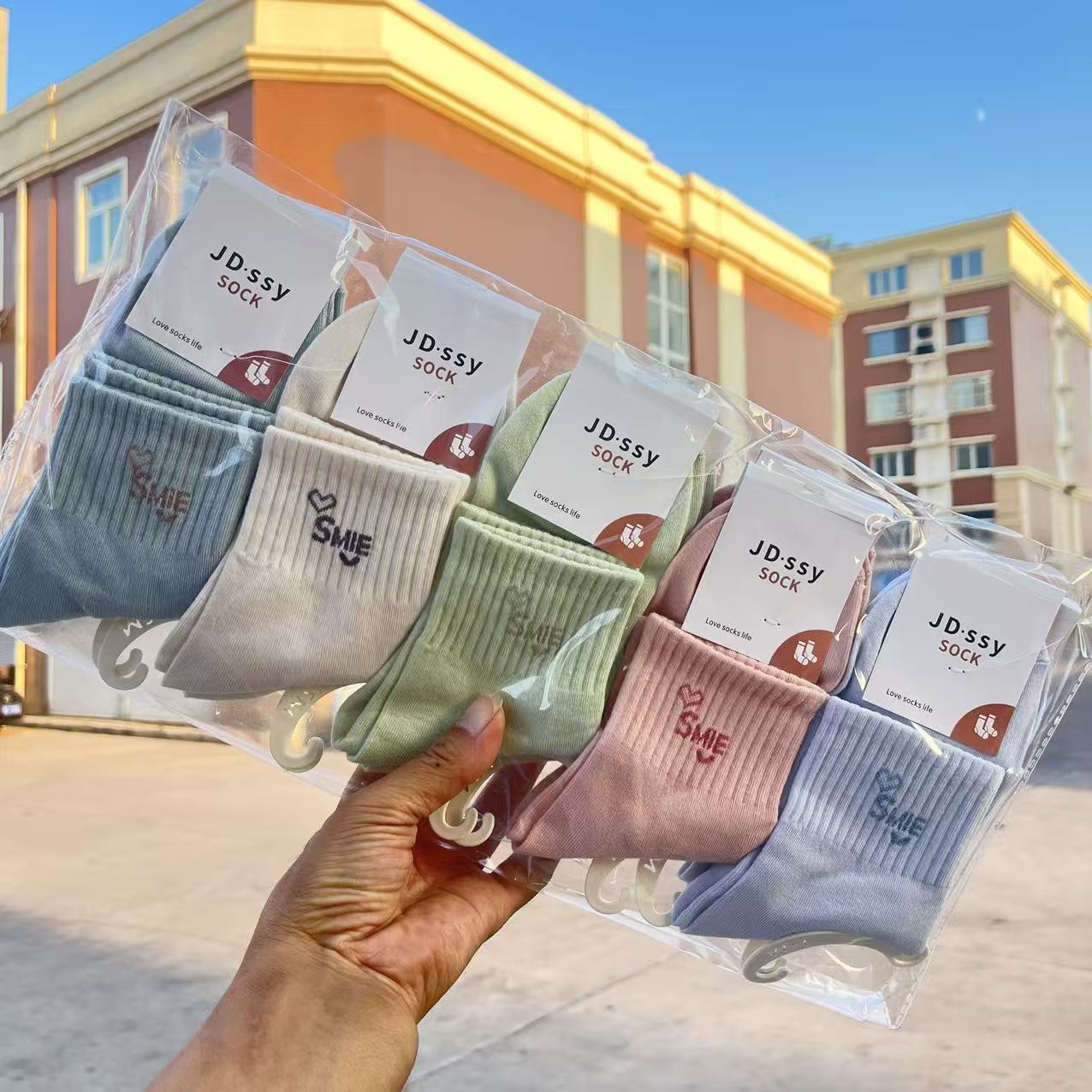 Набор в новом стиле для бега, женские носки из чесаного хлопка со средней талией, Спортивные Повседневные хлопковые носки в студенческом стиле для осени и зимы