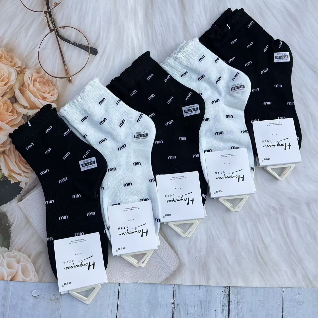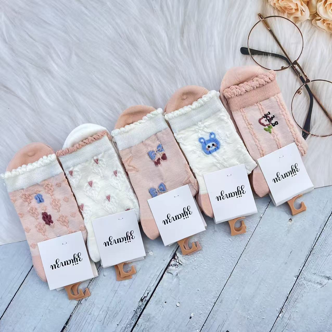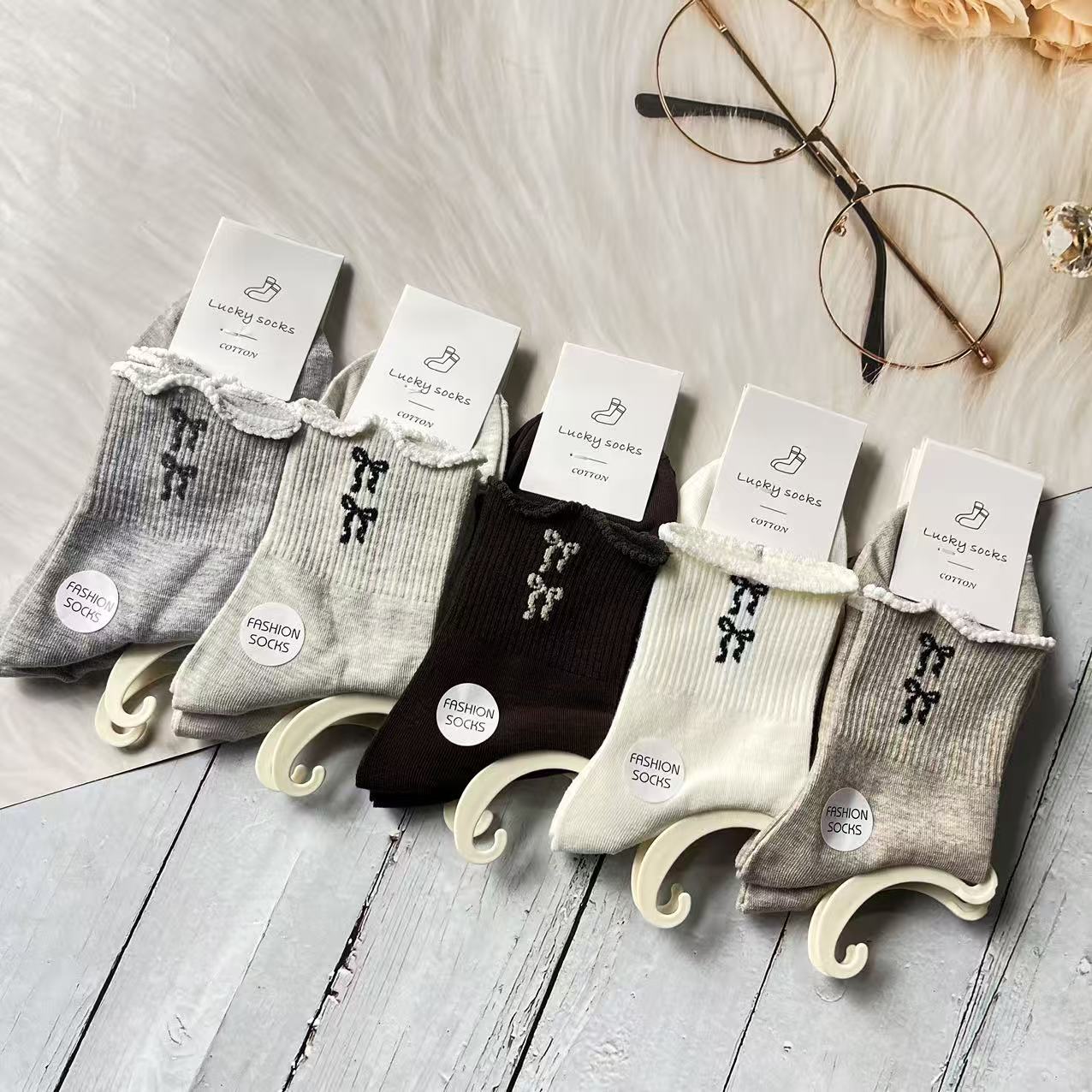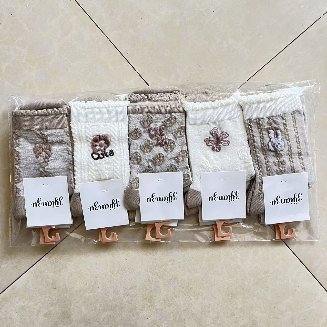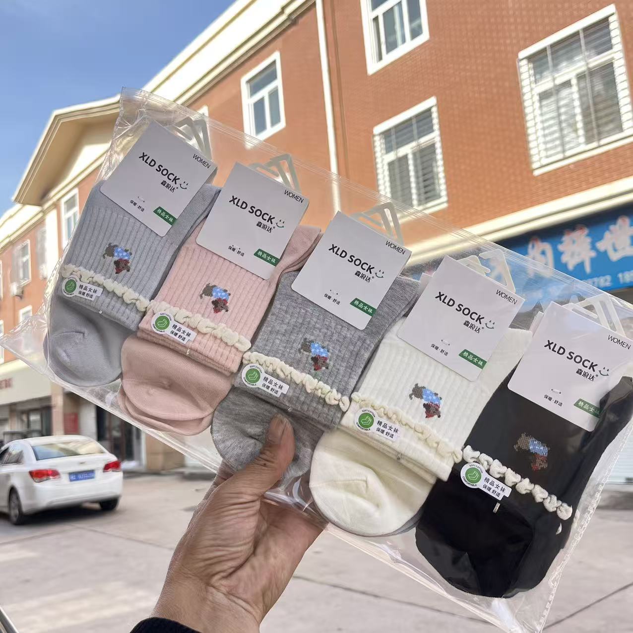 Набор в новом стиле для бега, женские носки из чесаного хлопка со средней талией, Спортивные Повседневные хлопковые носки в студенческом стиле для осени и зимы