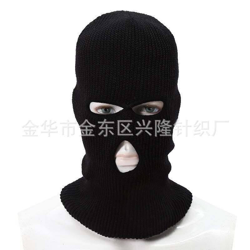 Теплая шапка для осени и зимы, защита лица для велоспорта на открытом воздухе, ветрозащитная маска, черная вязаная шапка с тремя отверстиями, шерстяная шапка-чепуха.