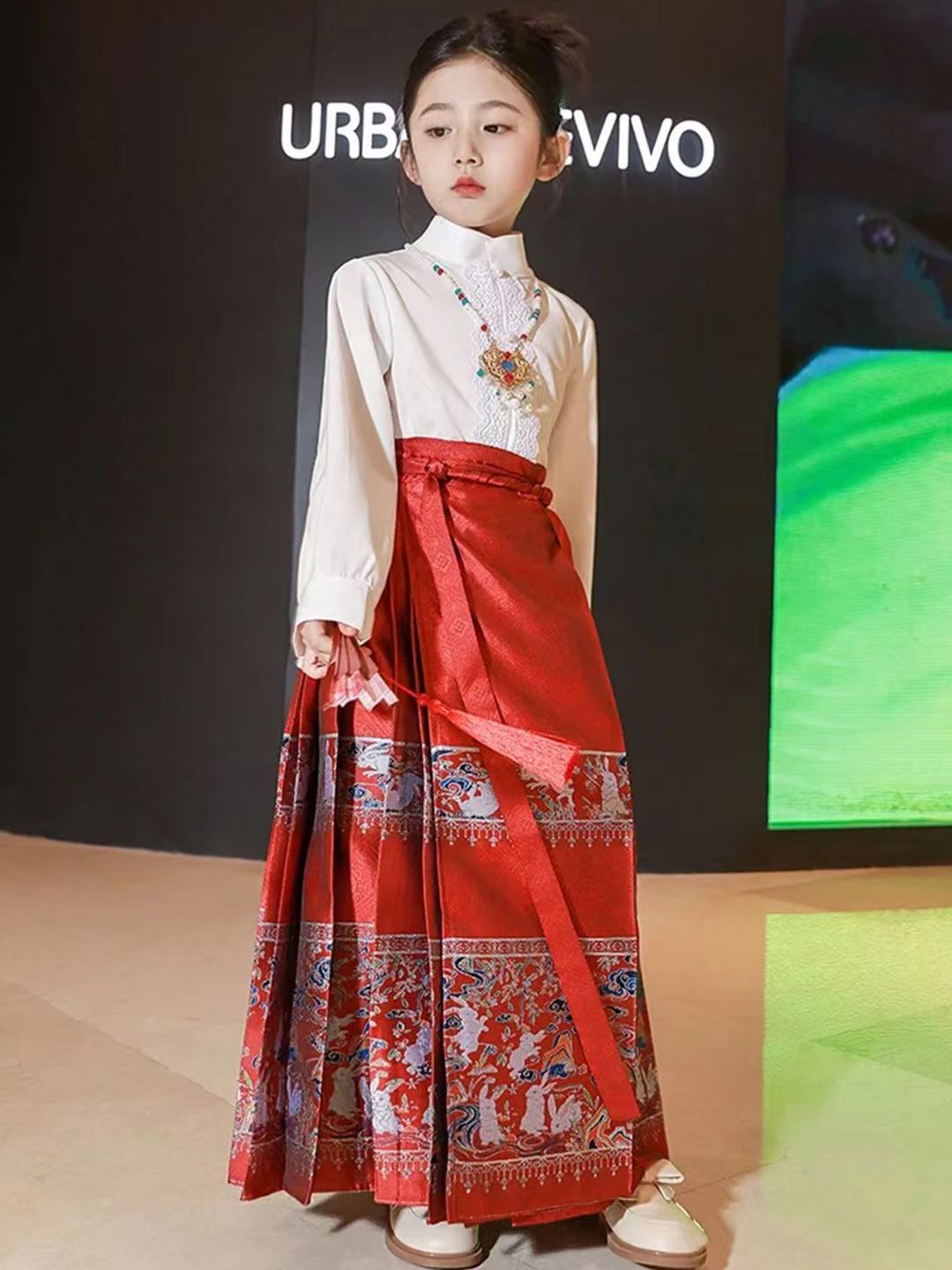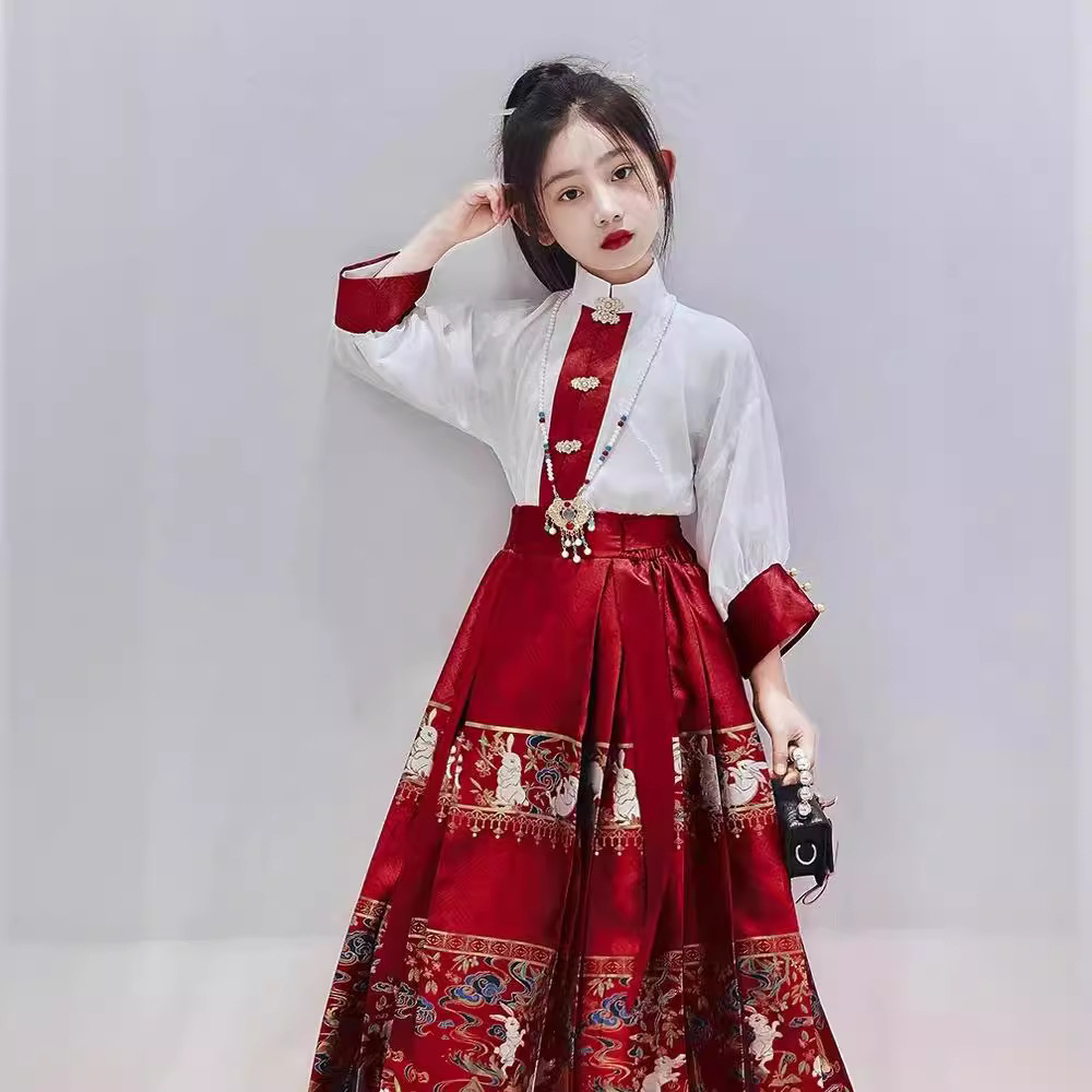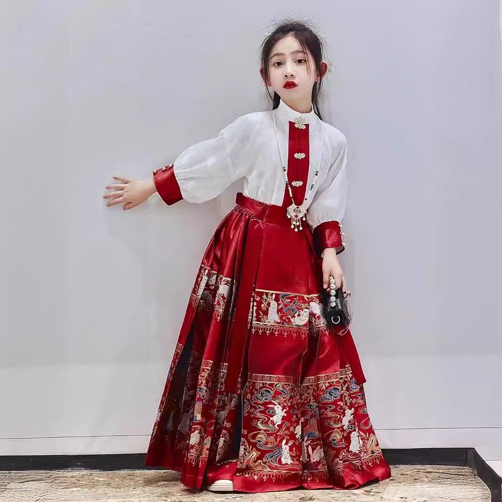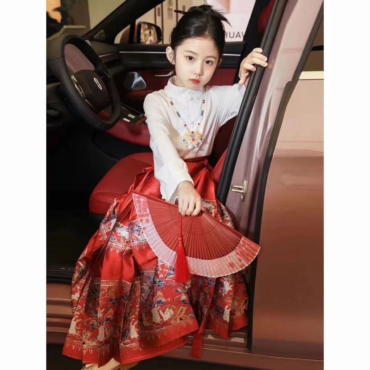 Юбка с лошадью для девочек Hanfu, новая летняя детская старинная юбка, тонкий костюм для маленьких девочек в китайском стиле