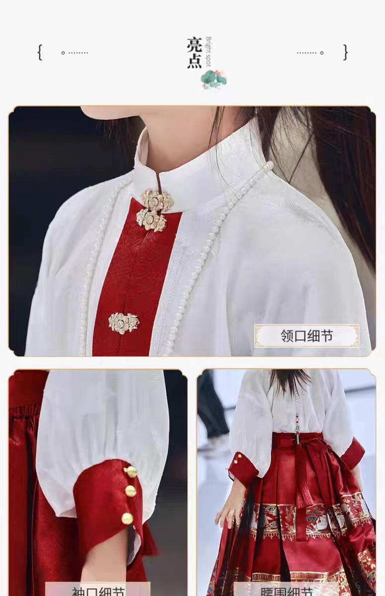 Топ с красными рукавами юбка с кроликом и лапшой; Рубашки с красным рукавом платье кролика с лапшой оригинальное ожерелье; Белый топ кроличья юбка с лапшой; Оригинальное ожерелье из белого топа