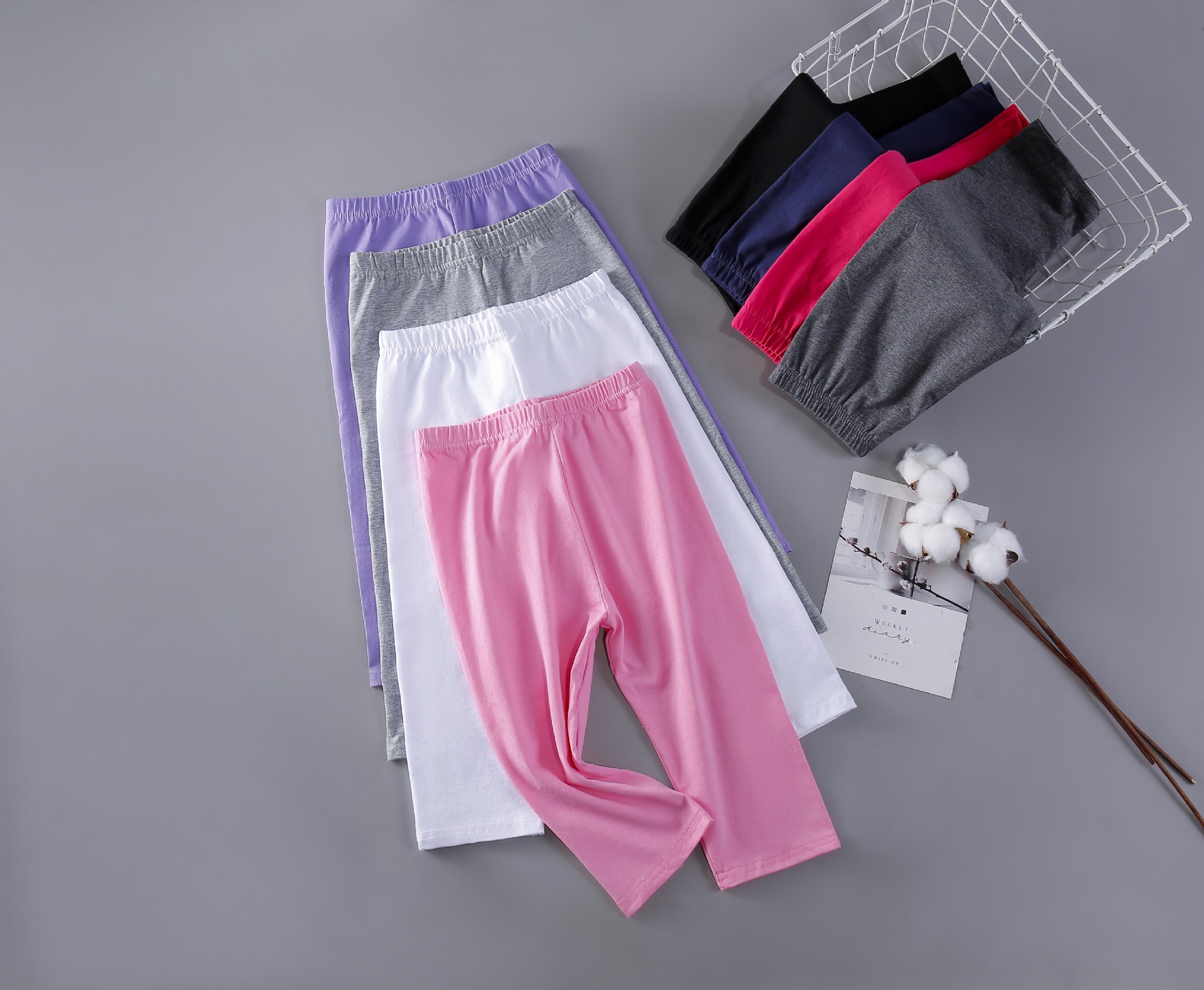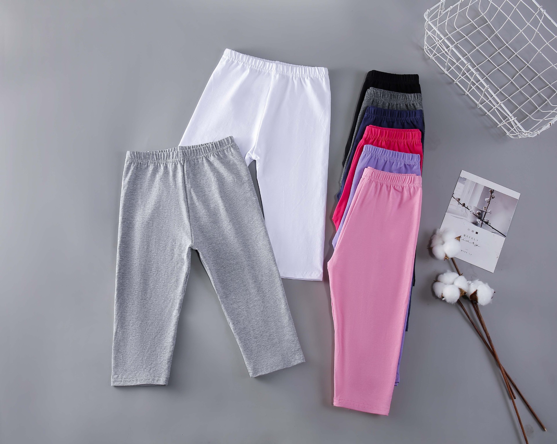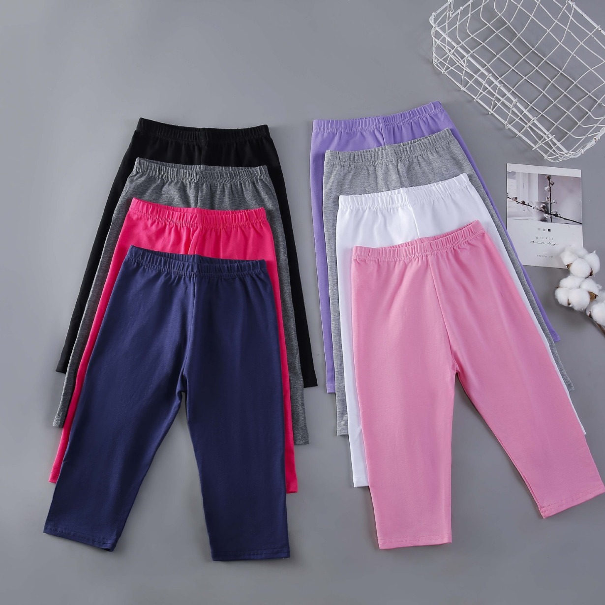 Чистый хлопок черный (укороченные брюки); Чистый хлопок Белый (укороченные брюки); Хлопок светло-серый (укороченные брюки); Хлопок темно-серый (укороченные брюки); Хлопок темно-синий (укороченные брюки); Чистый хлопок Light Rose Red (укороченные брюки); Чистый хлопок глубокий розовый красный (укороченные брюки); Чистый хлопок фиолетовый (укороченные брюки); Чистый хлопок, сине-зеленый (короткие брюки)
