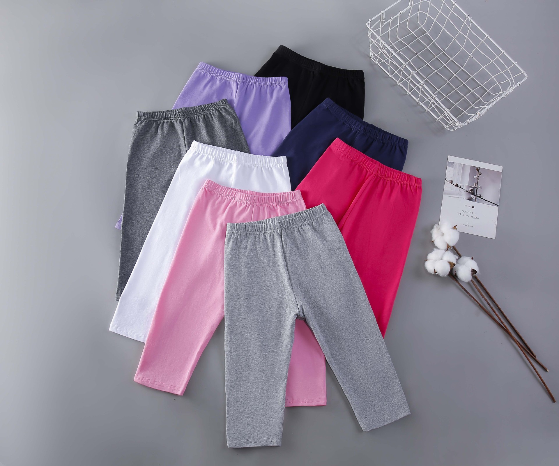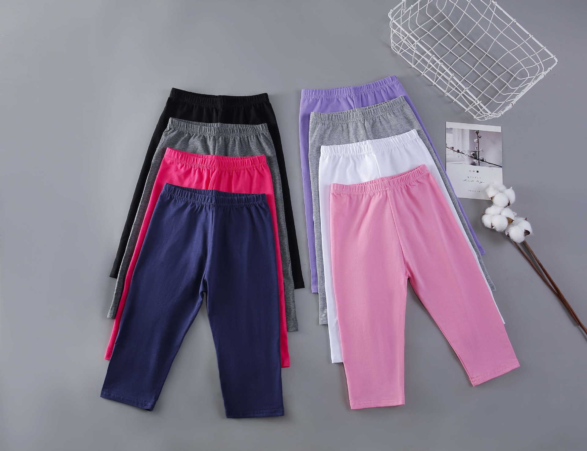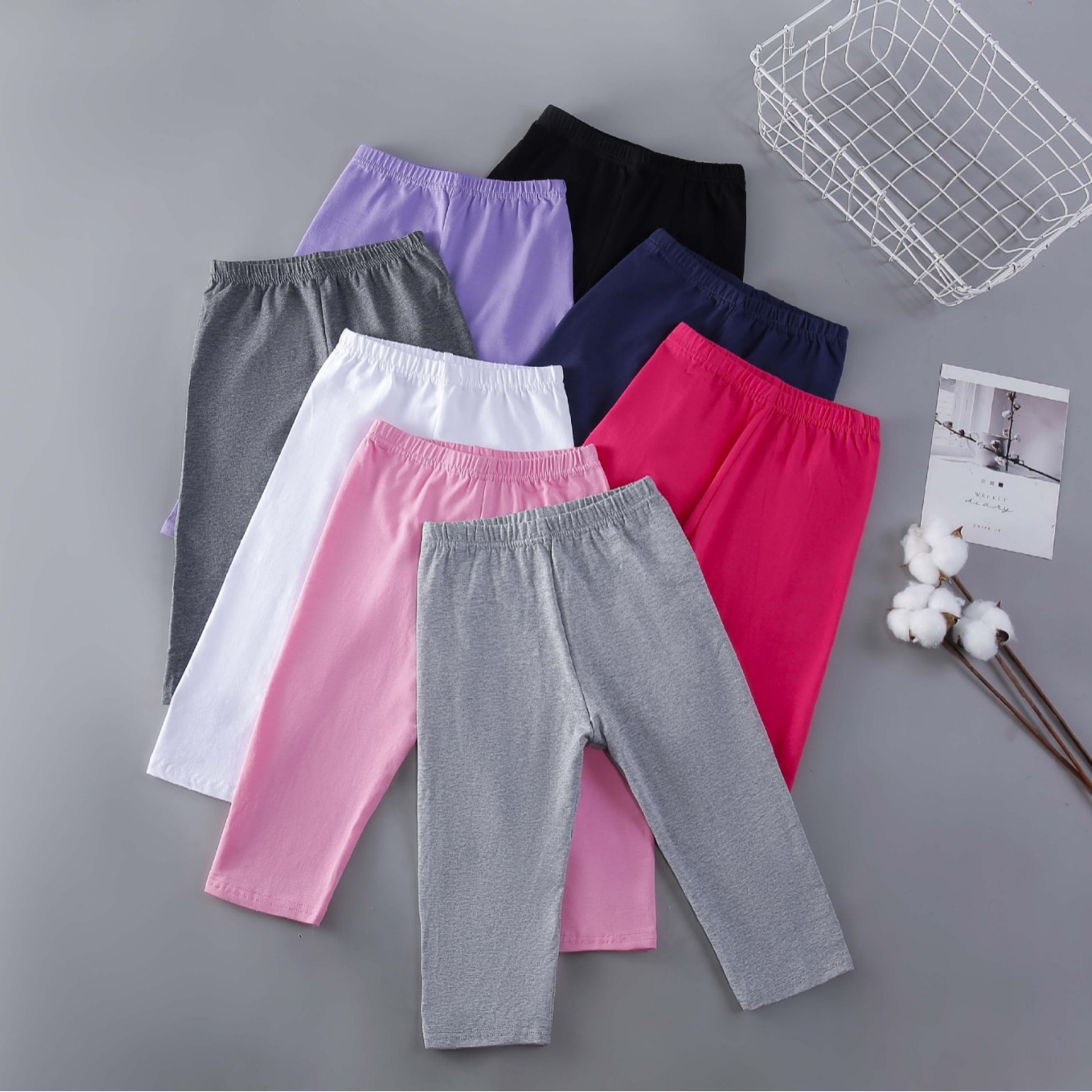 Чистый хлопок черный (укороченные брюки); Чистый хлопок Белый (укороченные брюки); Хлопок светло-серый (укороченные брюки); Хлопок темно-серый (укороченные брюки); Хлопок темно-синий (укороченные брюки); Чистый хлопок Light Rose Red (укороченные брюки); Чистый хлопок глубокий розовый красный (укороченные брюки); Чистый хлопок фиолетовый (укороченные брюки); Чистый хлопок, сине-зеленый (короткие брюки)