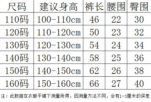 110 см; 120 см; 130 см; 140 см; 150 см; 160 см