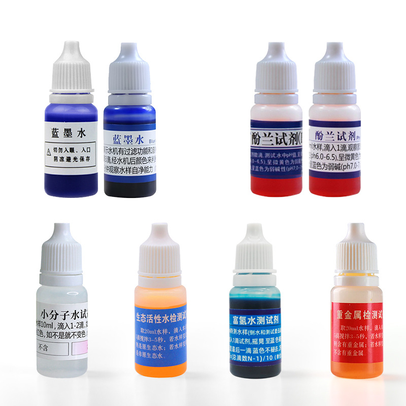 Активный реагент для обнаружения воды (10ML); Реагенты для обнаружения тяжелых металлов (10ML); Детектор фенолана (10ML); Промышленный реагент для обнаружения загрязнения синими чернилами (10ML); Малые субстенты воды измерительных реагентов (10ML); Реагенты для обнаружения обогащенных водородом воды (10ML)