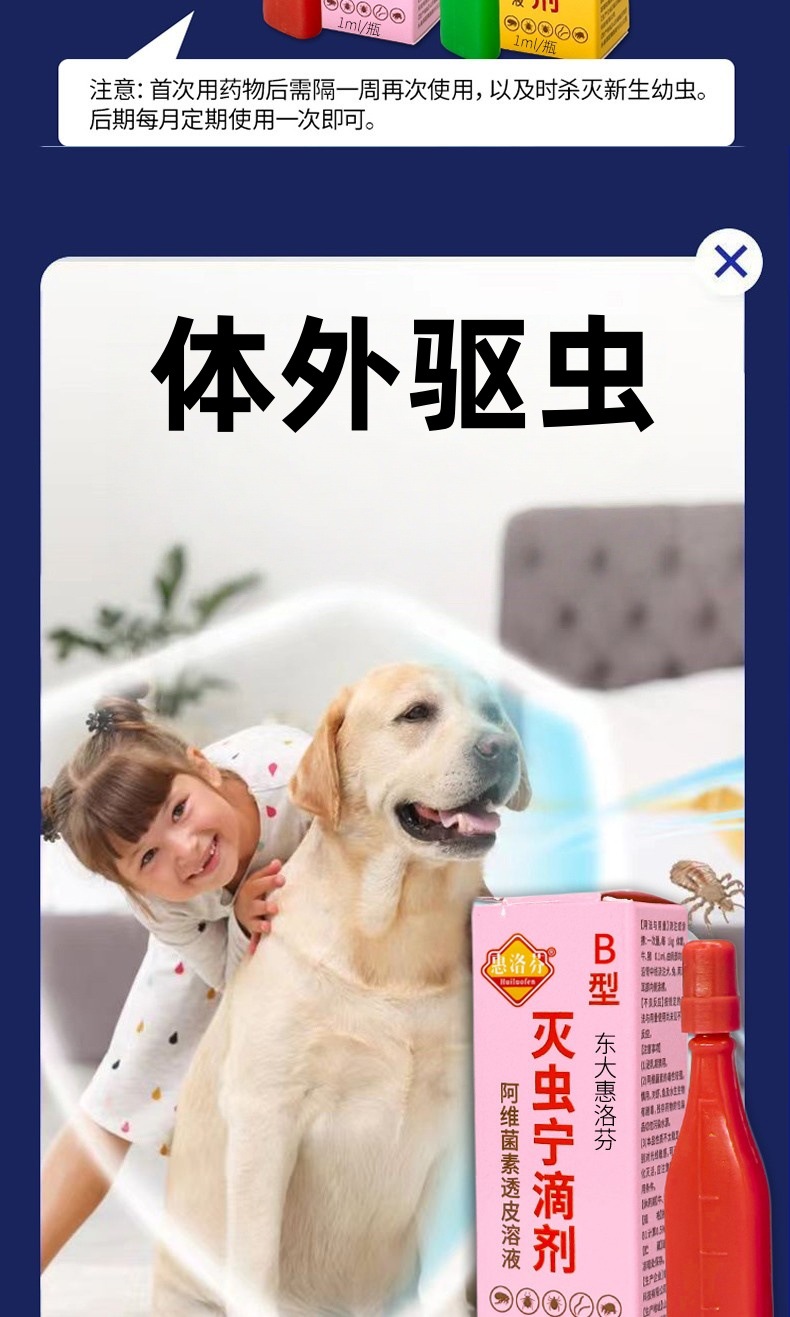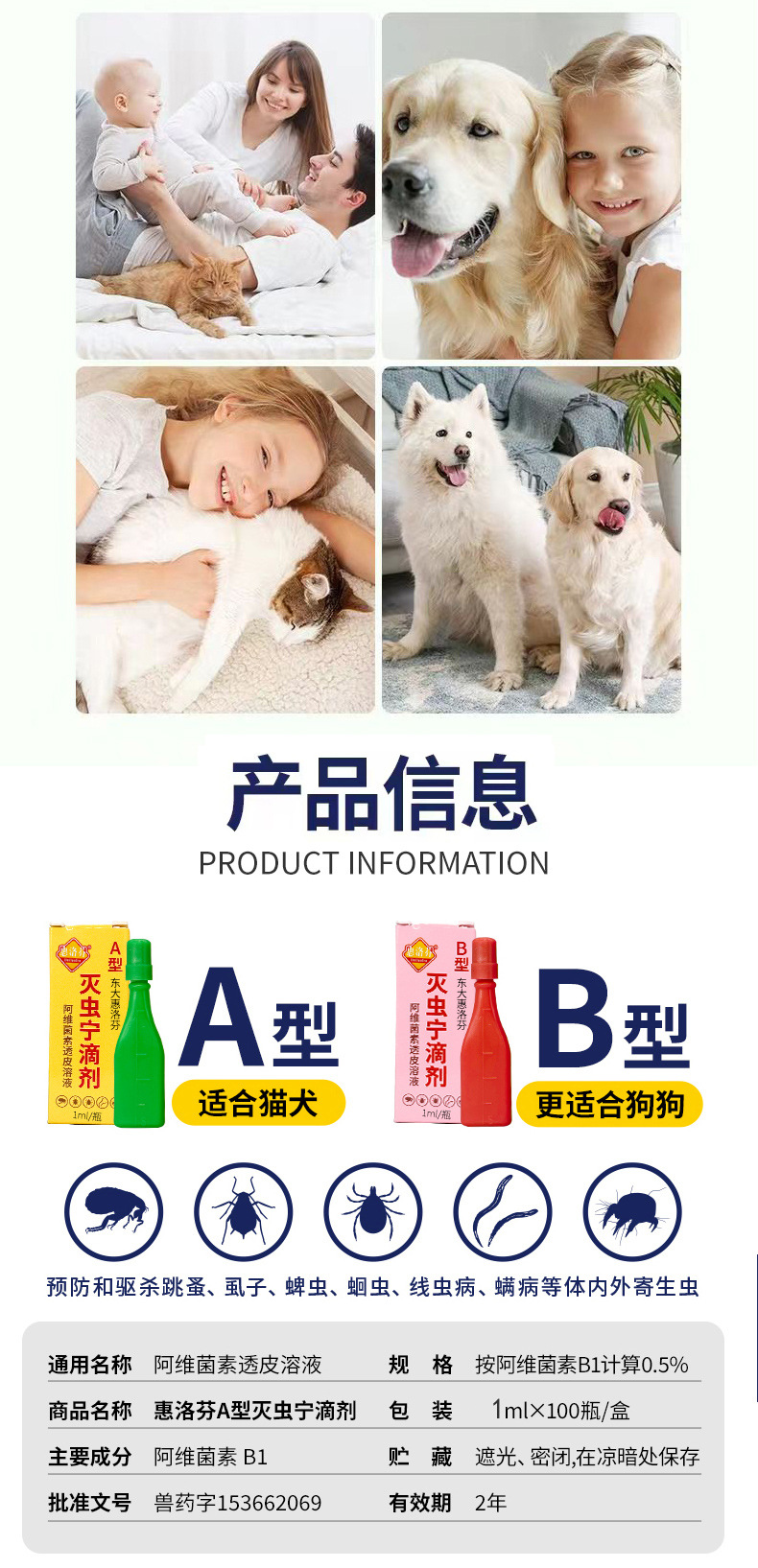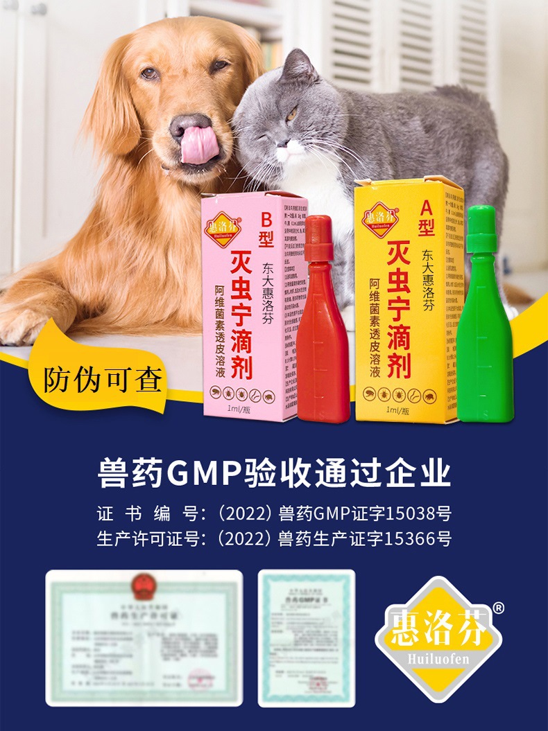 Инсектицидные капли Huiluofen типов A и B — препарат для наружного применения против паразитов, уничтожающий вши, блохи, клещи, клещевидные насекомые и другие паразиты домашних животных.