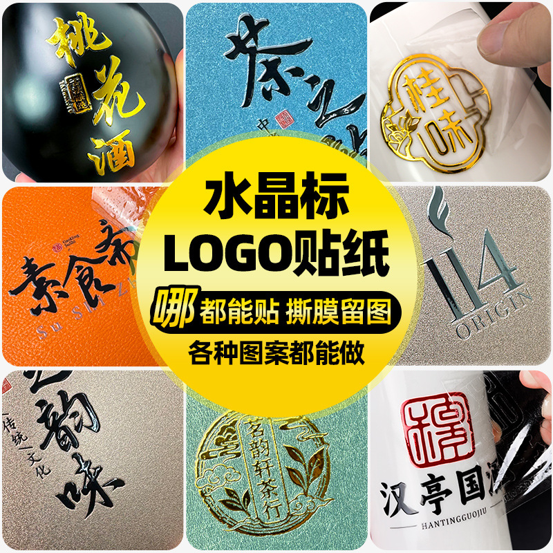 Прозрачная кристальная этикетка с логотипом, УФ-переводная наклейка, водонепроницаемая самоклеящаяся наклейка, горячее тиснение, этикетка с товарным знаком, индивидуальный дизайн