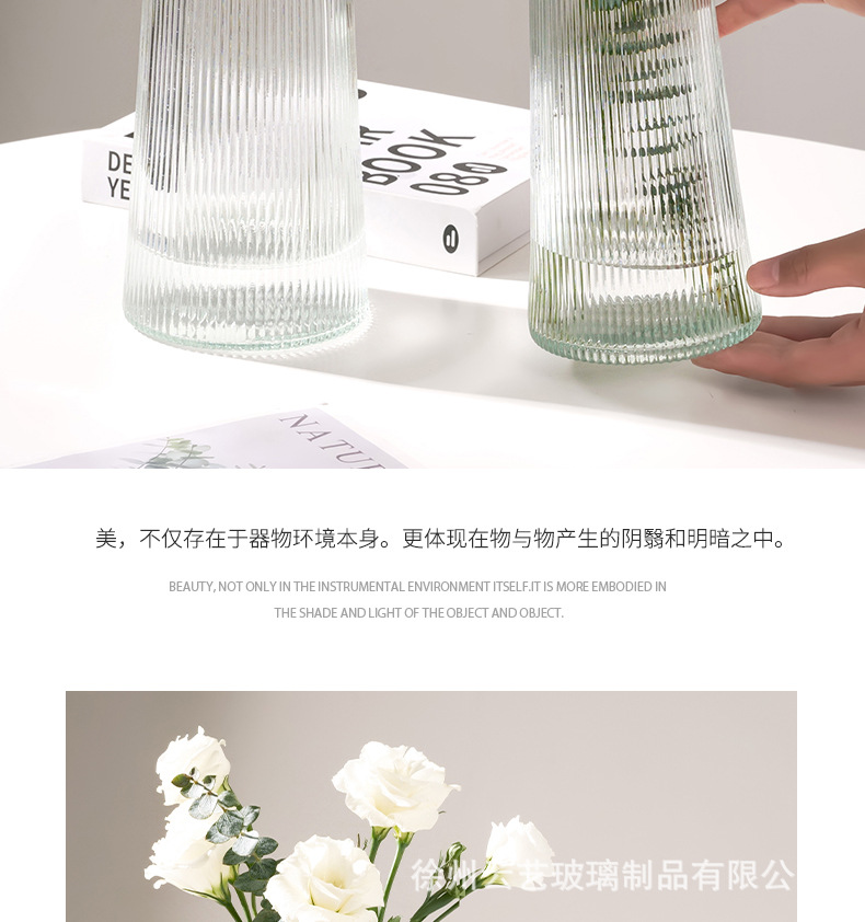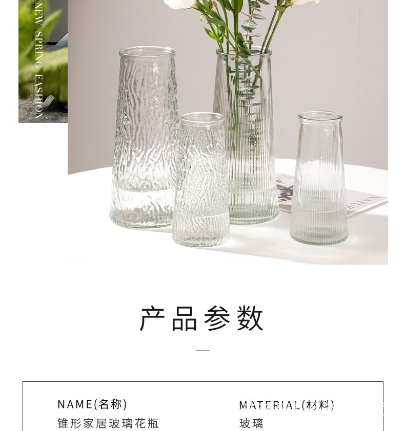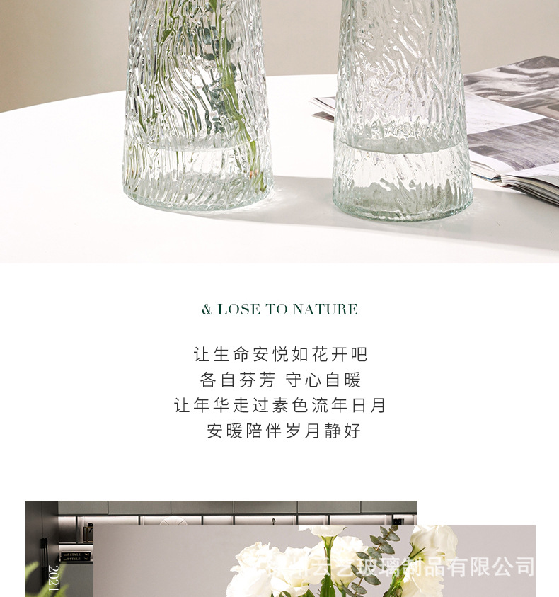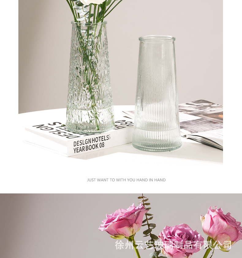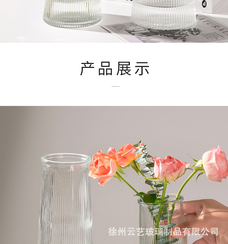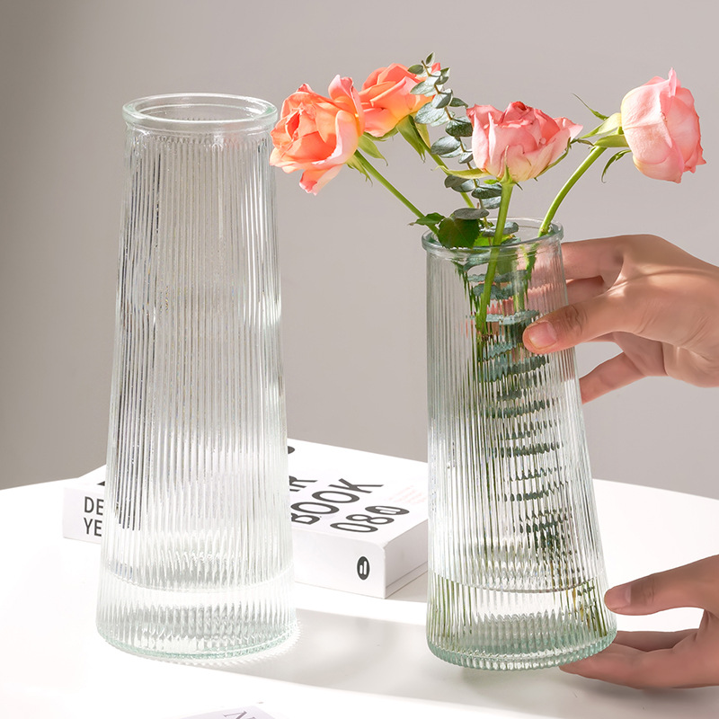 Тисненая стеклянная ваза в стиле ins в скандинавском стиле интернет-знаменитости Прозрачные водные бамбуковые цветы Гостиная сушеные цветы Цветочная композиция украшения