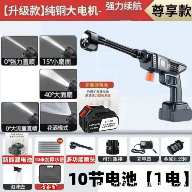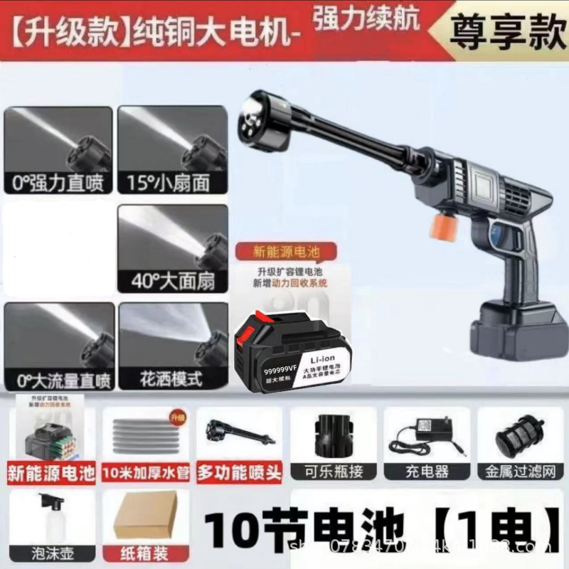 Беспроводная бытовая мойка для автомобилей, электрический пистолет для мойки под высоким давлением, портативная мощная машина для чистки автомобилей, ручная перезаряжаемая модель.