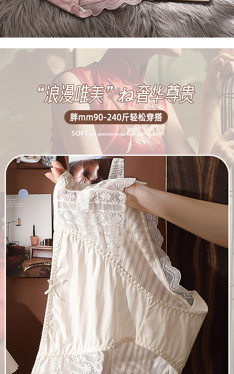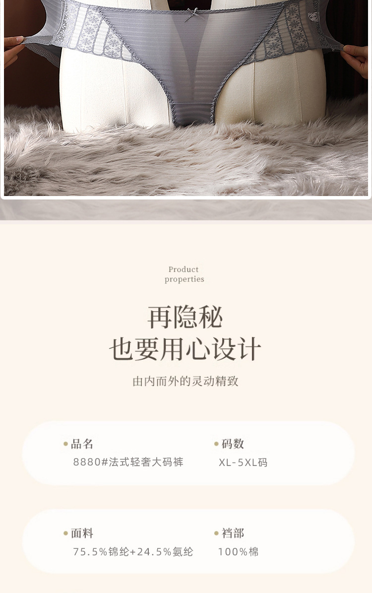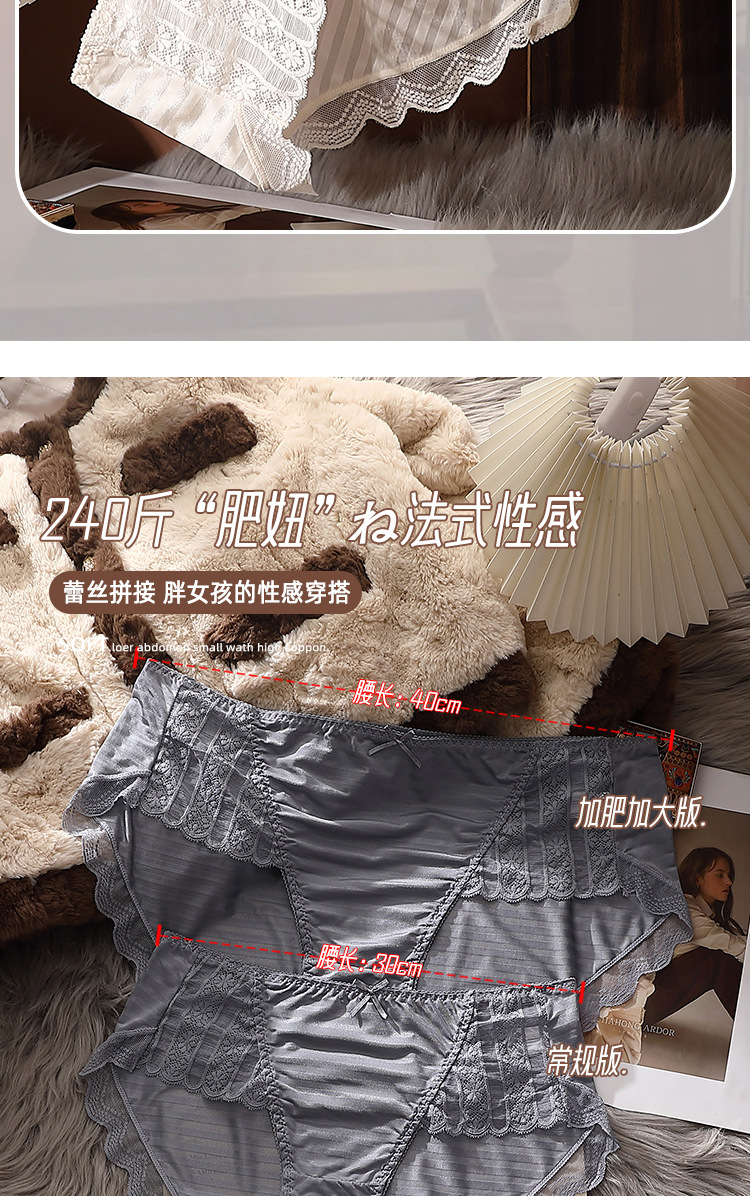 Французское легкое роскошное нижнее белье больших размеров, сексуальное кружевное шитье, набедренная сумка со средней талией, набедренные трусы плюс вес 240 Jin