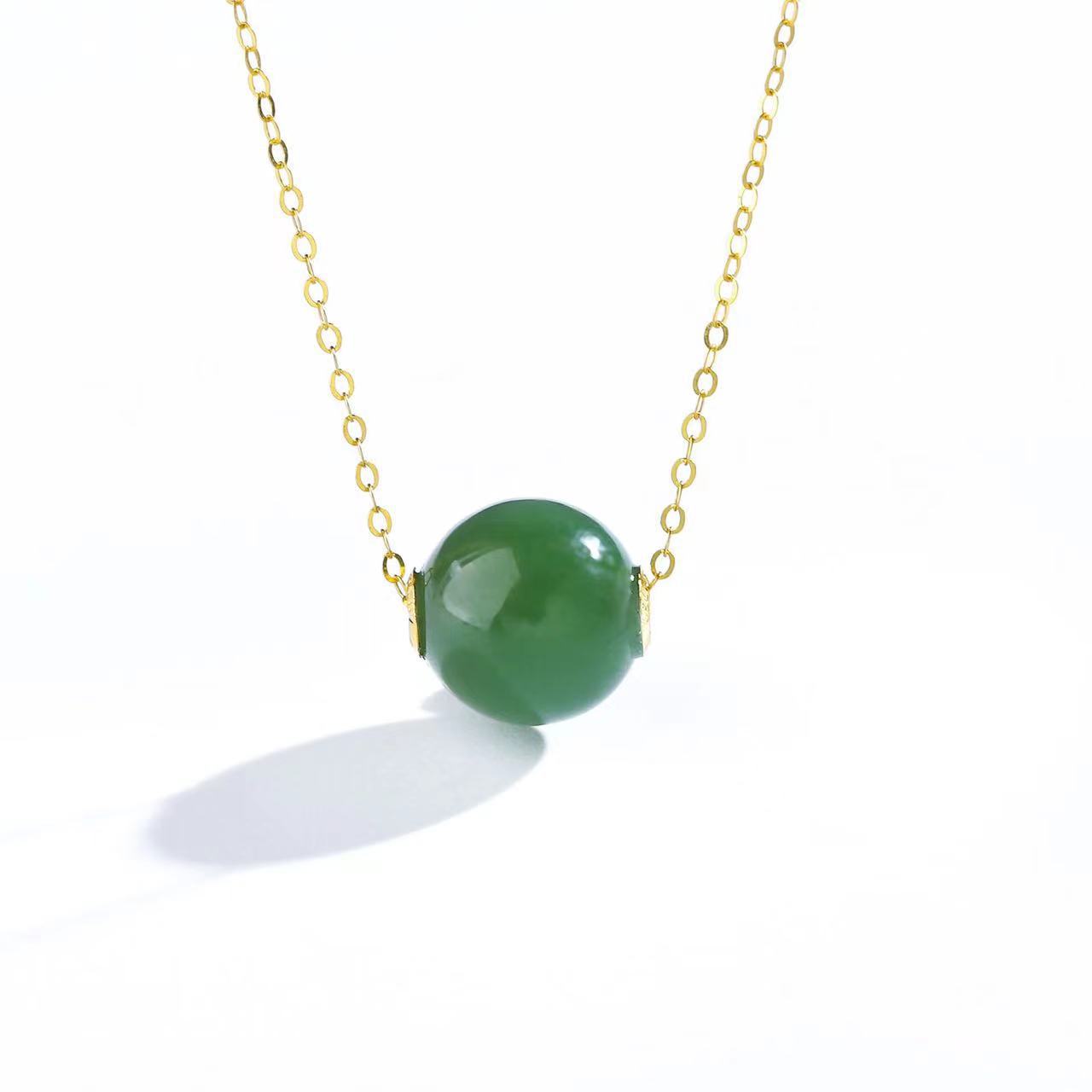 Золотое колье из 18-каратного золота с нефритом и халцедоном, женское, простой дизайн, хит продаж в прямых эфирах