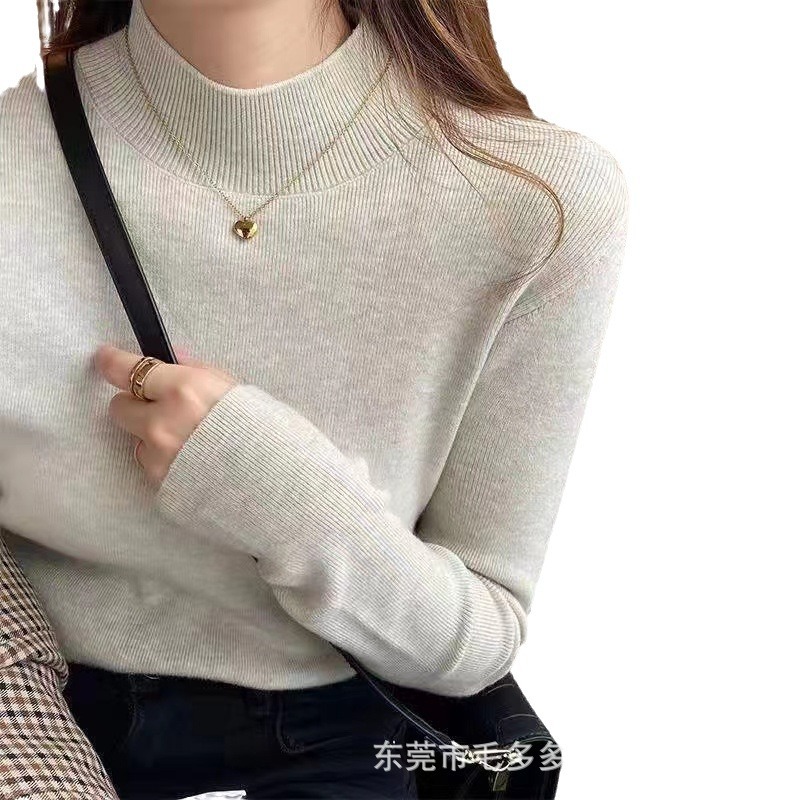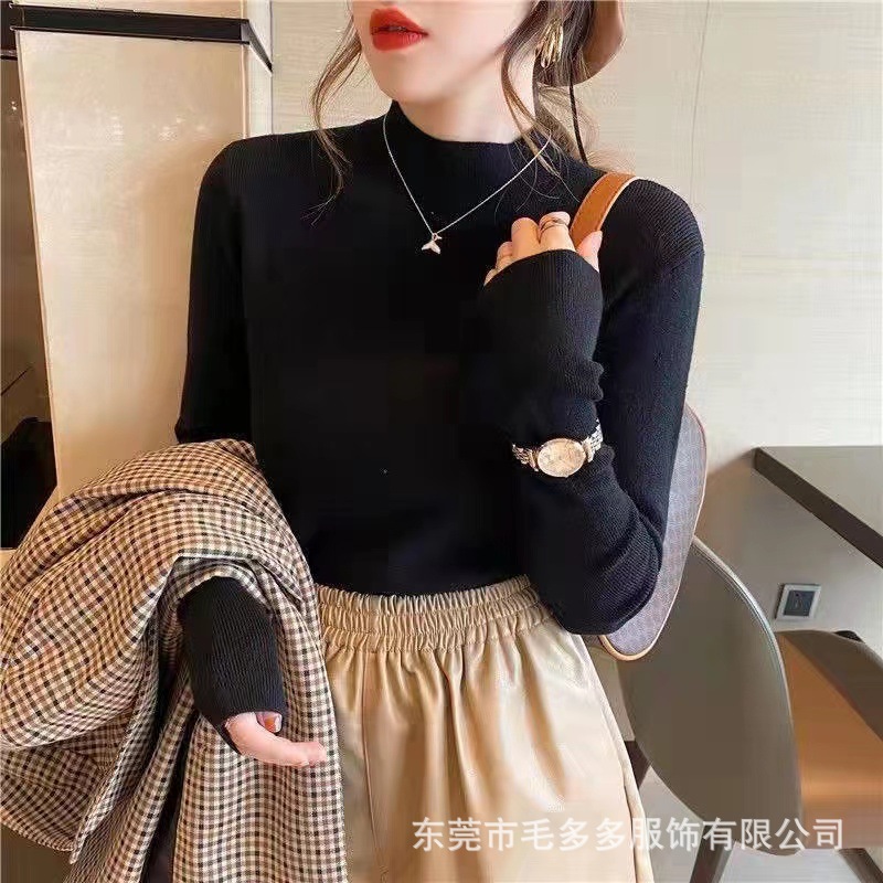 Модернизированный специальный полувысокий воротник сплошной трикотажный нижний свитер женская осенняя и зимняя резьба футболка с длинными рукавами теплая тонка