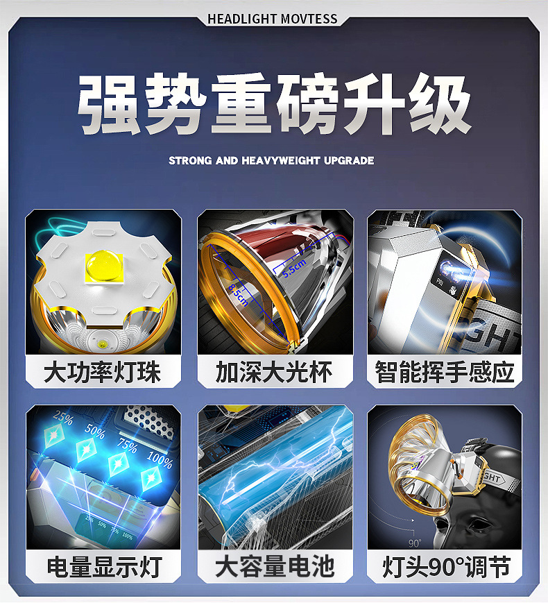 Светодиодный налобный фонарь, налобный сильный свет, перезаряжаемый супер яркий ночной Рыбалка на открытом воздухе, строительная площадка, взрыв, шахтный фонарь дальнего действия